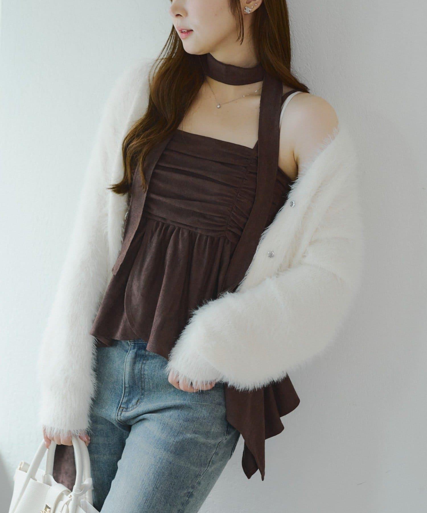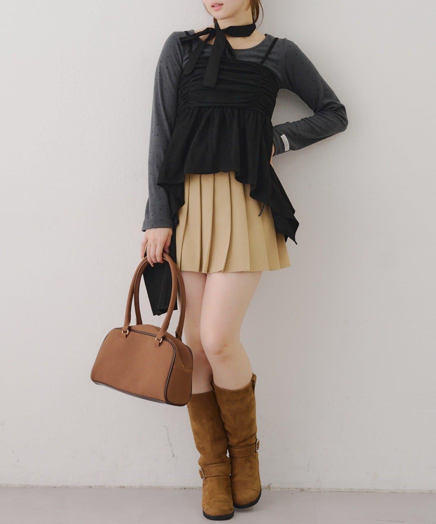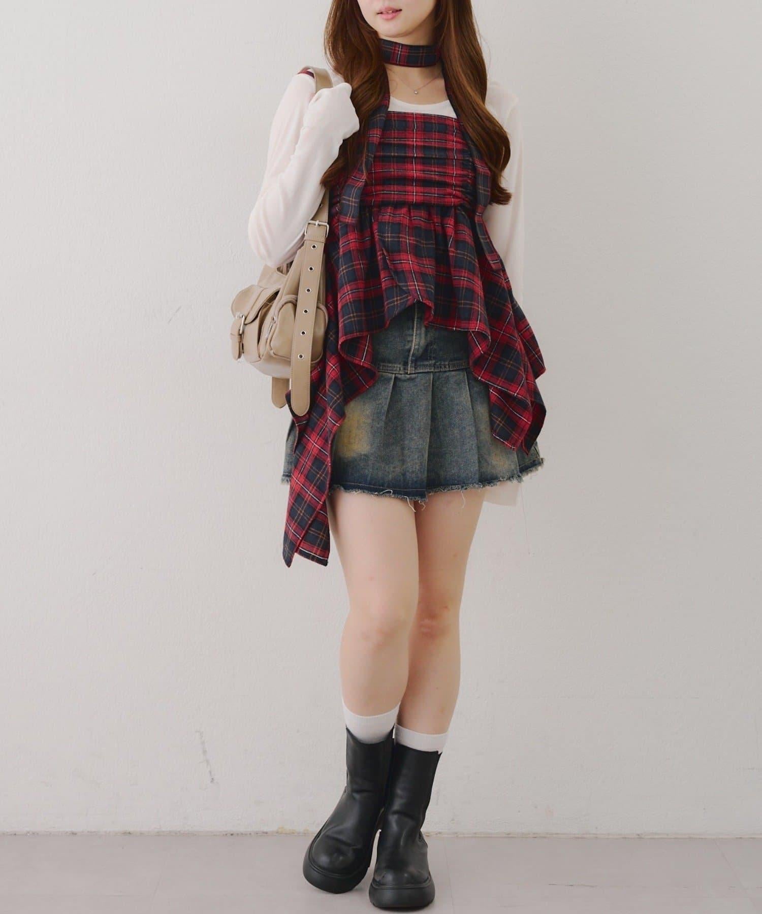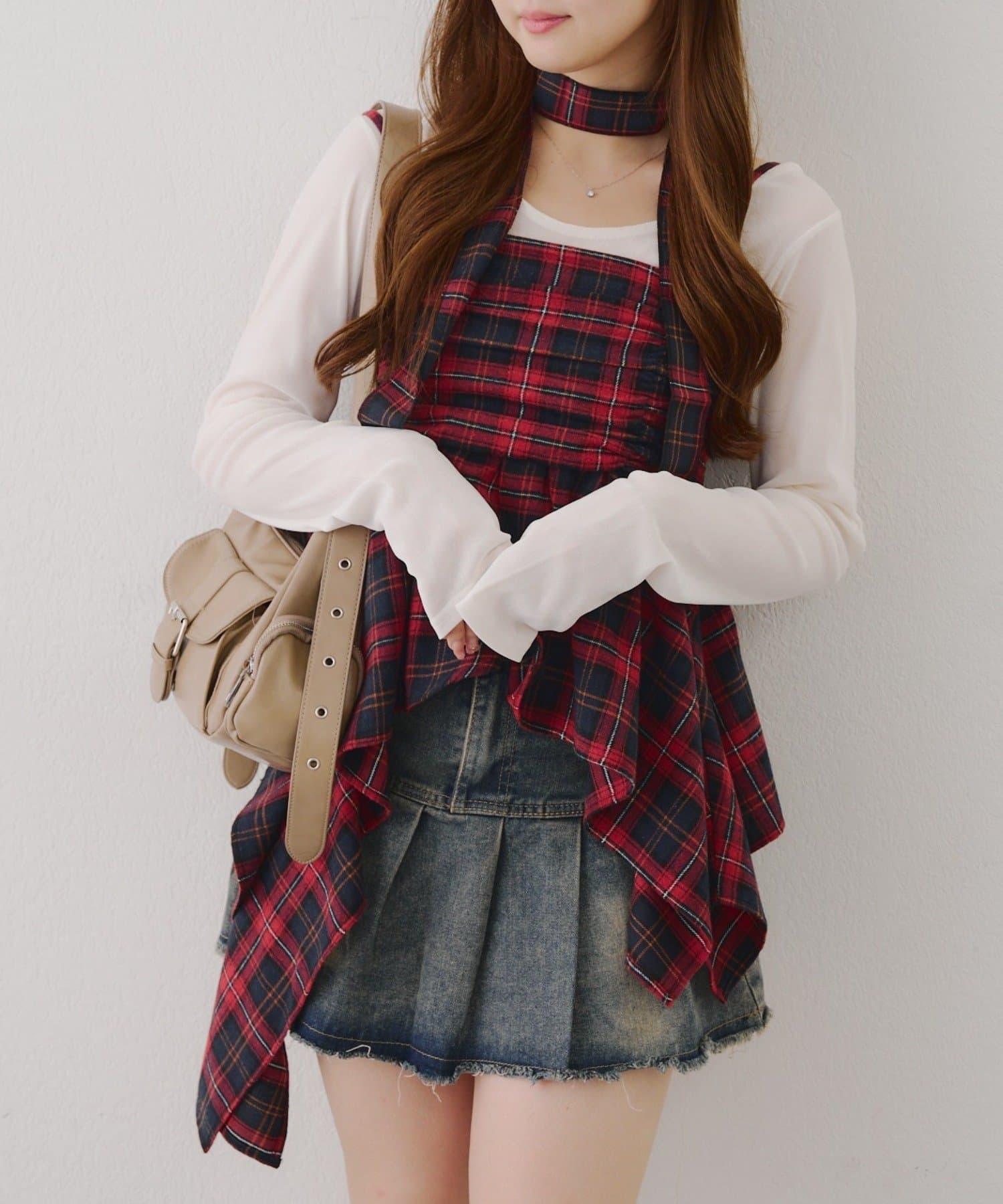 附項鍊頸圈設計顯身材【RMAF】不對稱下襬吊帶長款上衣