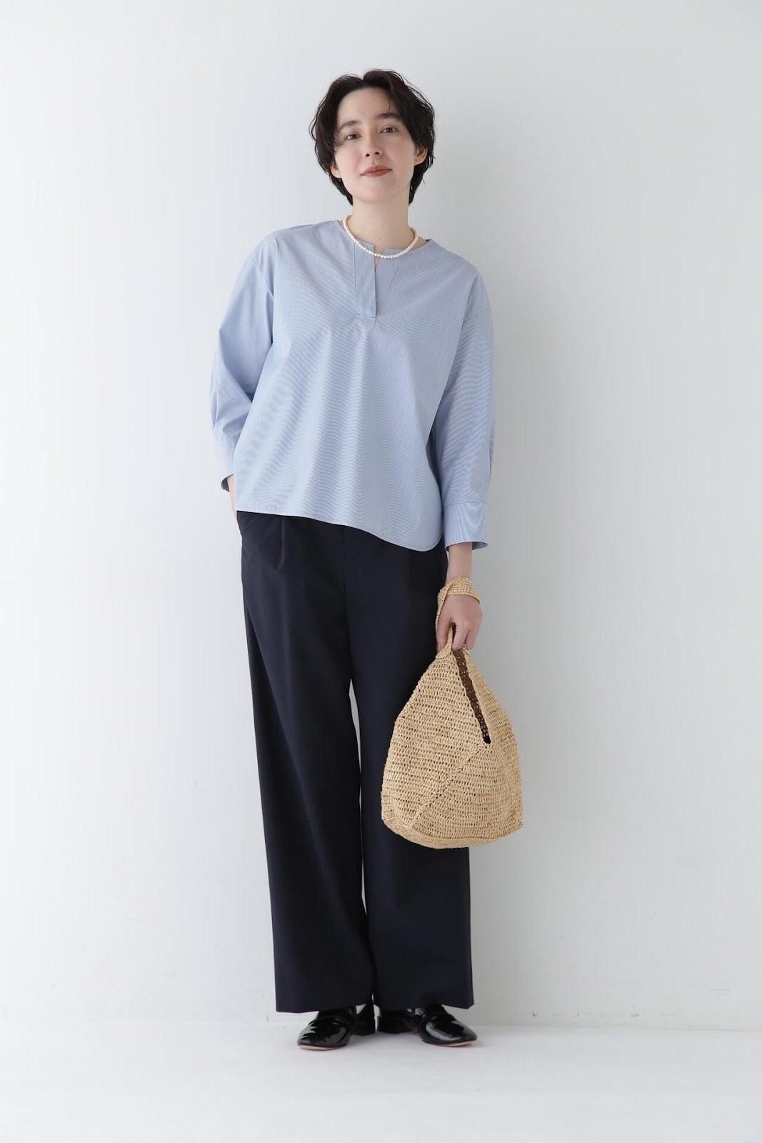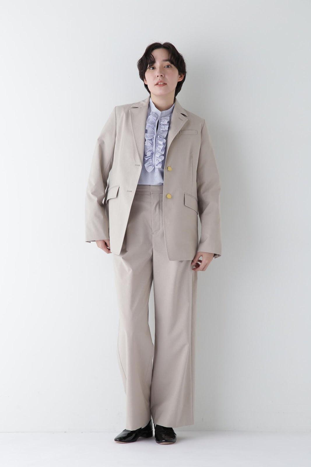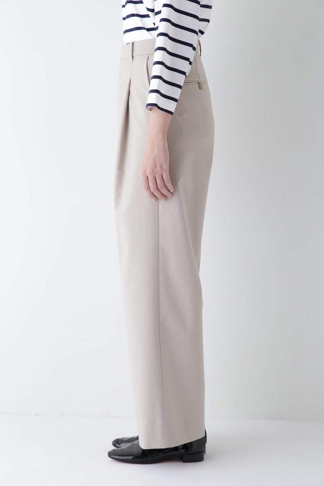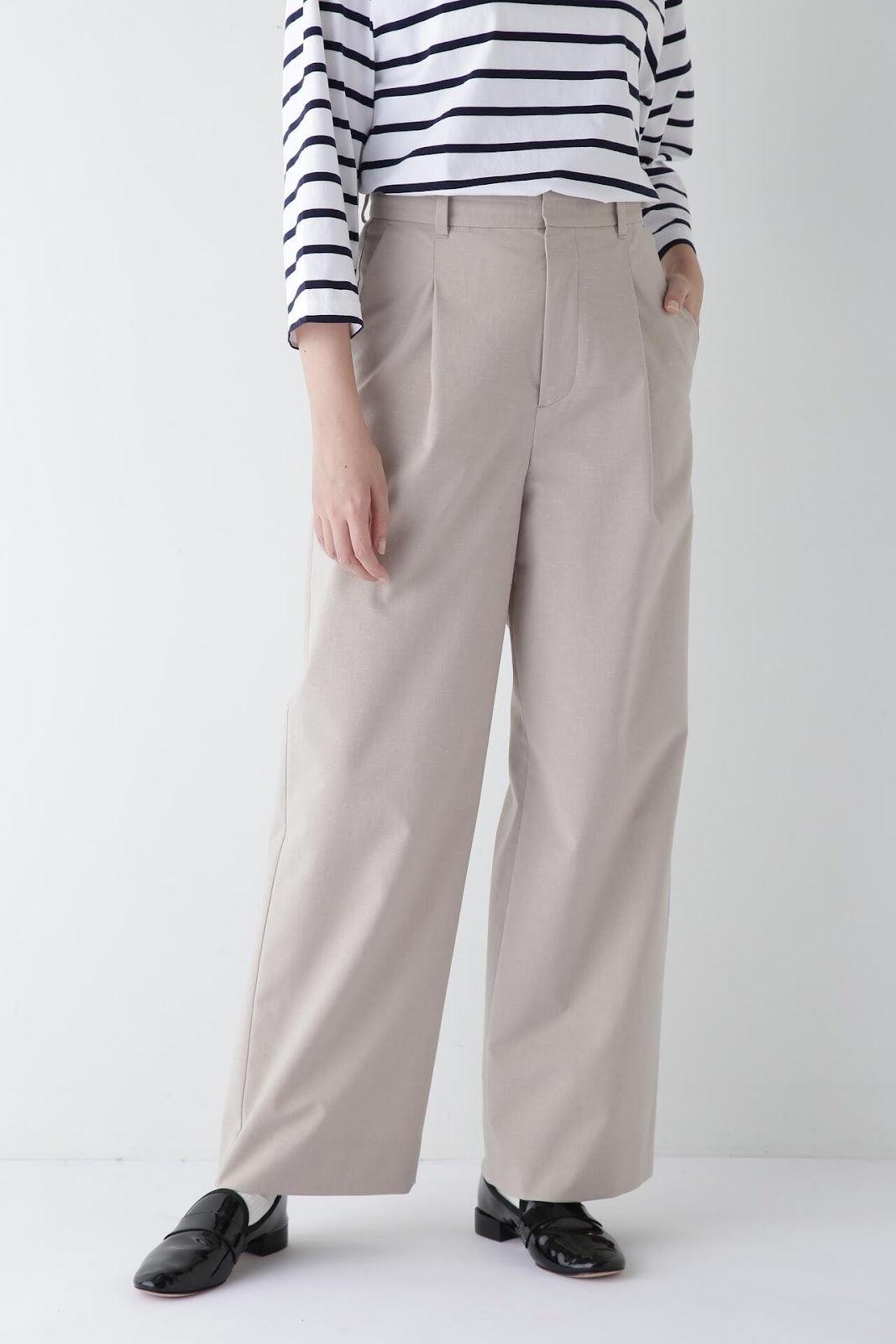 半寬鬆長褲,腰帶式規格,盡顯男士風範 [設計特色] 這款單襉半寬鬆長褲剪裁簡潔,成熟穩重。前開口可以拆下,腰部向後摺疊,露出腰帶式規格。面料由 TR府綢製成,這是一種亞麻混紡面料,表面光潔美觀。該面料還具有良好的自然伸縮性,穿著舒適。這款長褲設計簡潔,用途廣泛,但我們也建議在上衣內搭時穿著,腰部向後摺疊,以展示奇妙的腰帶設計。也可與同種面料的外套搭配穿著。