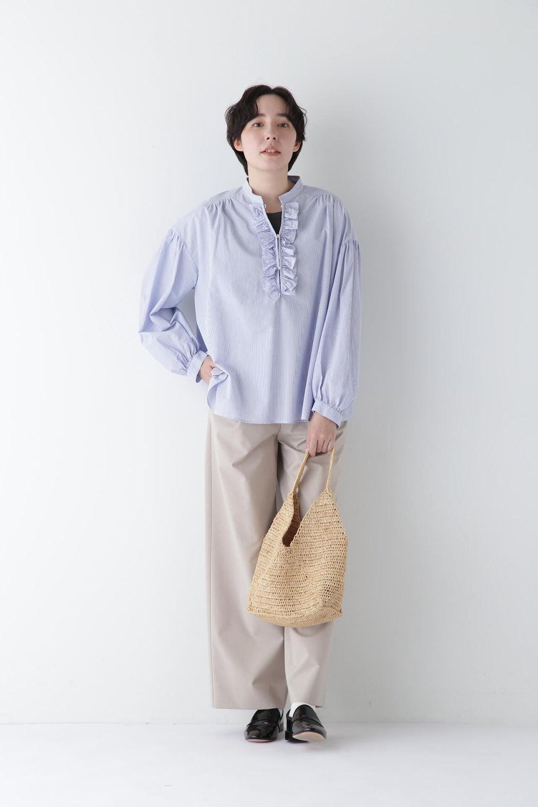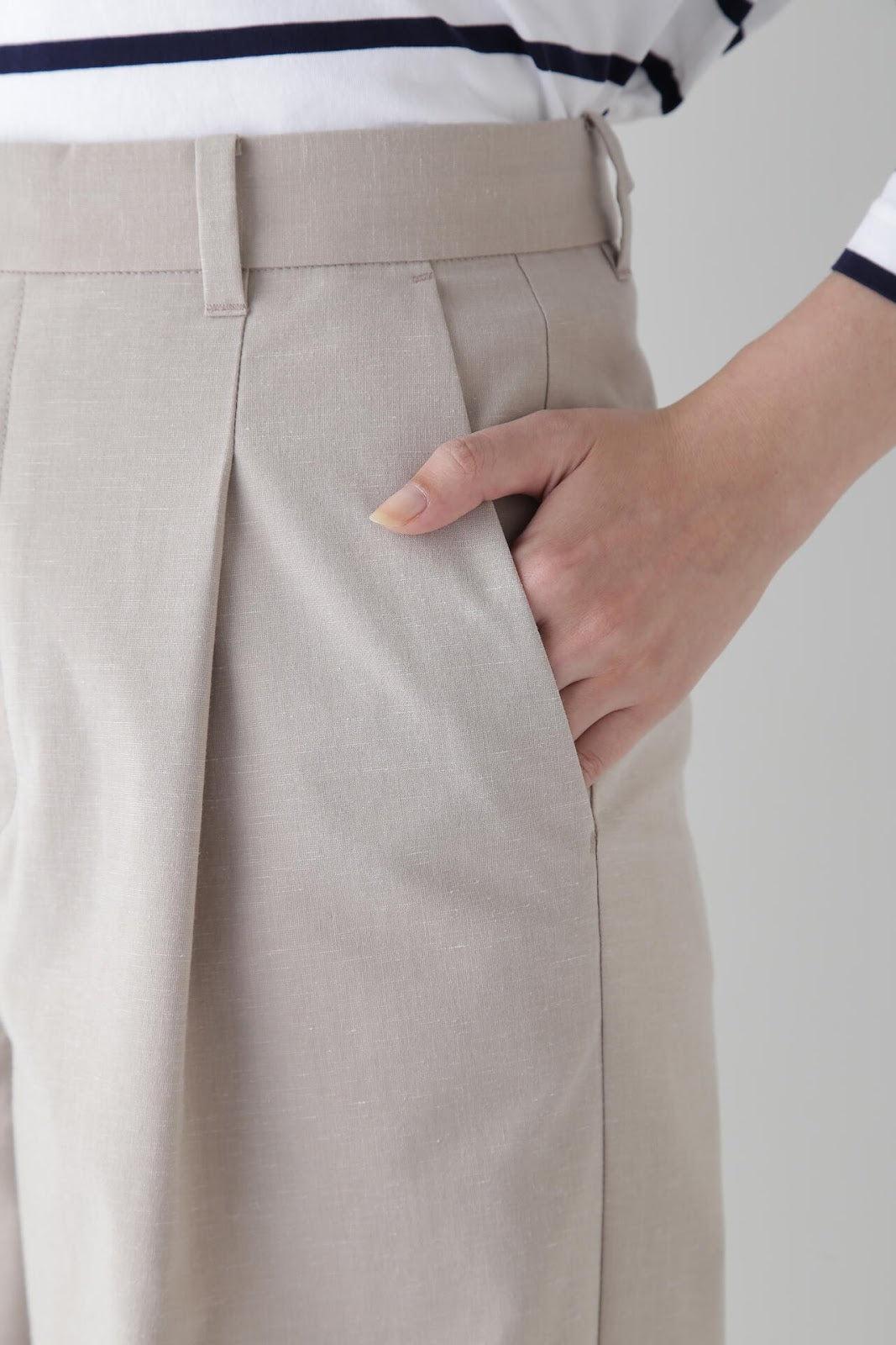 【限定尺碼】P纖維麻拼棉平紋彈力半寬鬆長褲