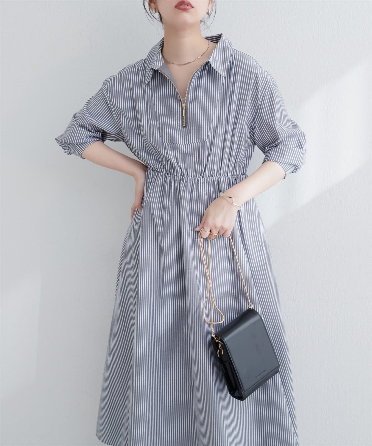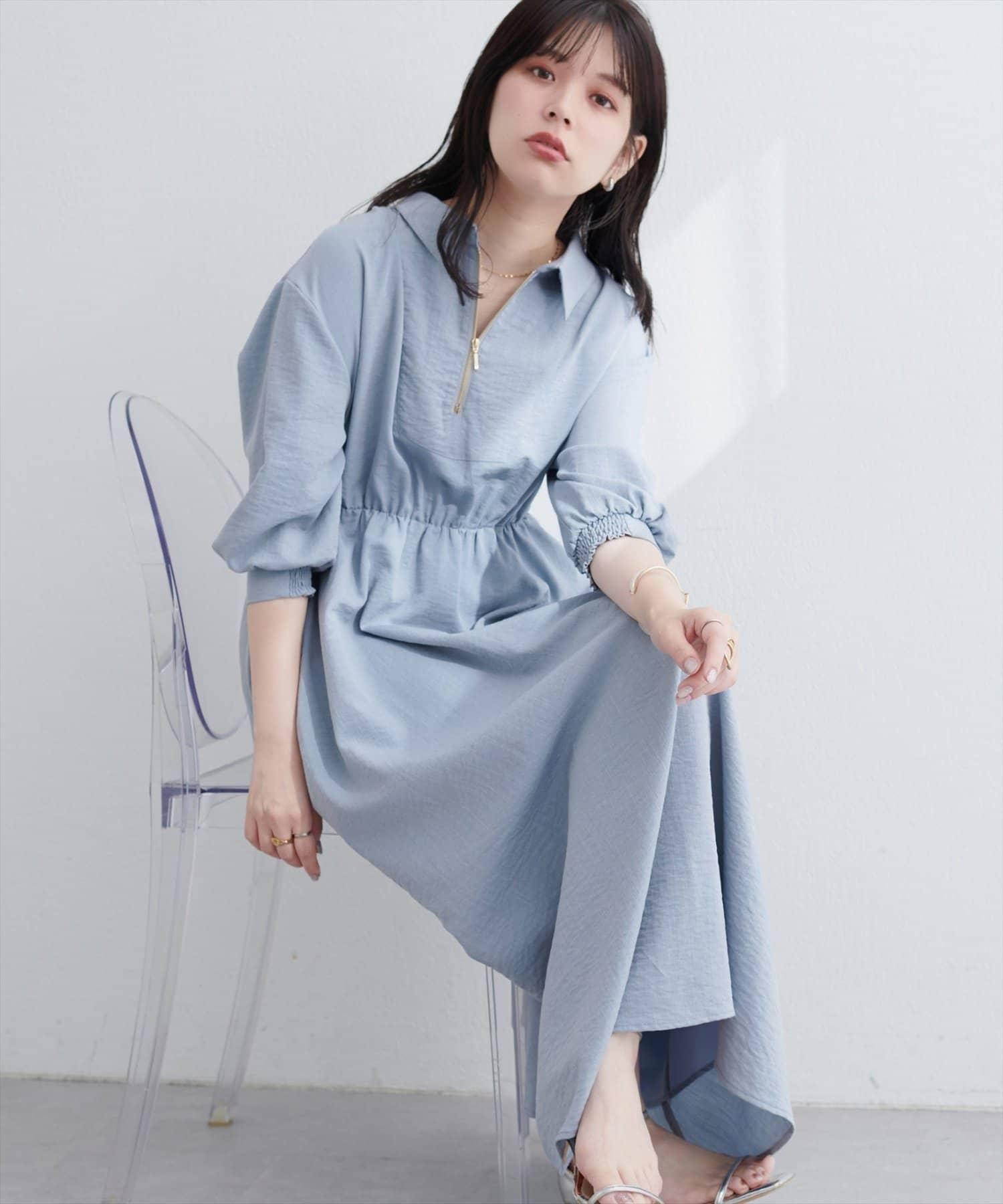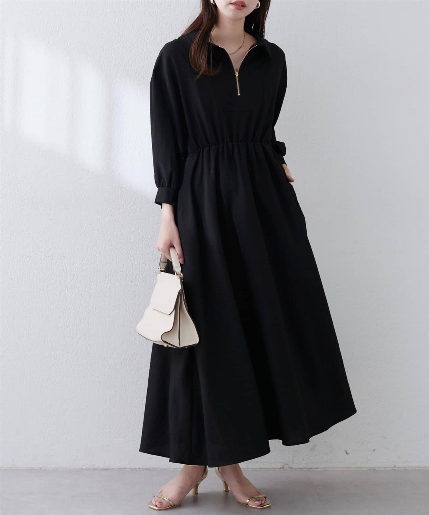 【限定】前拉鍊領口連衣裙