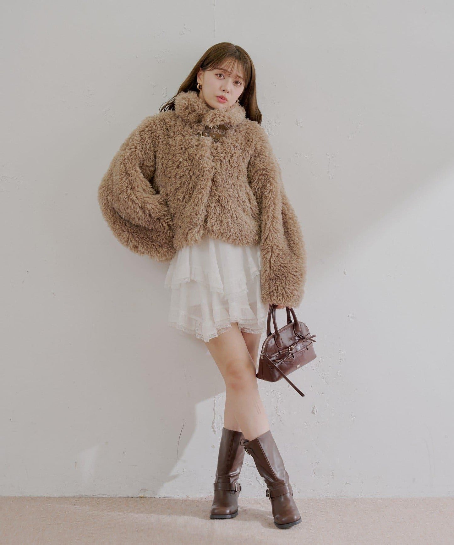 外衣的體積感很強,搭配小巧的下裝也很平衡!