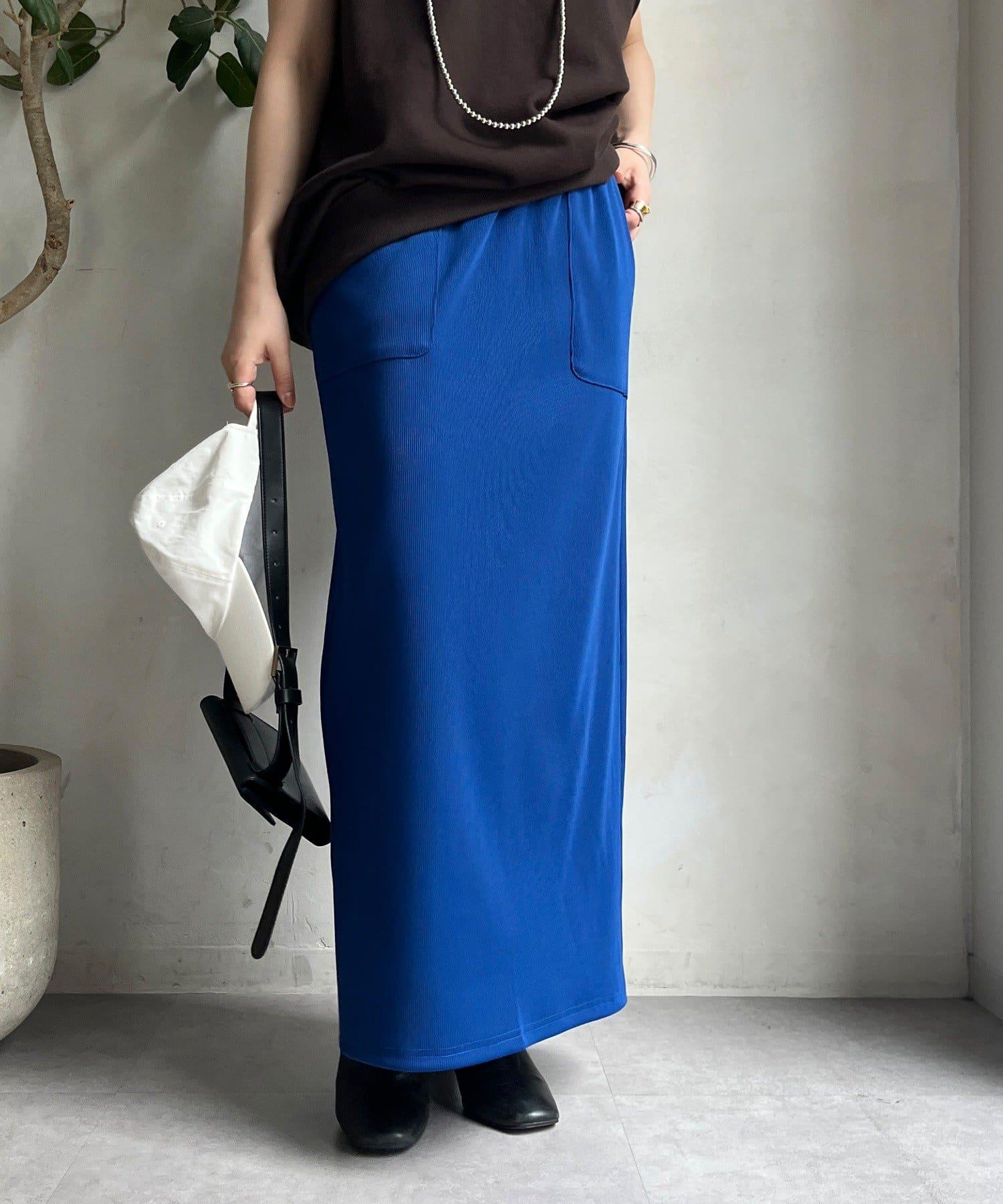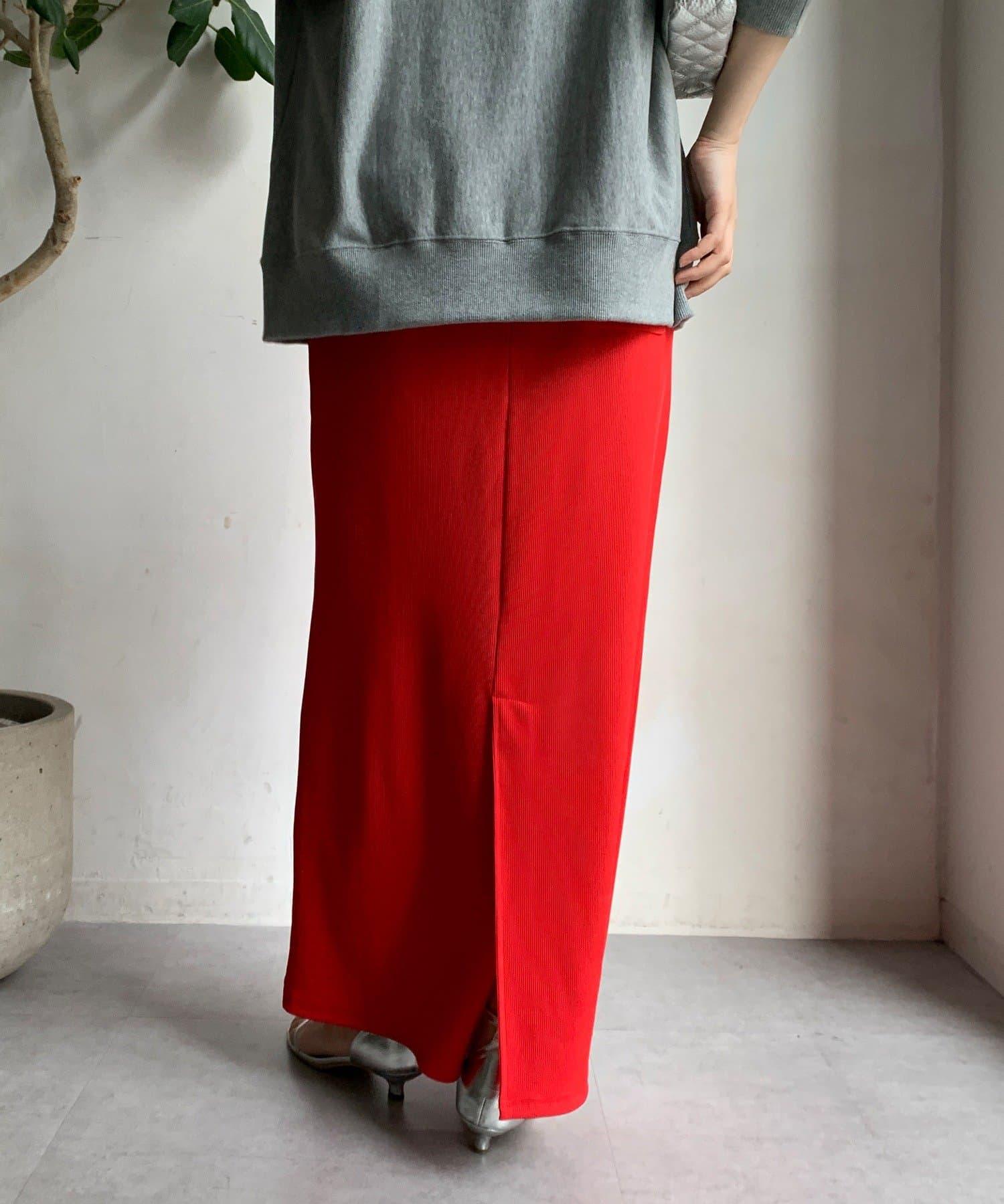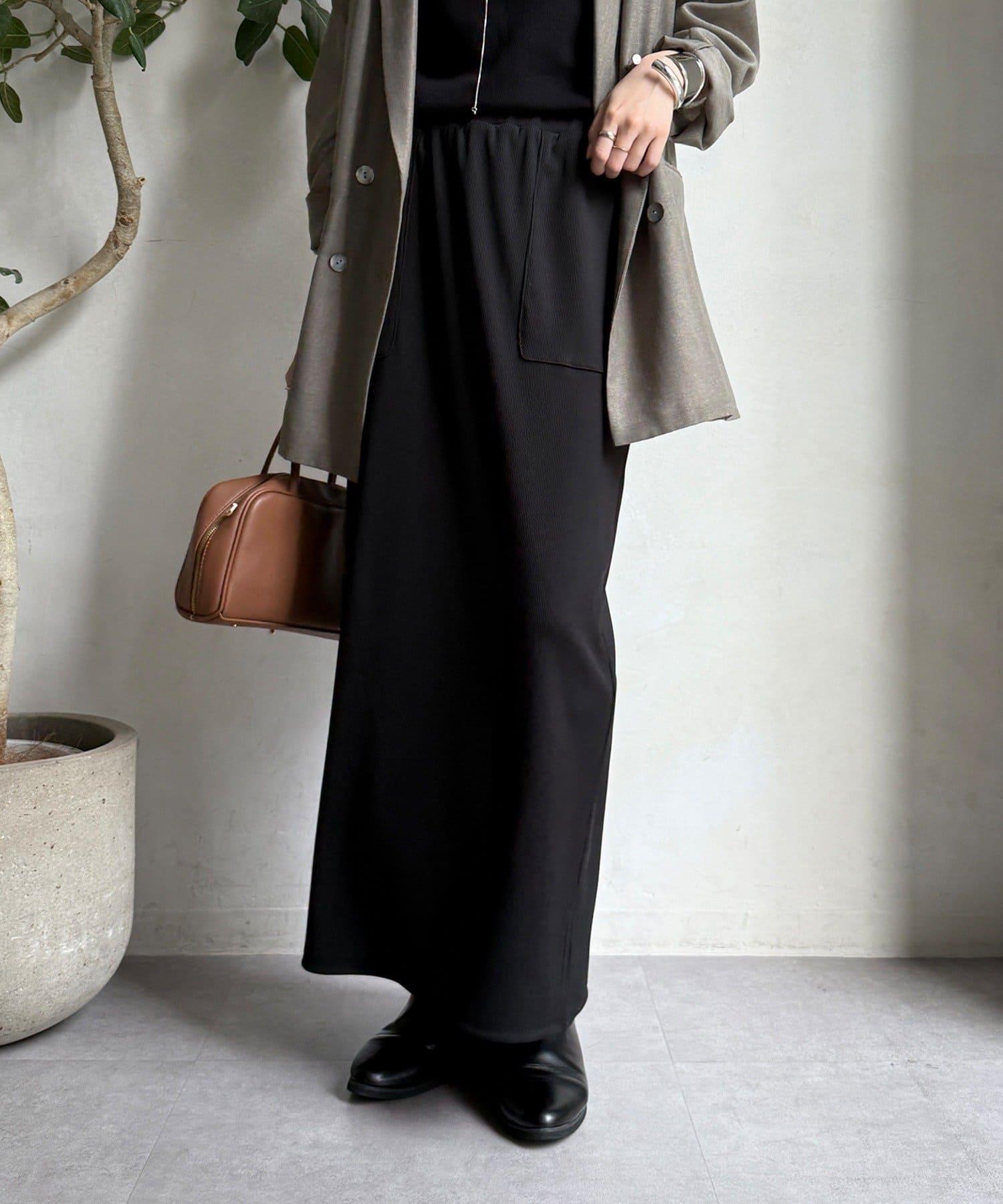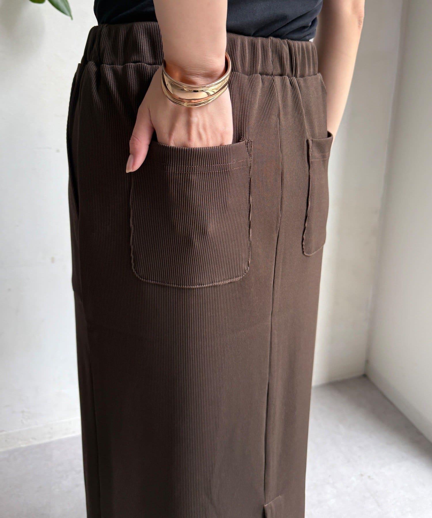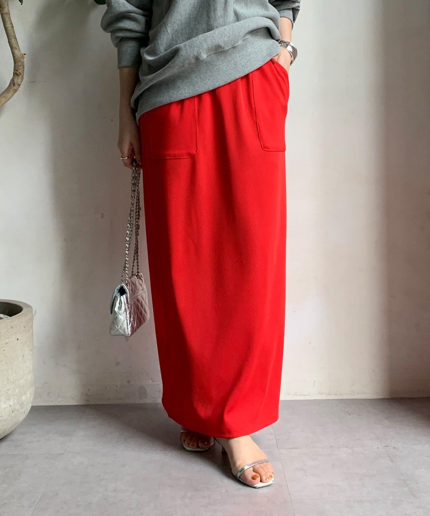 羅紋簡易半身裙,採用 I 字形廓形,營造出成熟的氛圍。
