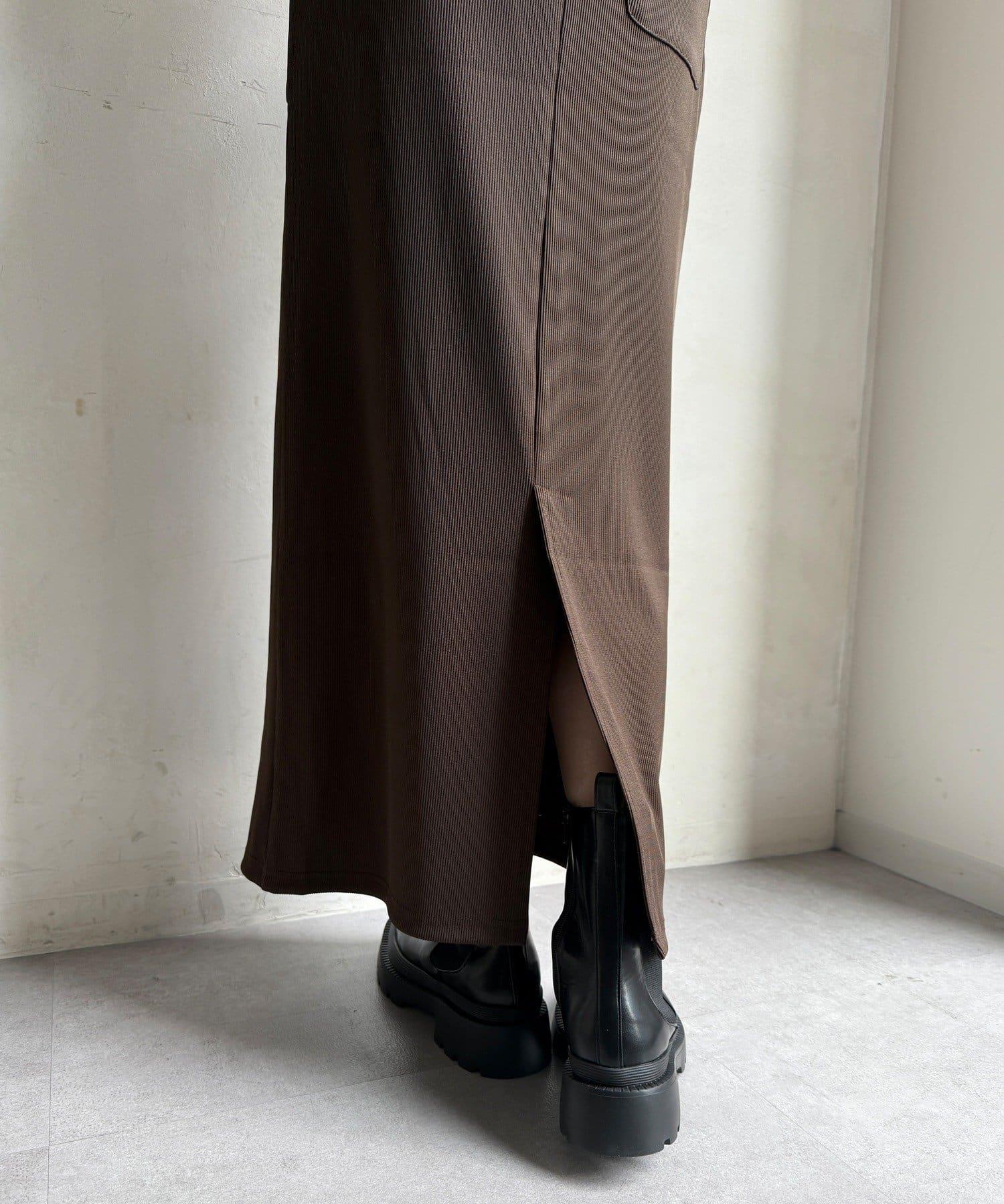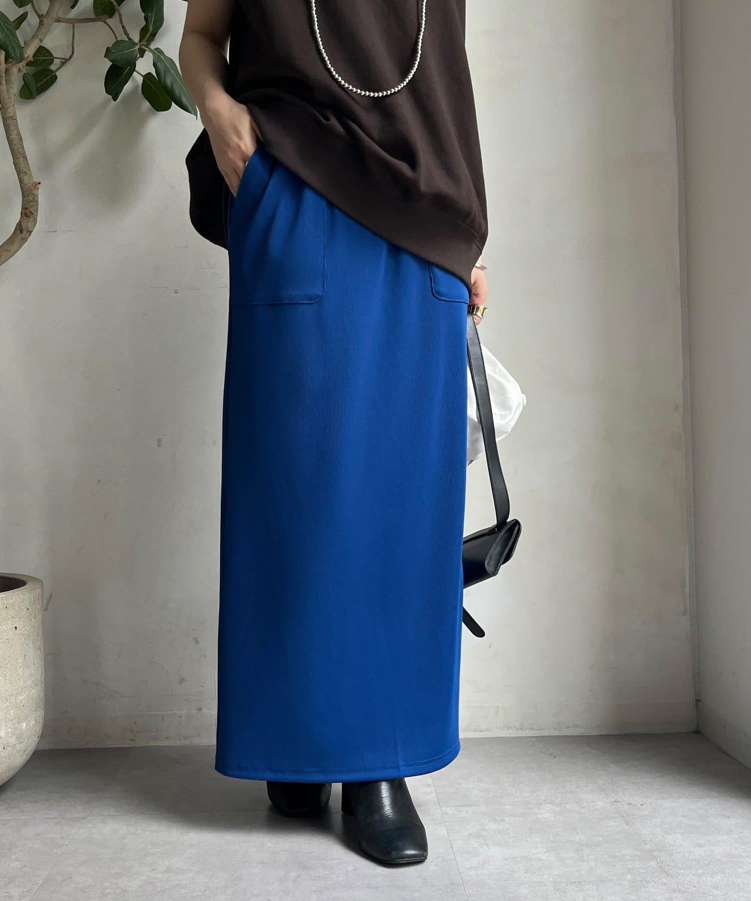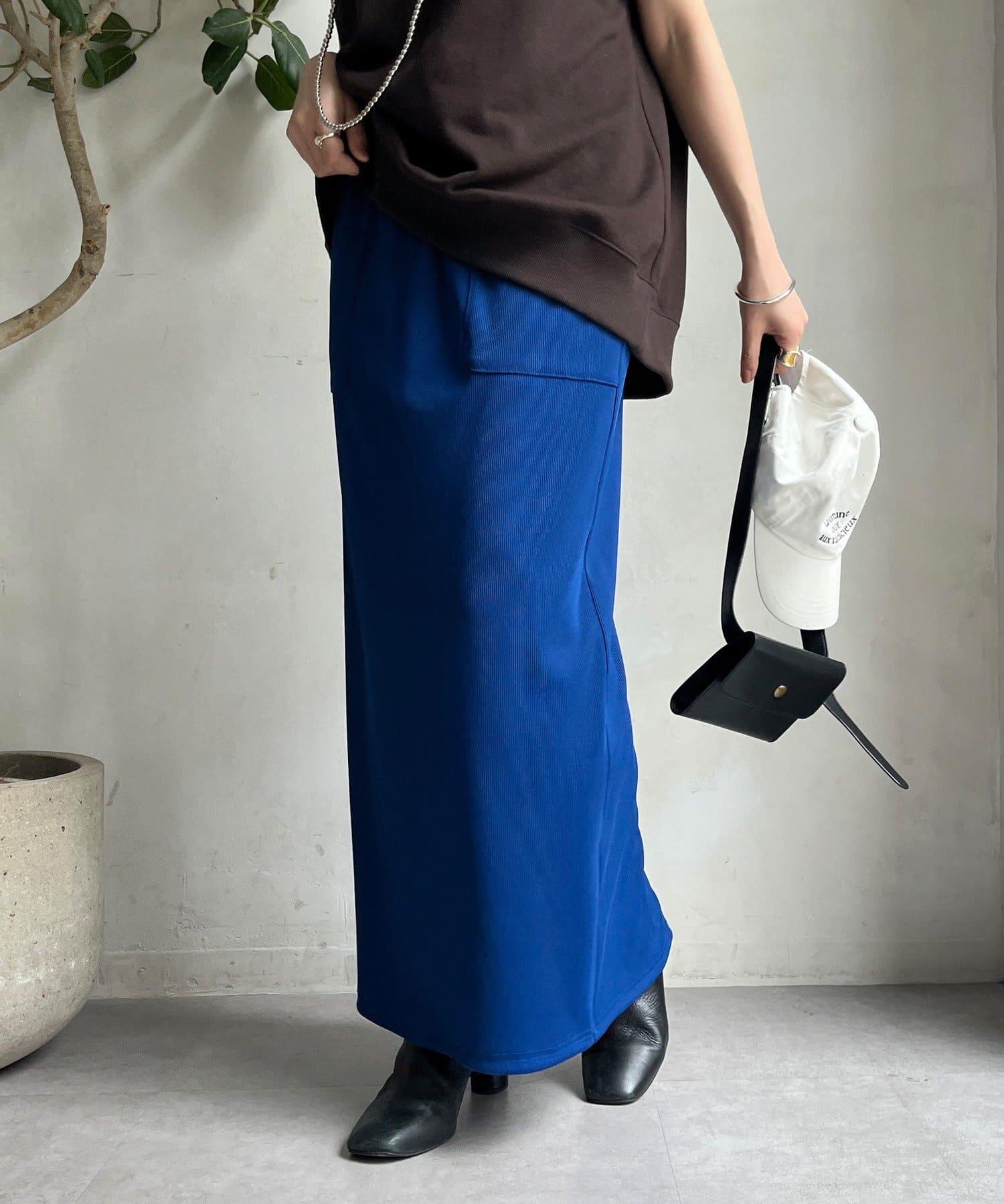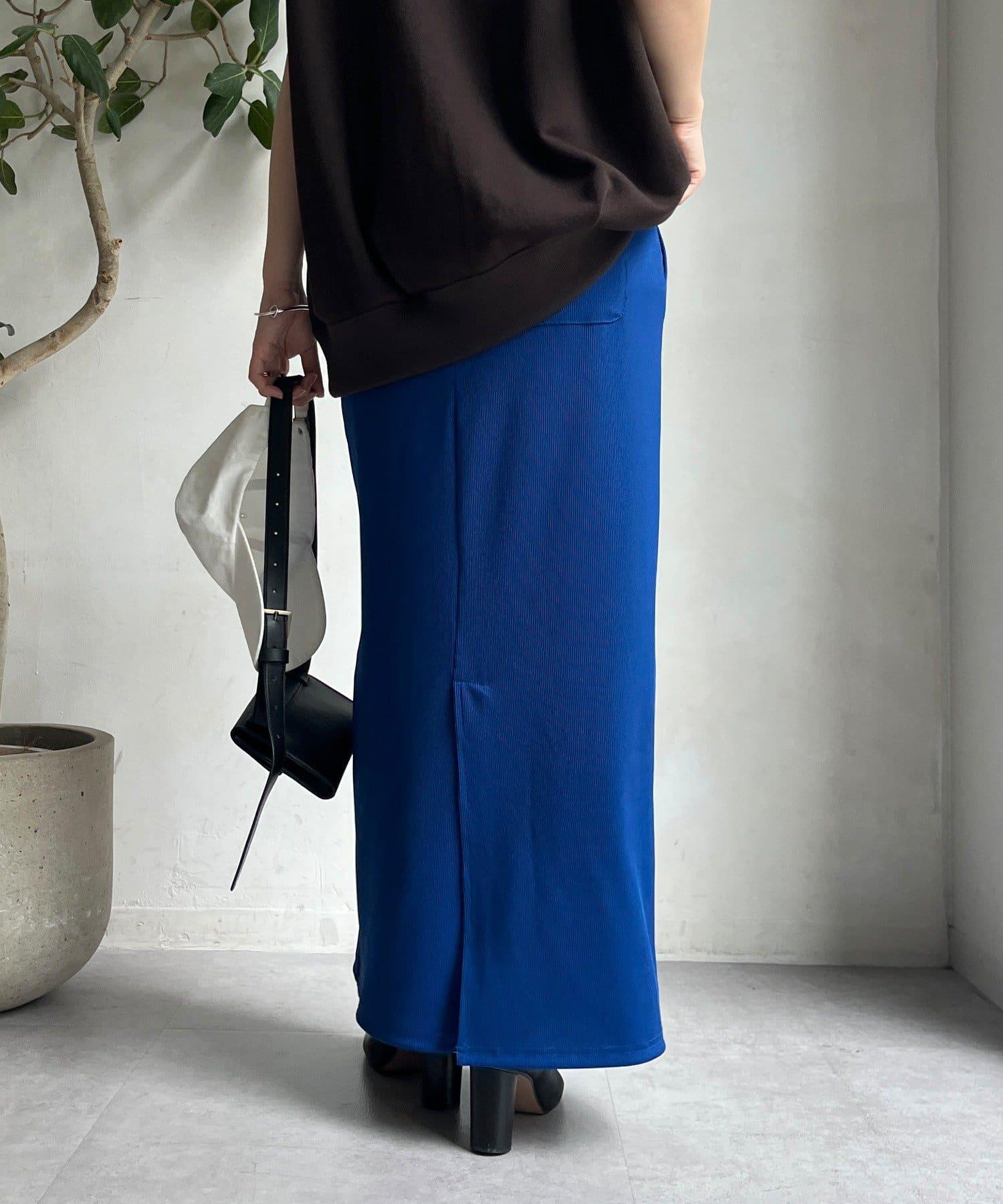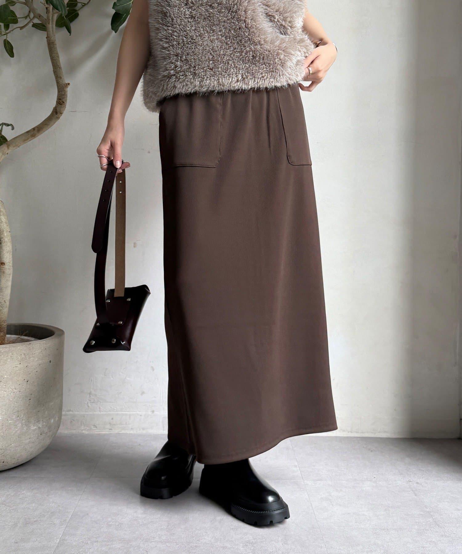 羅紋簡易半身裙,採用 I 字形廓形,營造出成熟的氛圍。