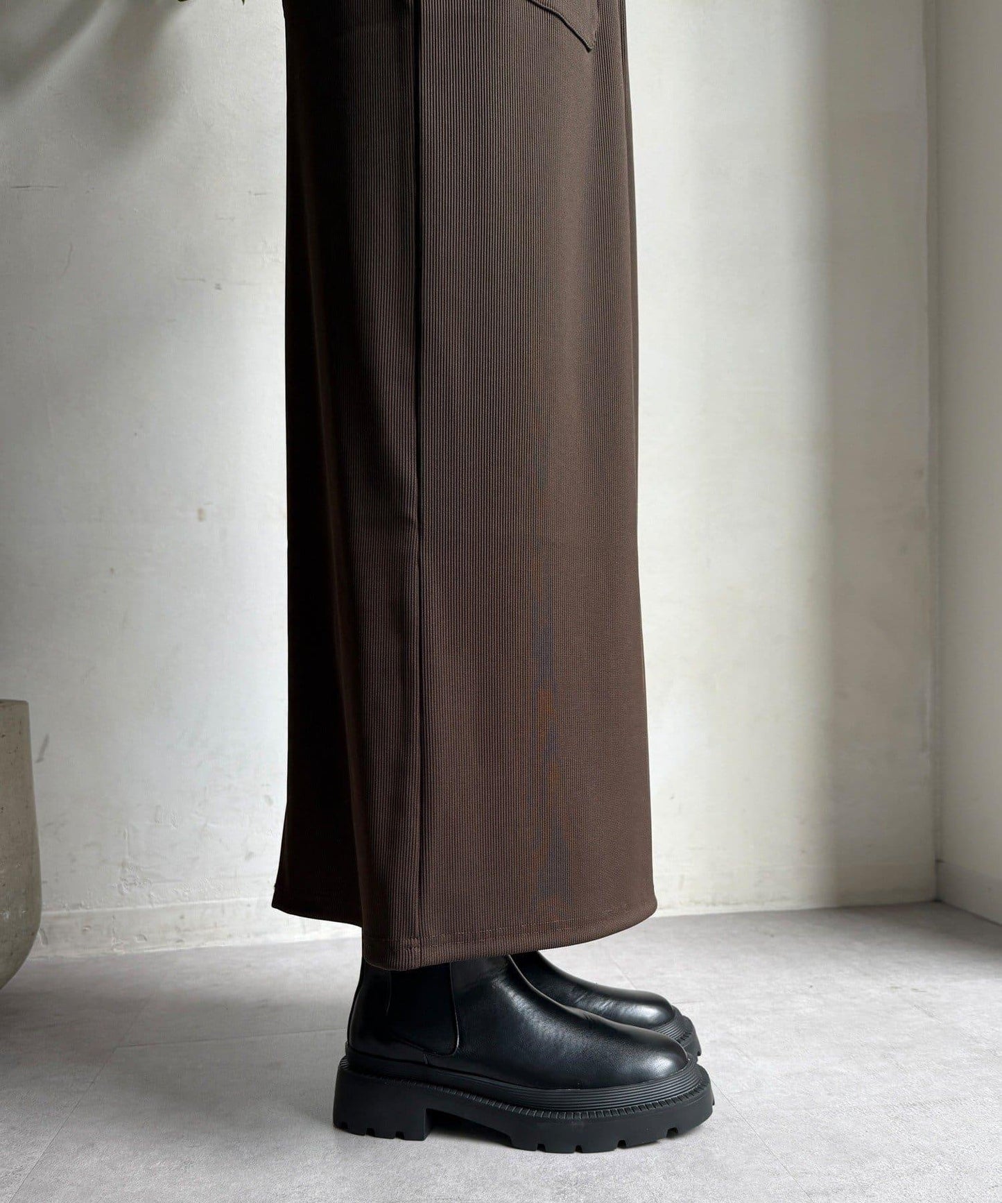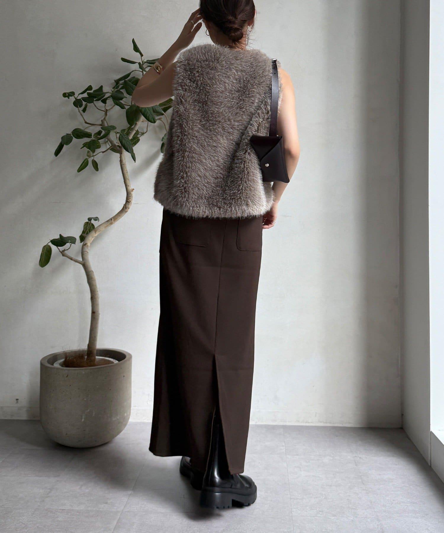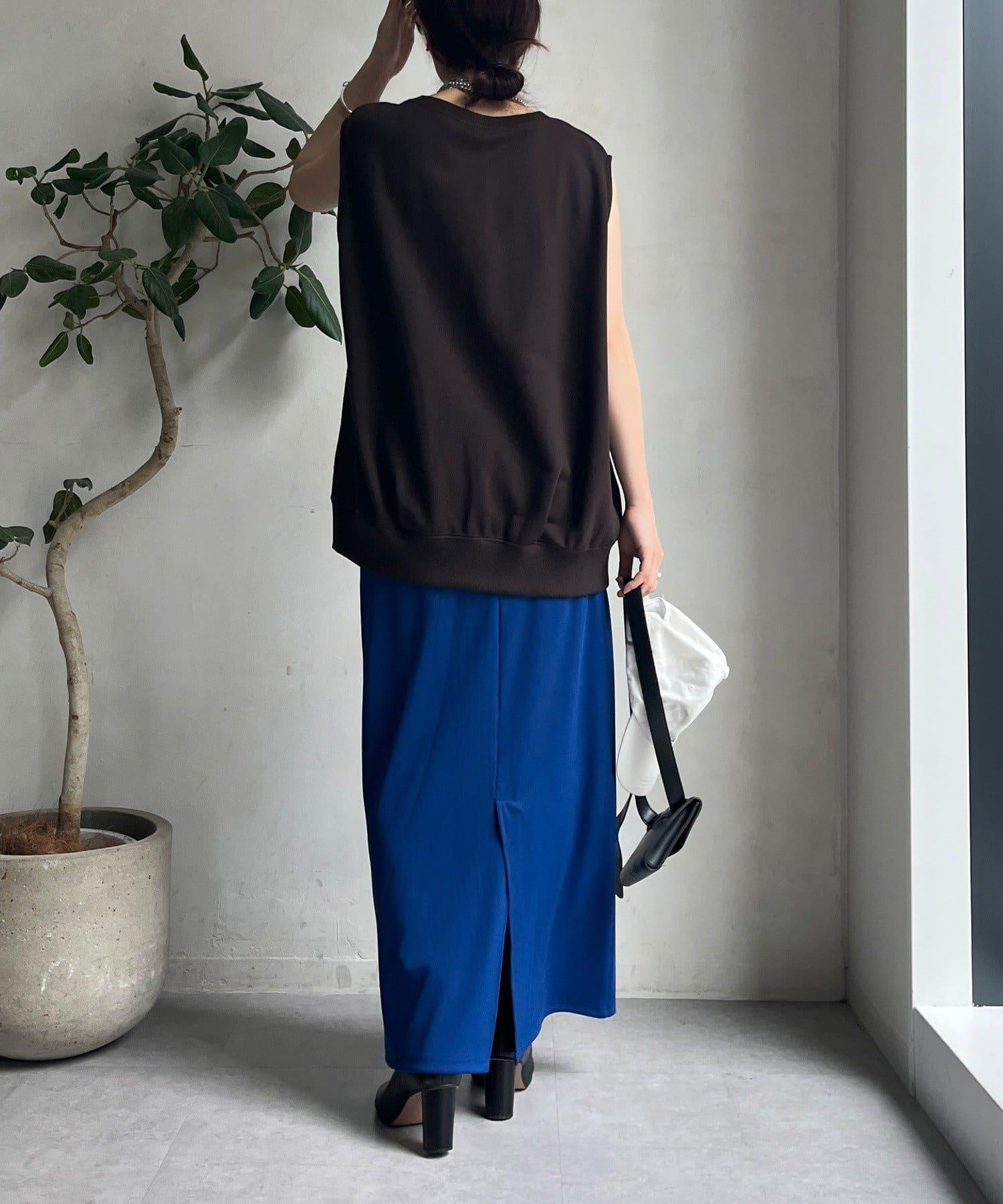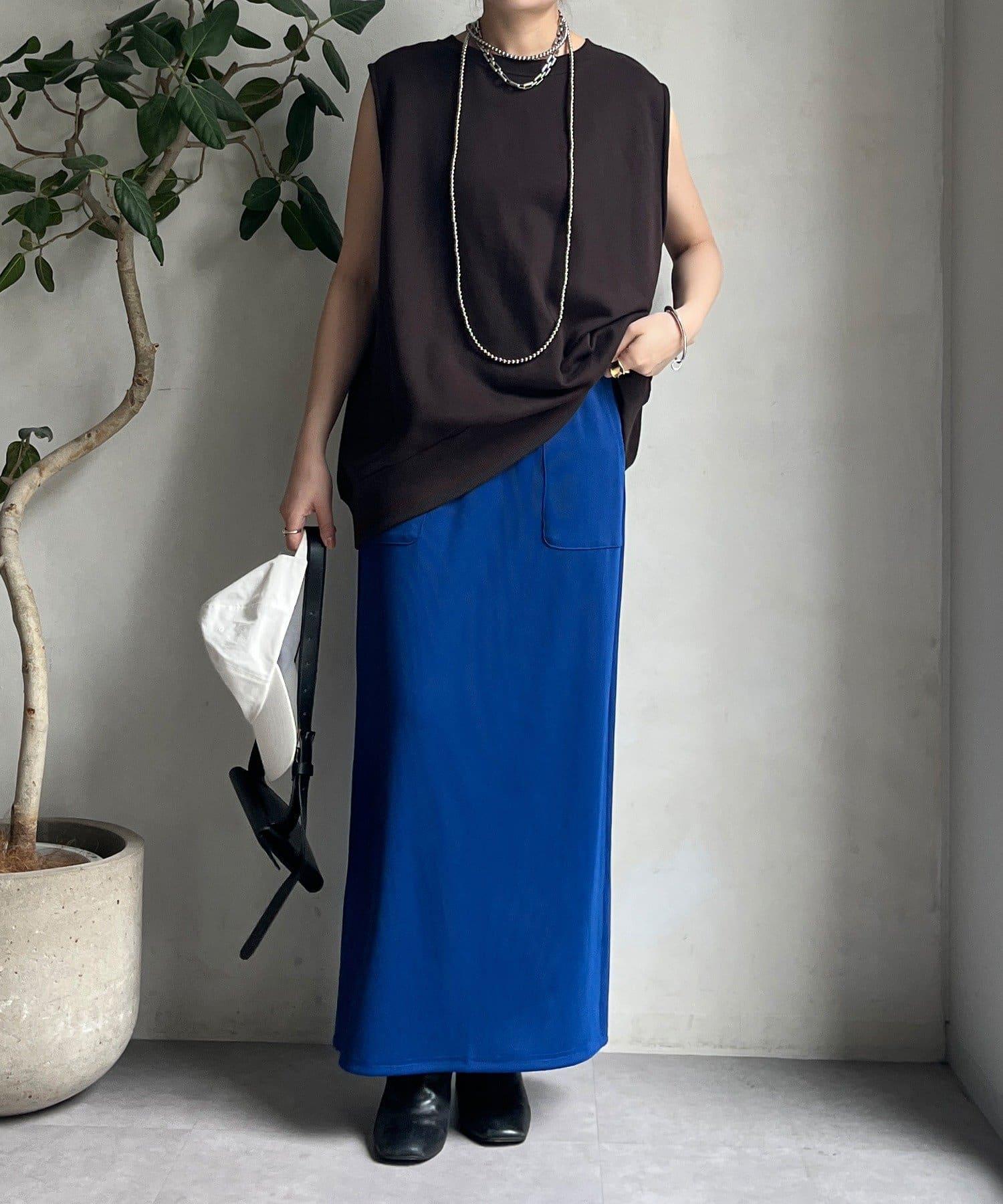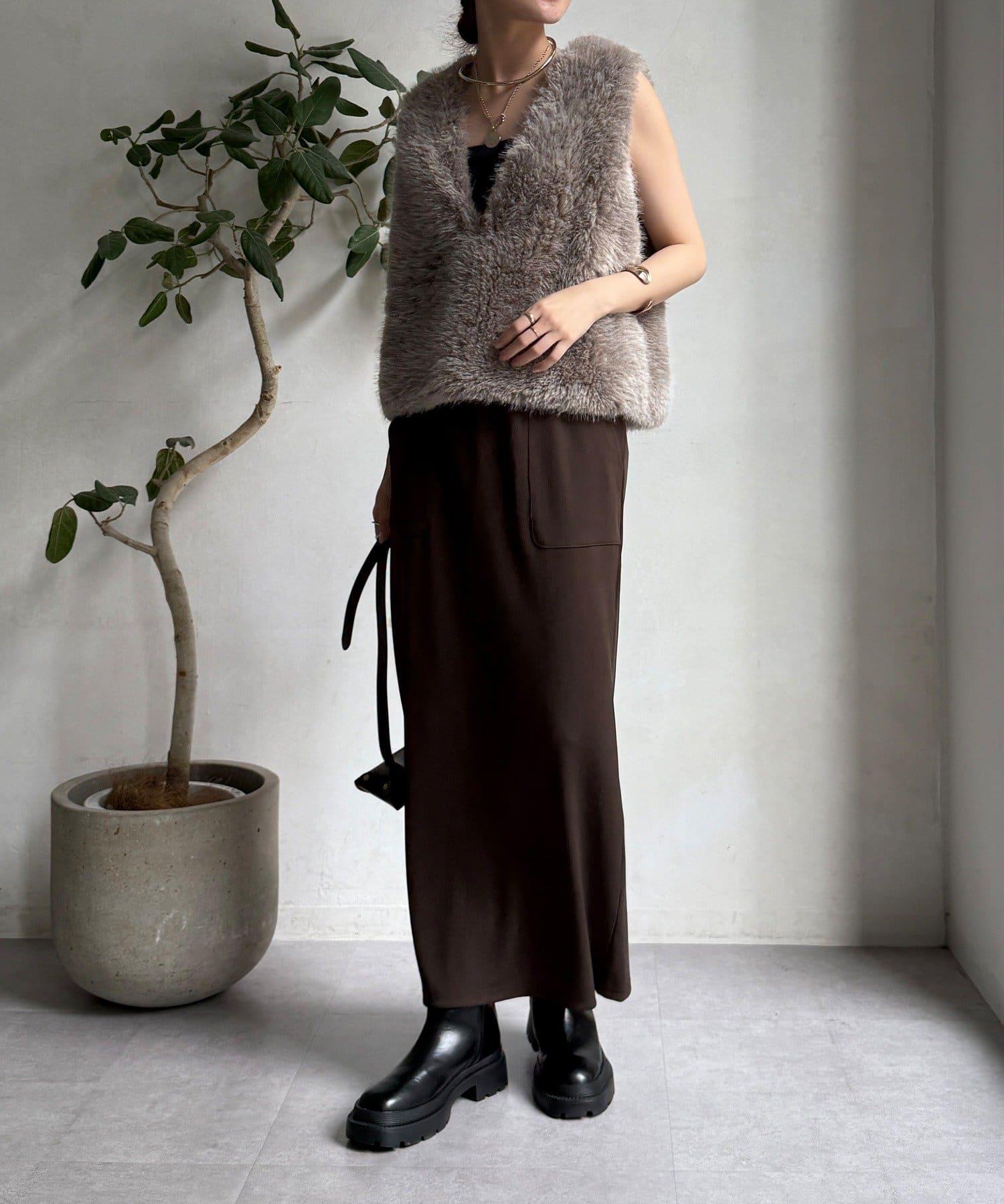 羅紋簡易半身裙,採用 I 字形廓形,營造出成熟的氛圍。