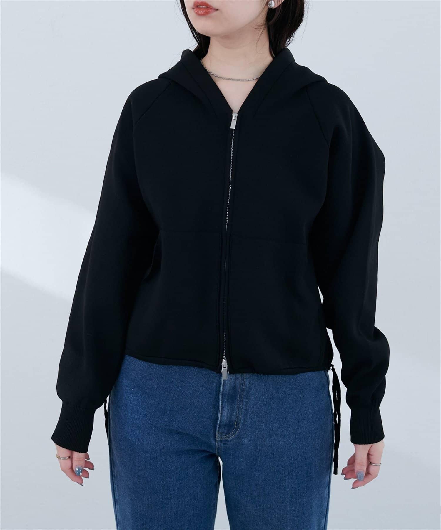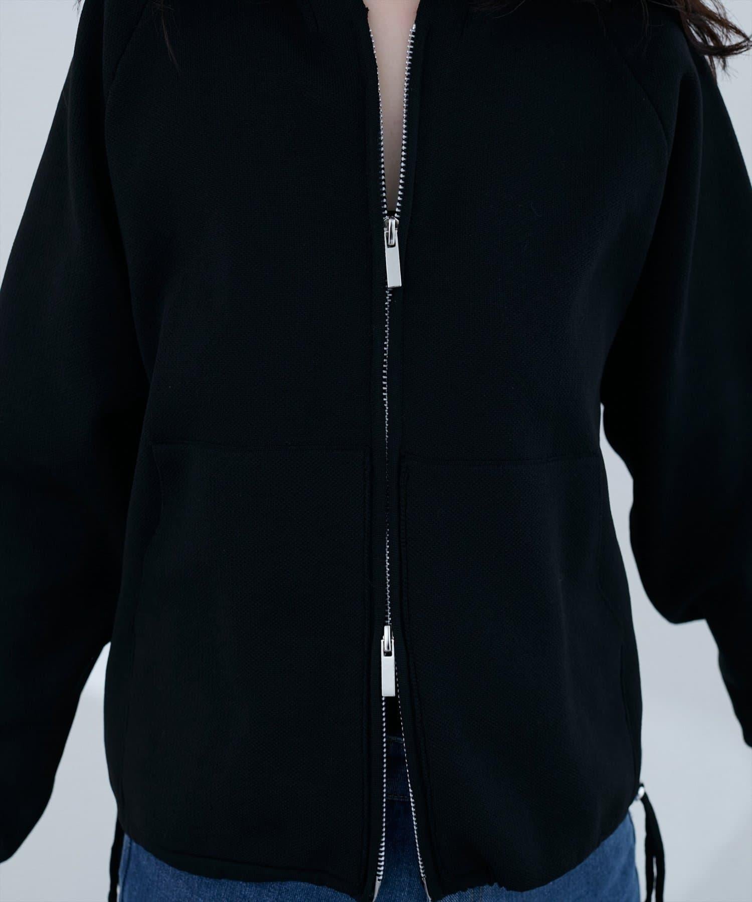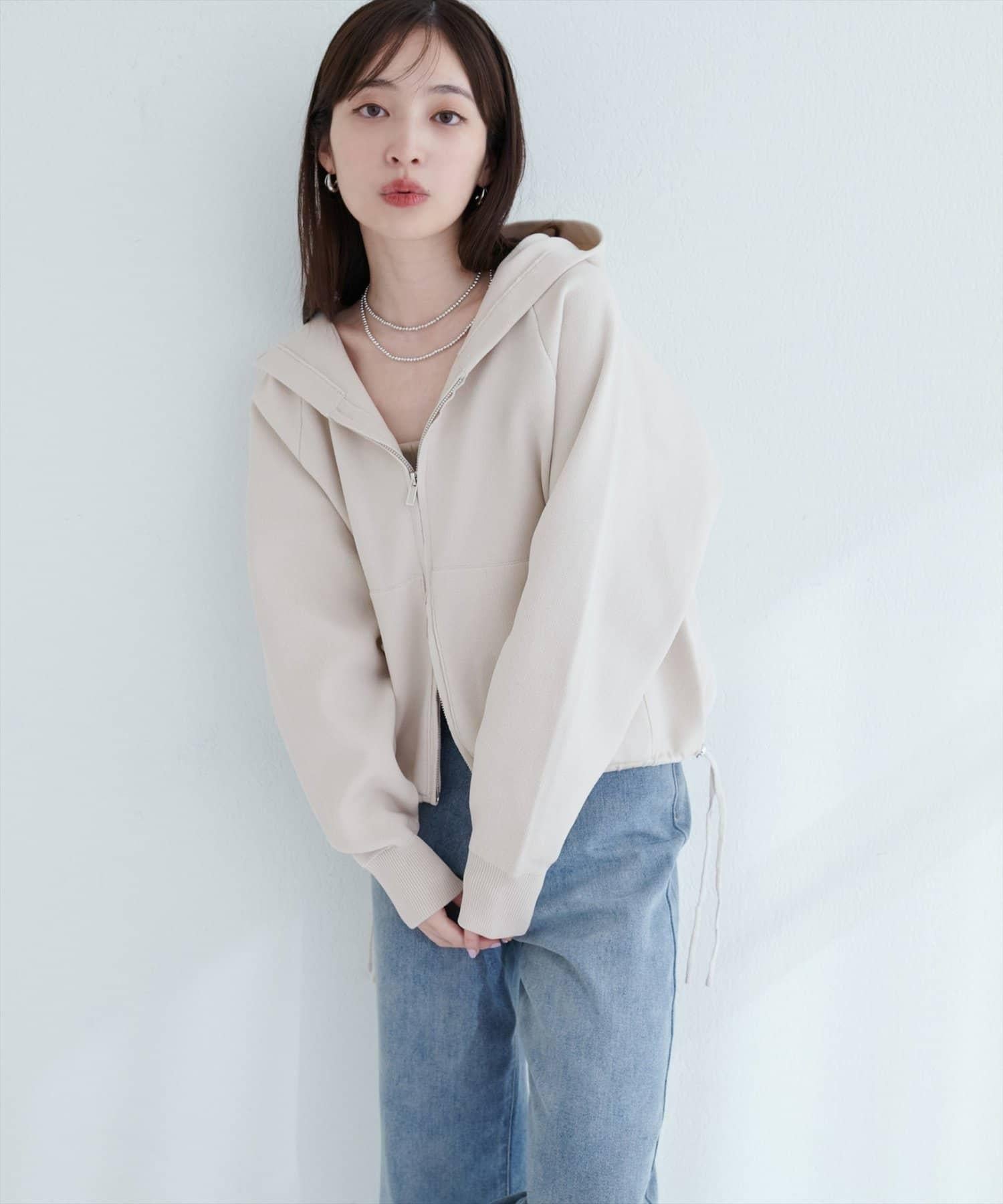 兩側的抽繩和袖口的羅紋設計凸顯了利落的輪廓。