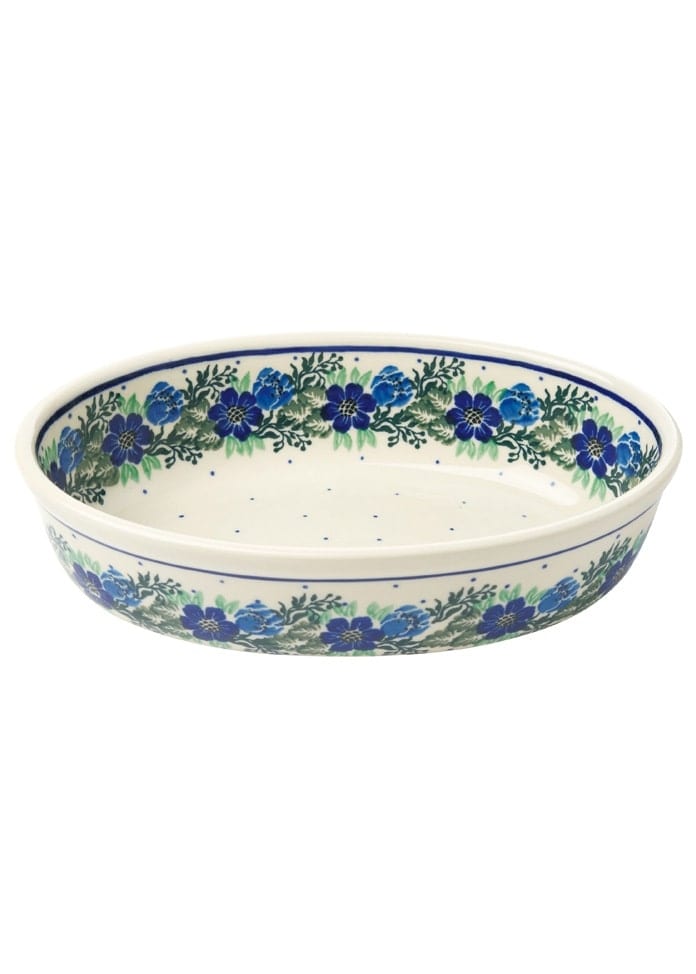 碗的形狀像一個小橢圓。如果你有的話,是一件很有用的東西,無論是用於烤箱烹飪還是作為咖喱或意大利麵的盤子。 該設計來自Pieni系列,其特點是罌粟花和銀蓮花等春天的花朵組成的花環。有一個藍色配色的版本和一個紅色和藍色配色的版本。設計簡單,但讓人聯想到波蘭的春天。