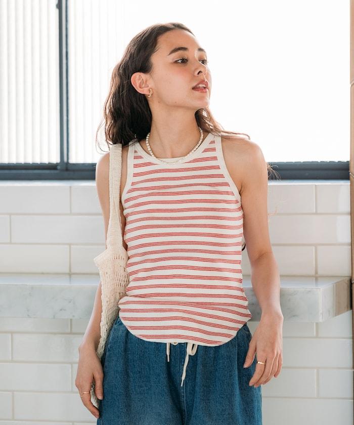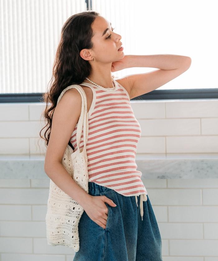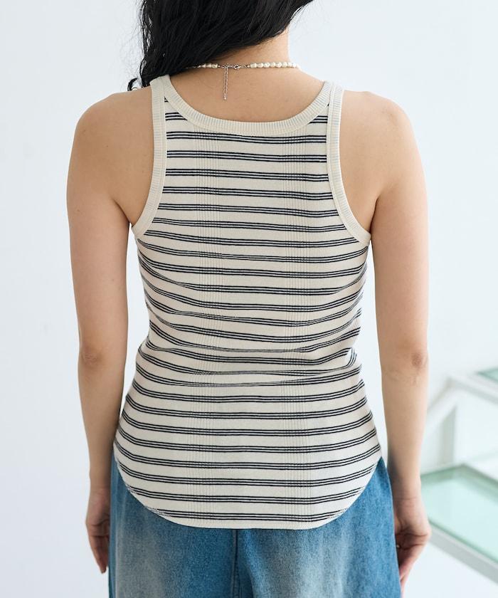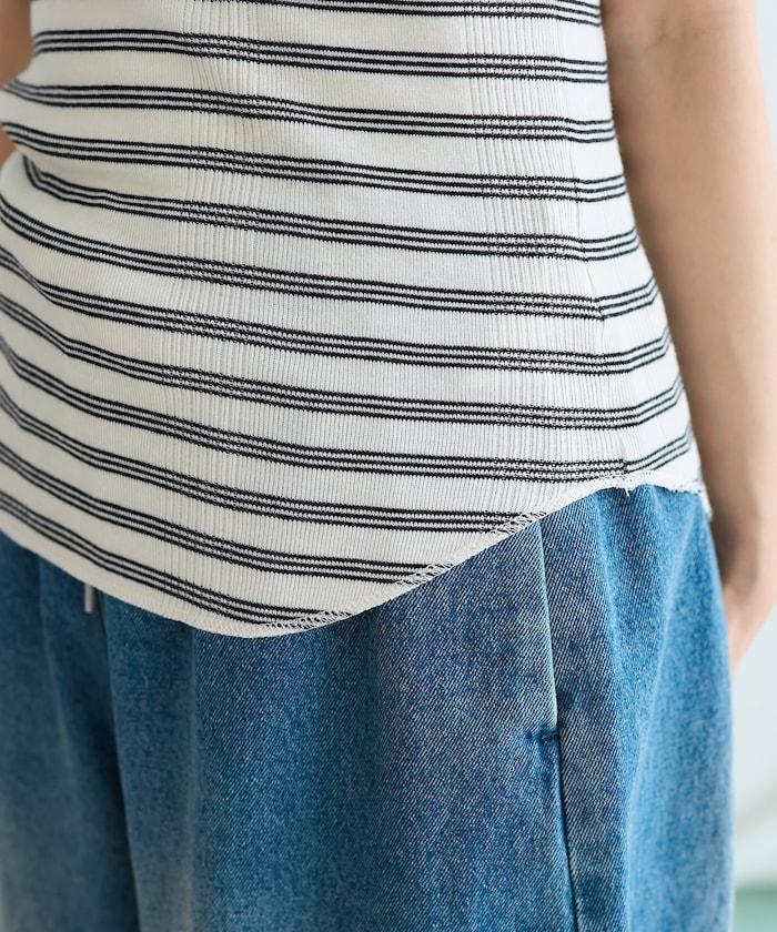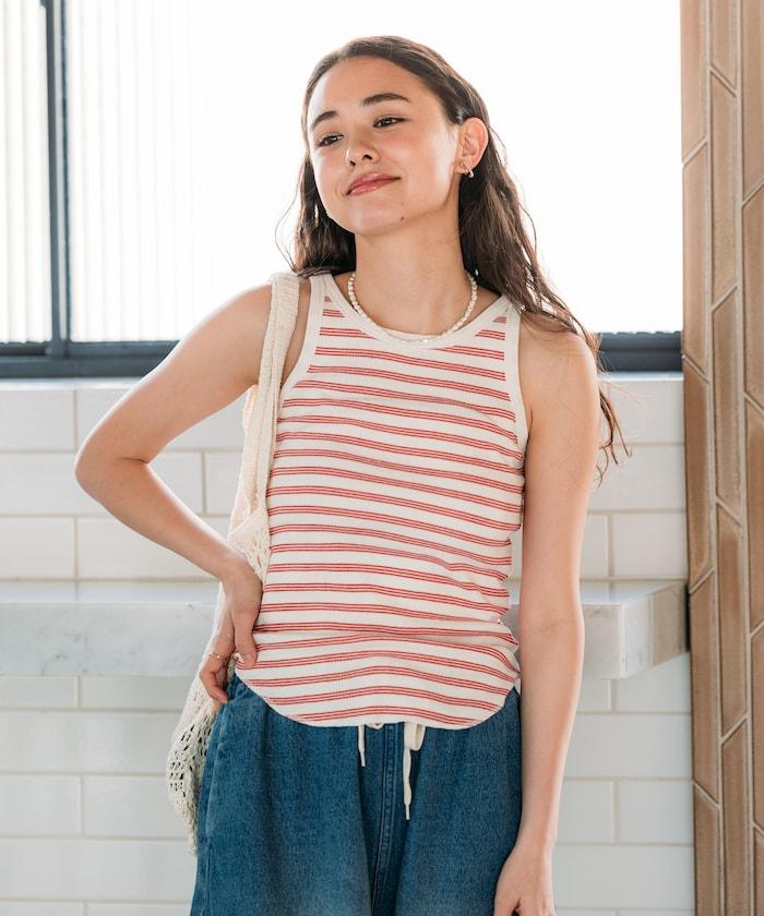 這款背心採用休閒的邊框圖案和富有表現力的隨機肋條。