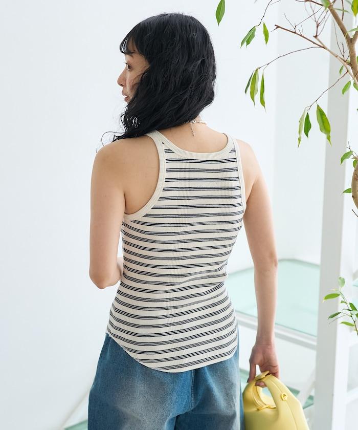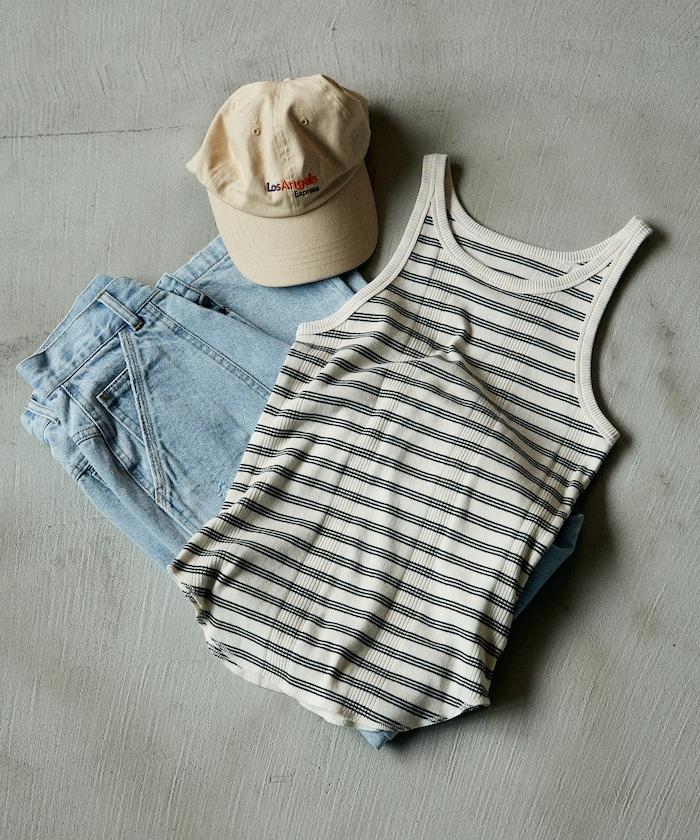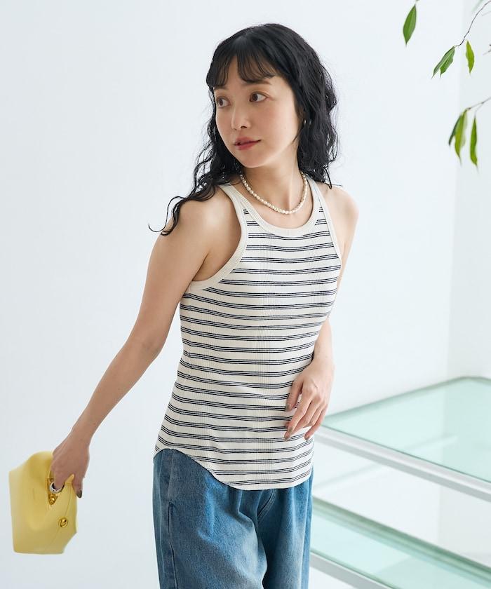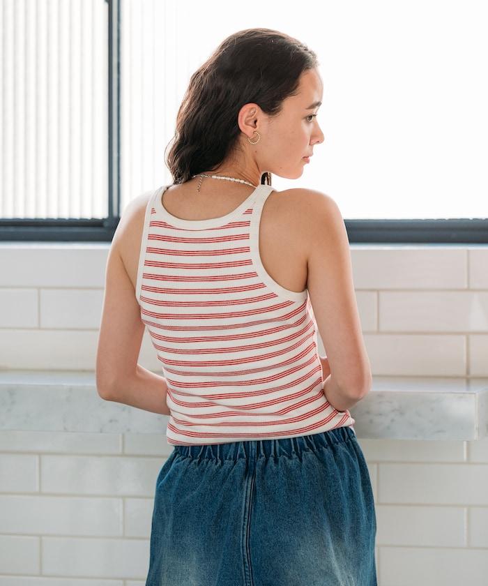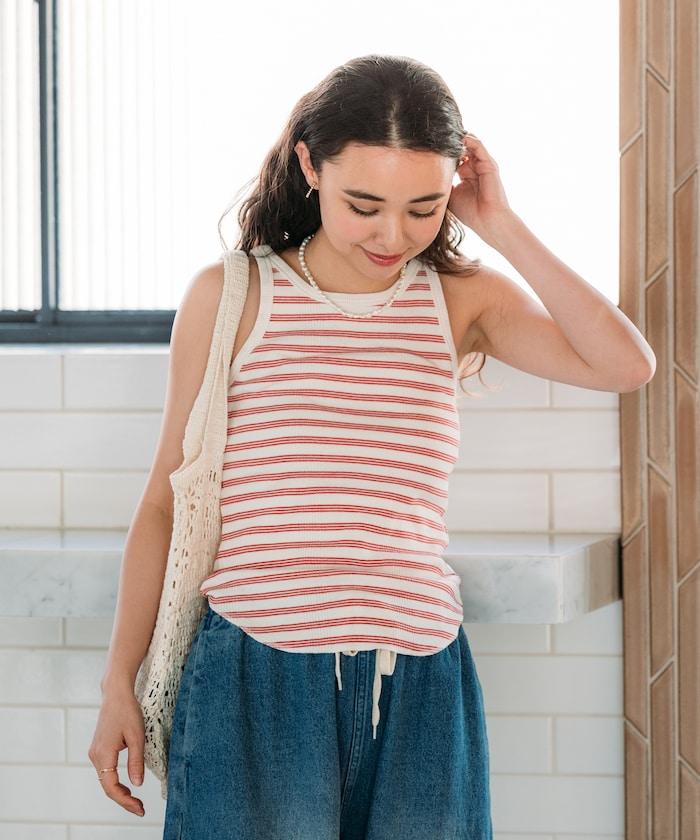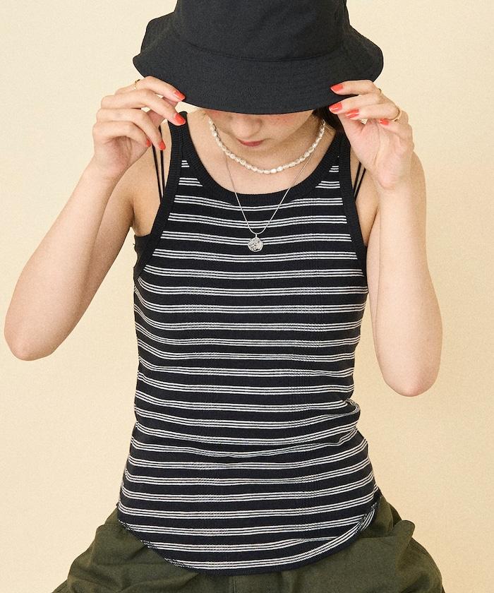 這款背心採用休閒的邊框圖案和富有表現力的隨機肋條。