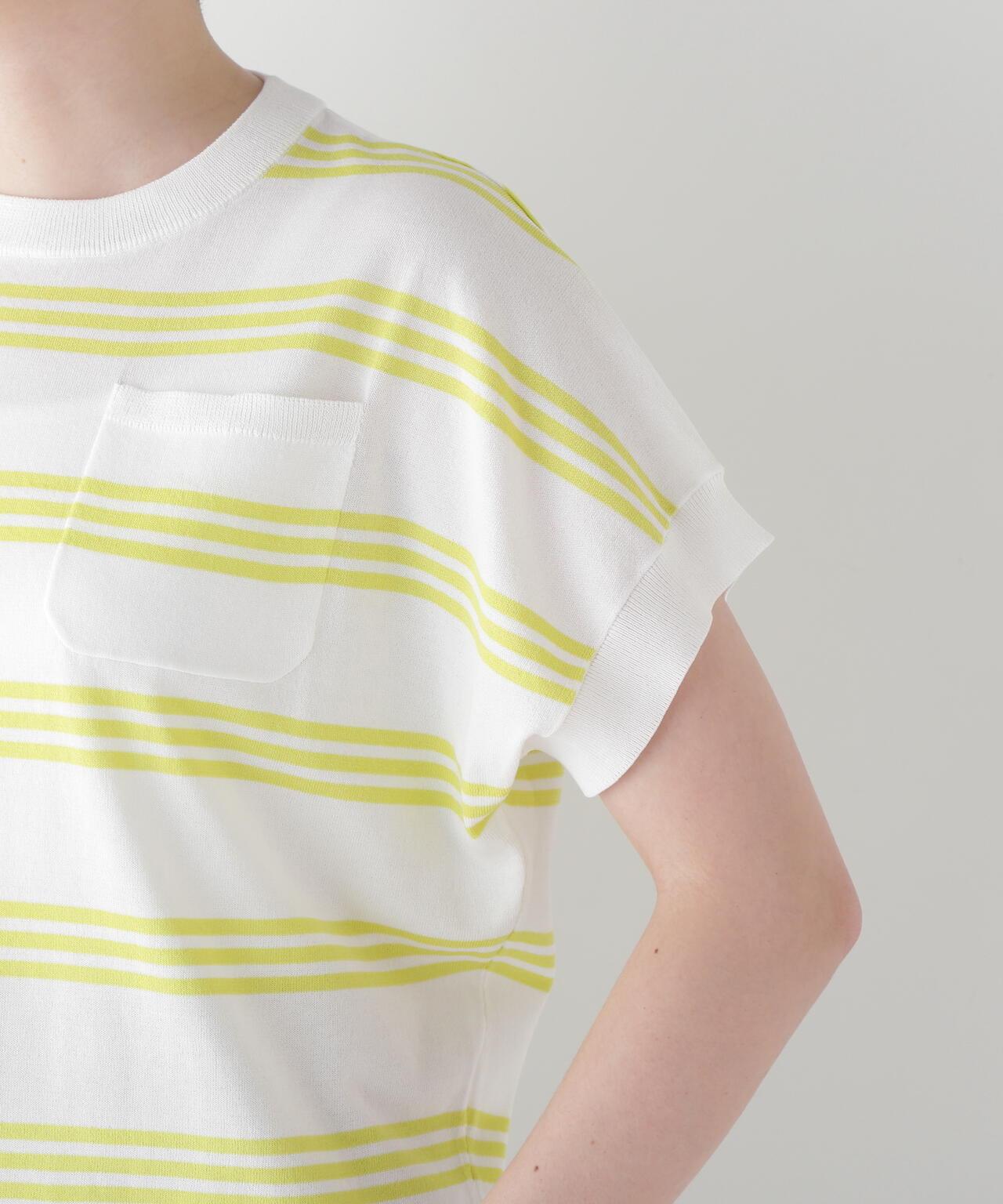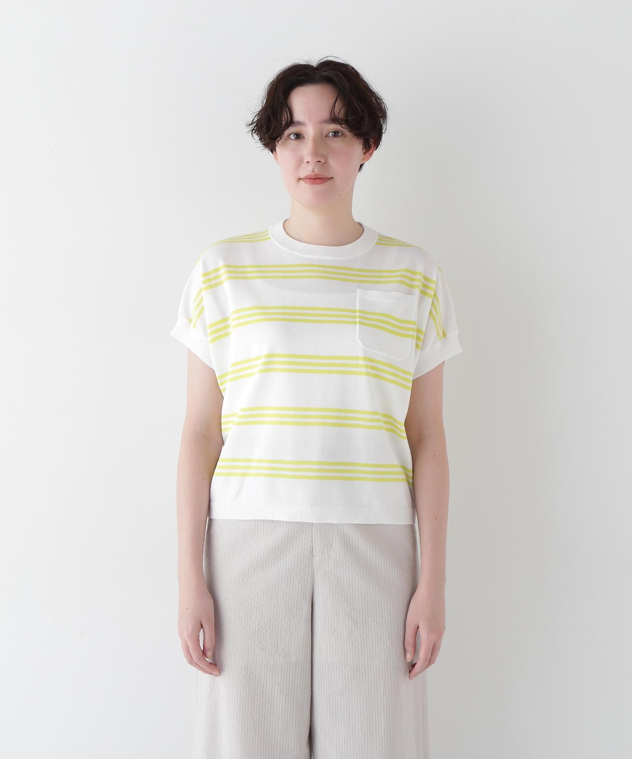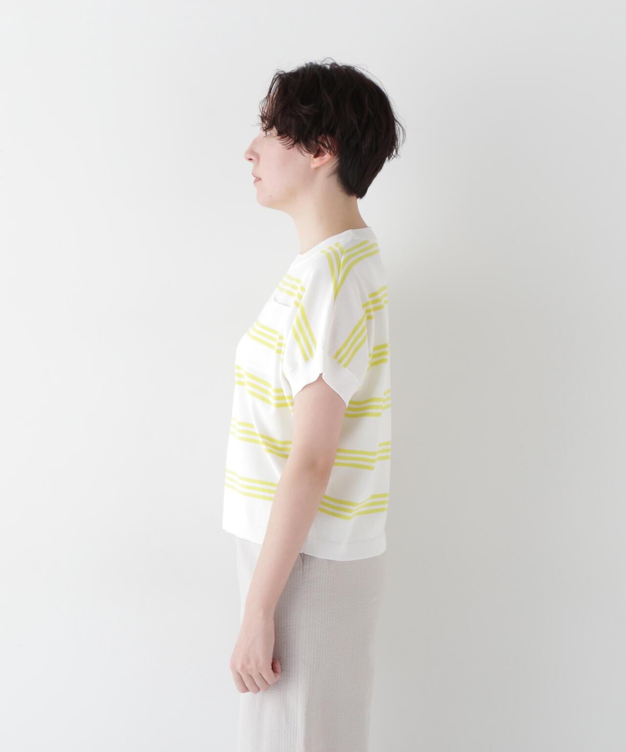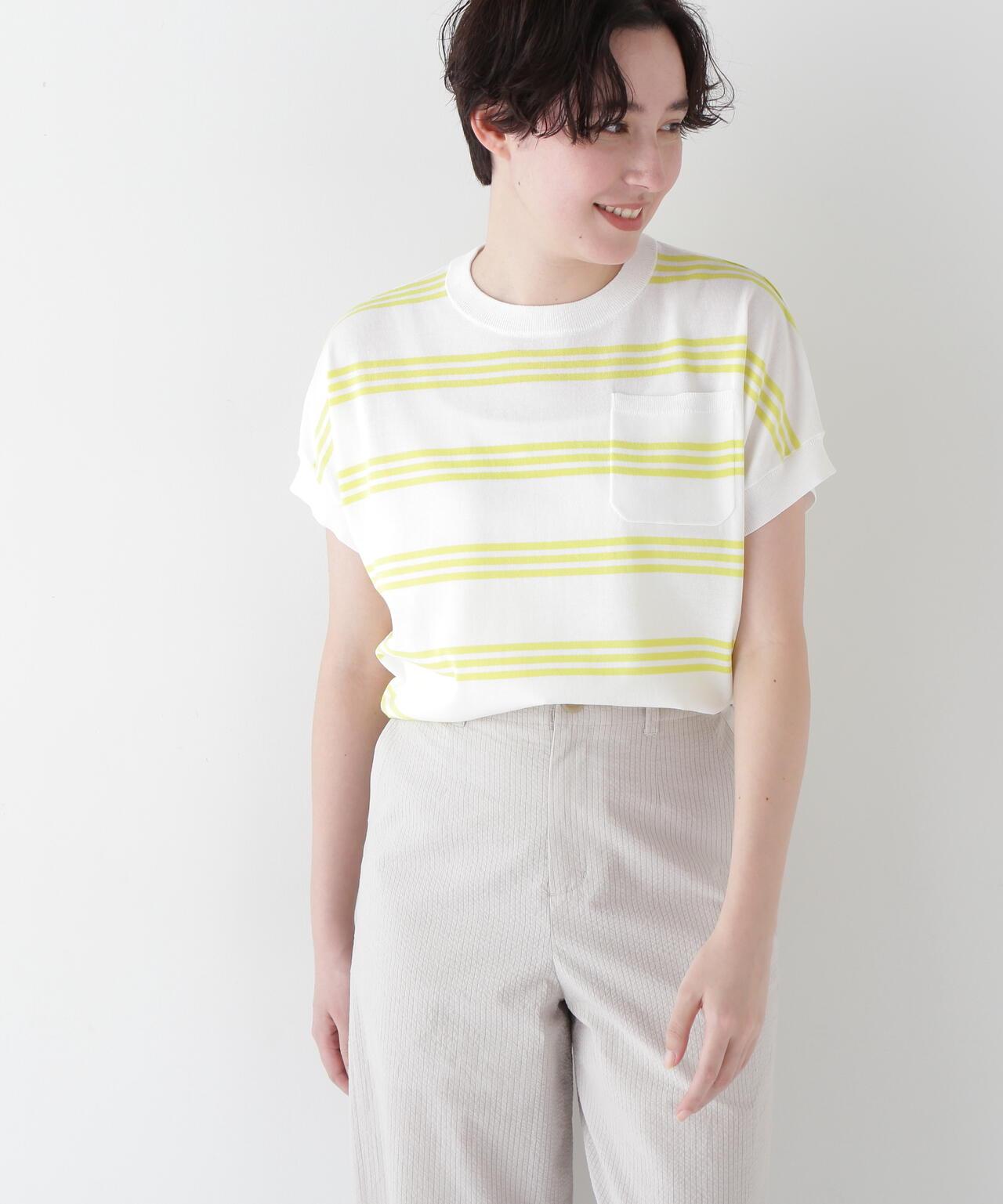 條紋套頭衫,煥然一新 [設計要點] 圓領套頭衫,飾有有趣的三線邊。倒梯形的輪廓賦予其獨特的平衡感。胸前口袋是點睛之筆。高規格棉聚酯面料觸感輕盈,即使直接接觸皮膚也感覺舒適。套頭衫還有白色和黃色可供選擇。這款套頭衫可與簡單的下裝搭配。 既可以穿得漂亮,也可以穿得隨意。