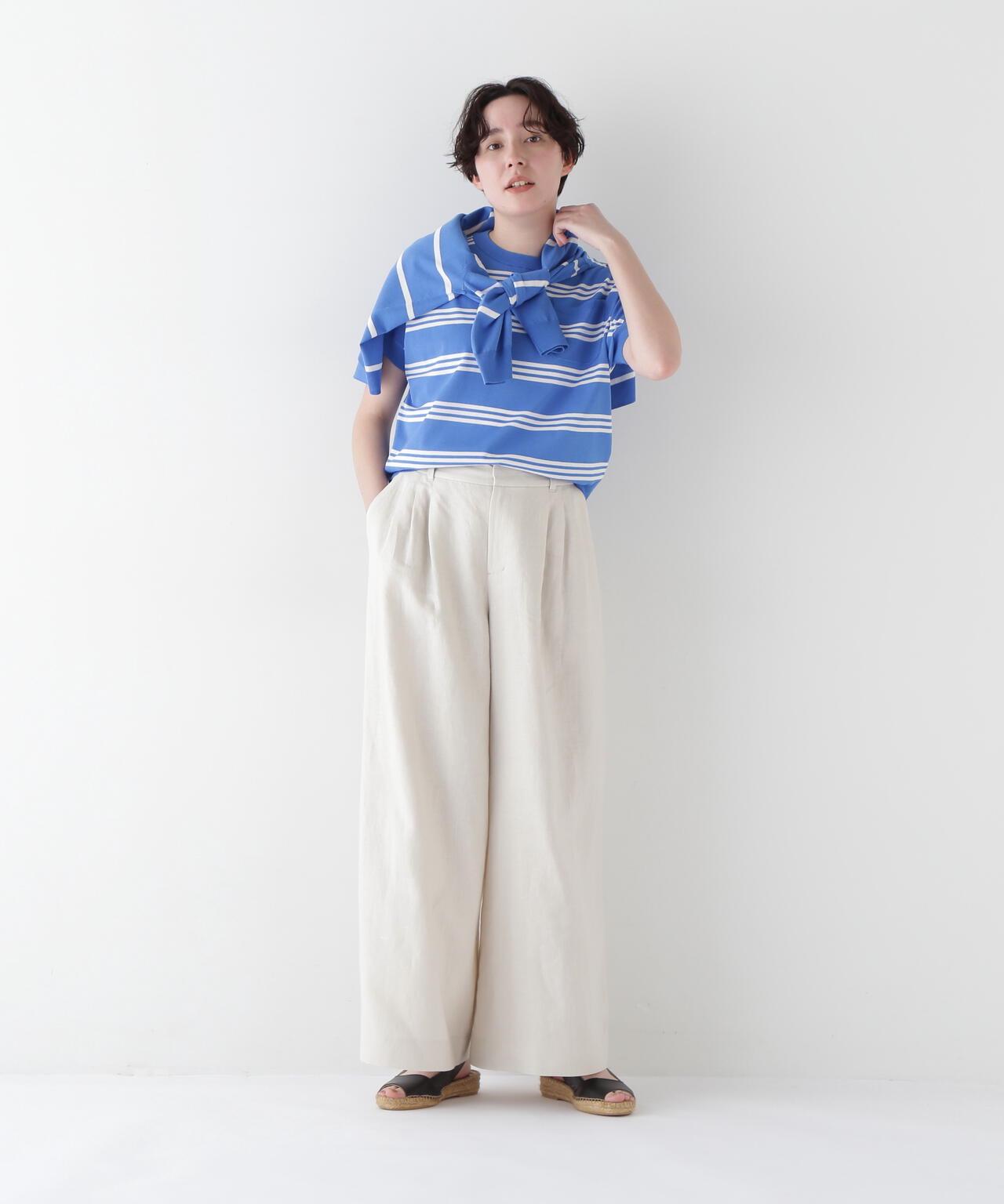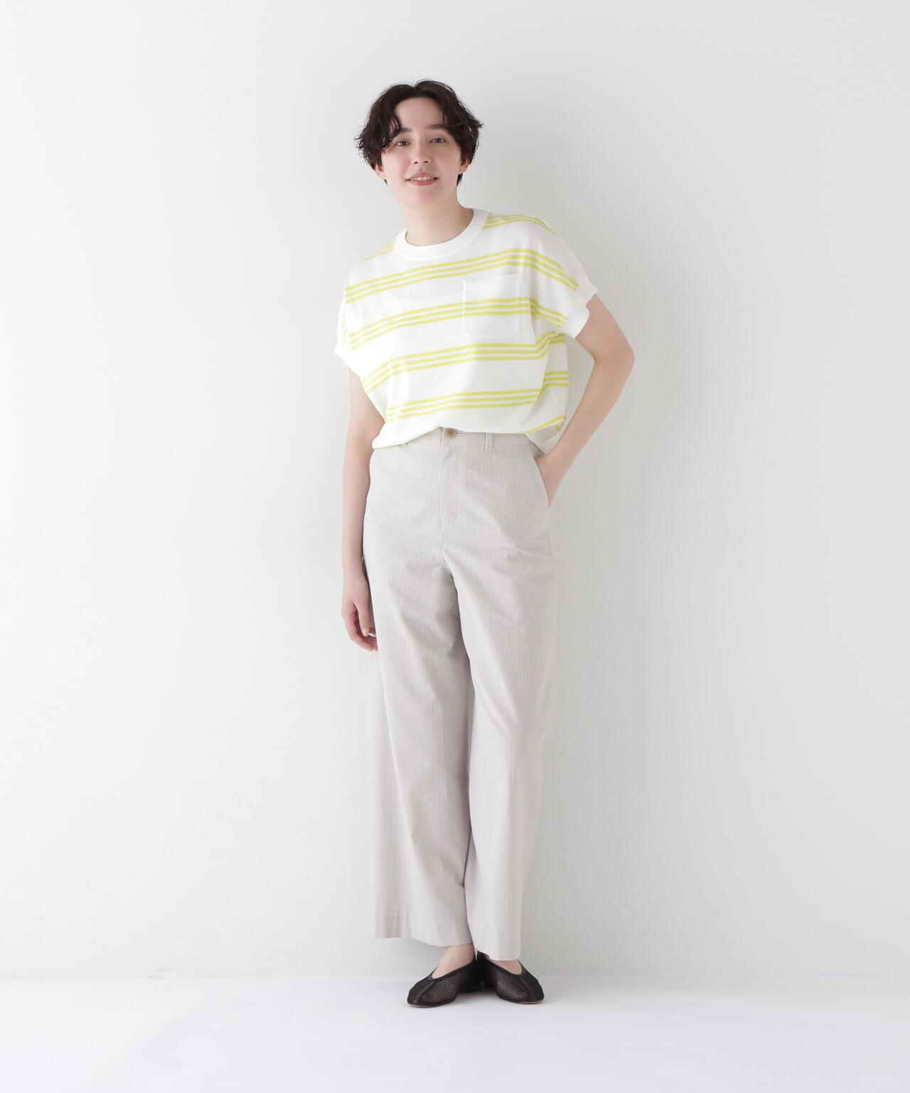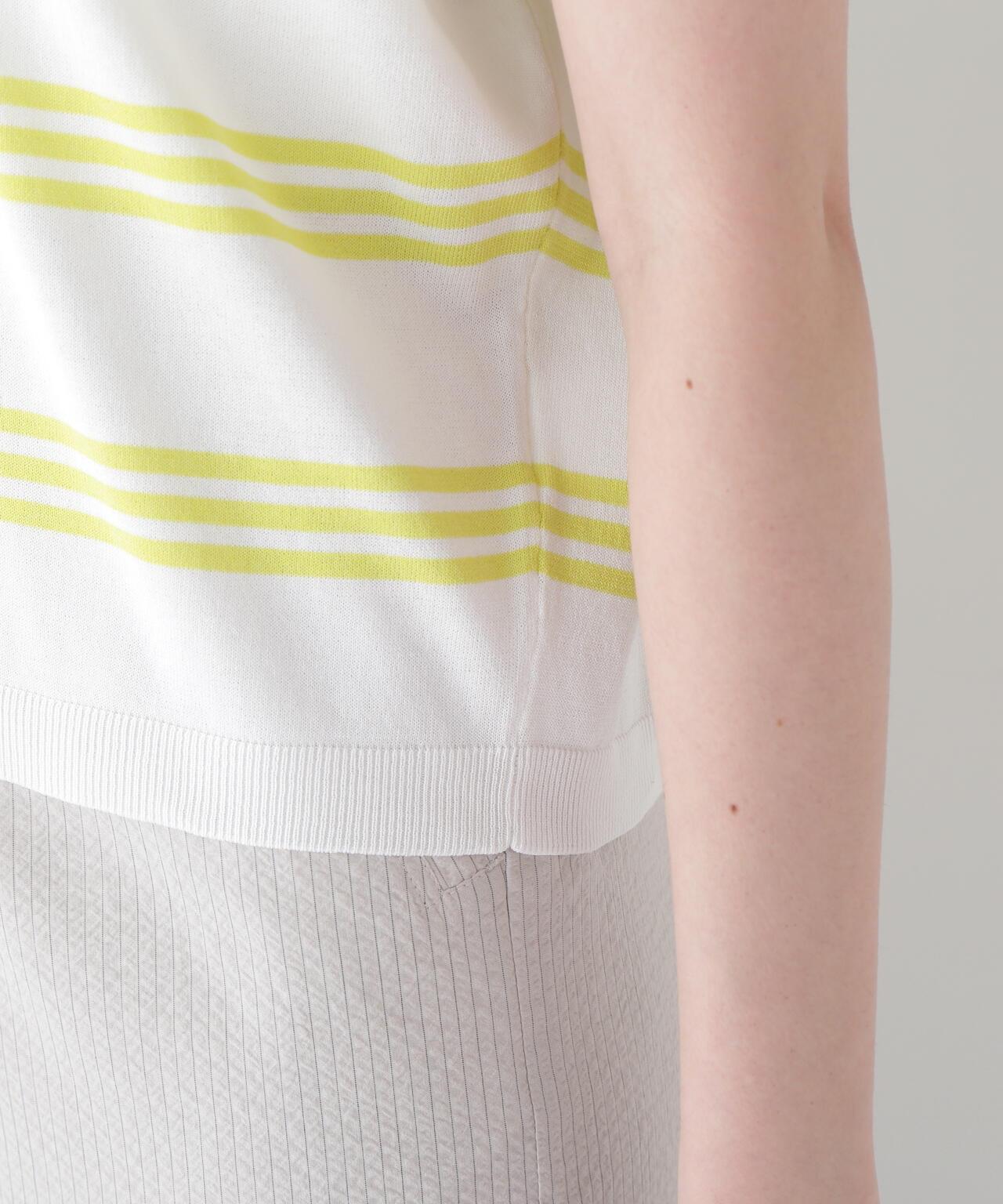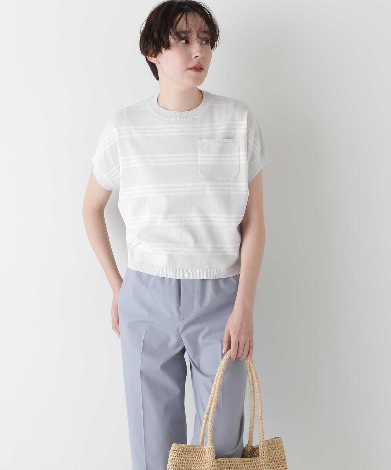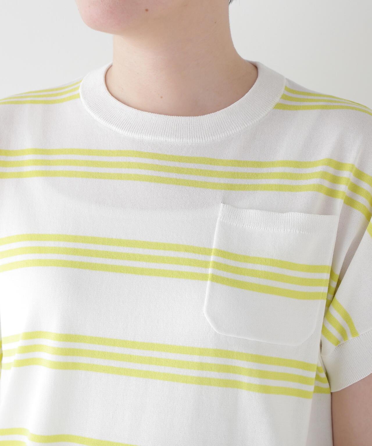 條紋套頭衫,煥然一新 [設計要點] 圓領套頭衫,飾有有趣的三線邊。倒梯形的輪廓賦予其獨特的平衡感。胸前口袋是點睛之筆。高規格棉聚酯面料觸感輕盈,即使直接接觸皮膚也感覺舒適。套頭衫還有白色和黃色可供選擇。這款套頭衫可與簡單的下裝搭配。 既可以穿得漂亮,也可以穿得隨意。