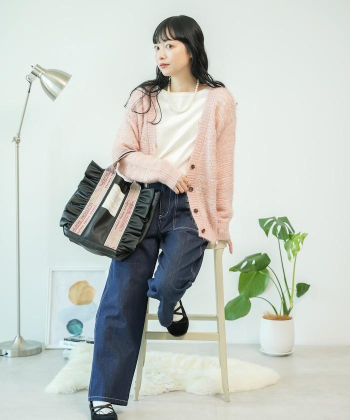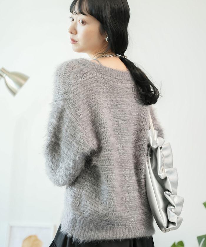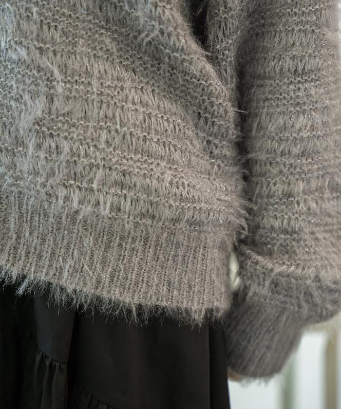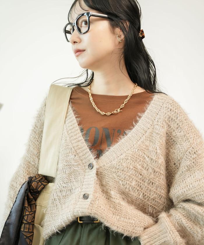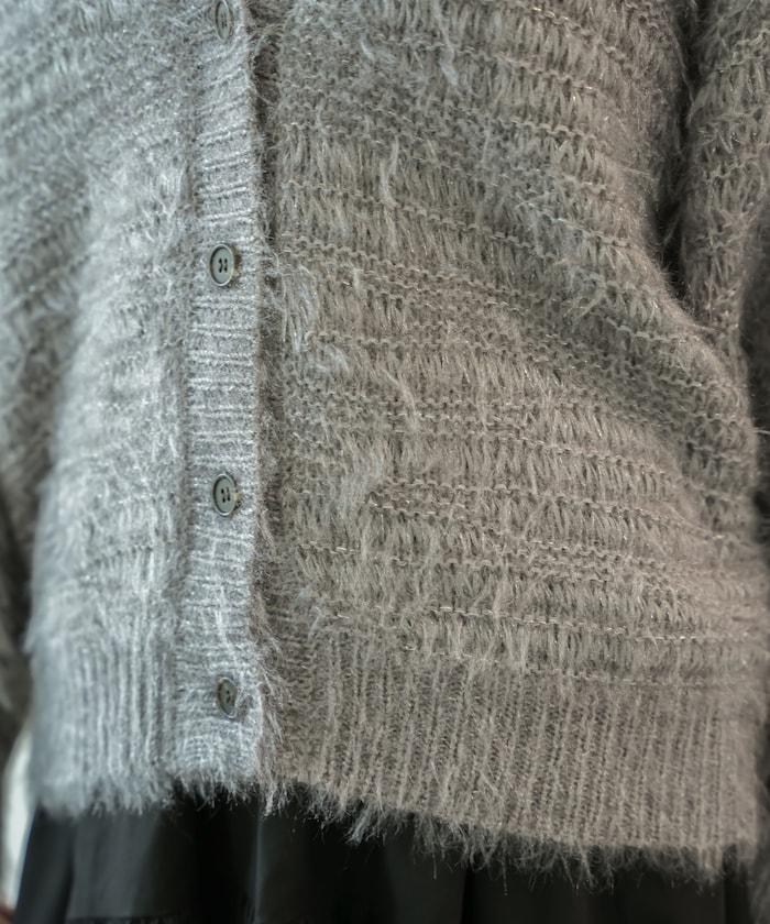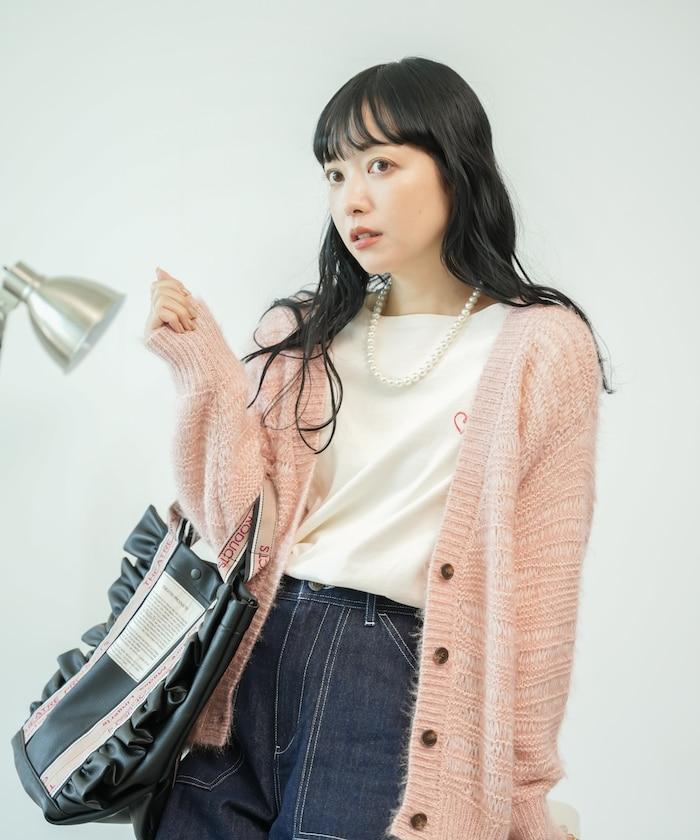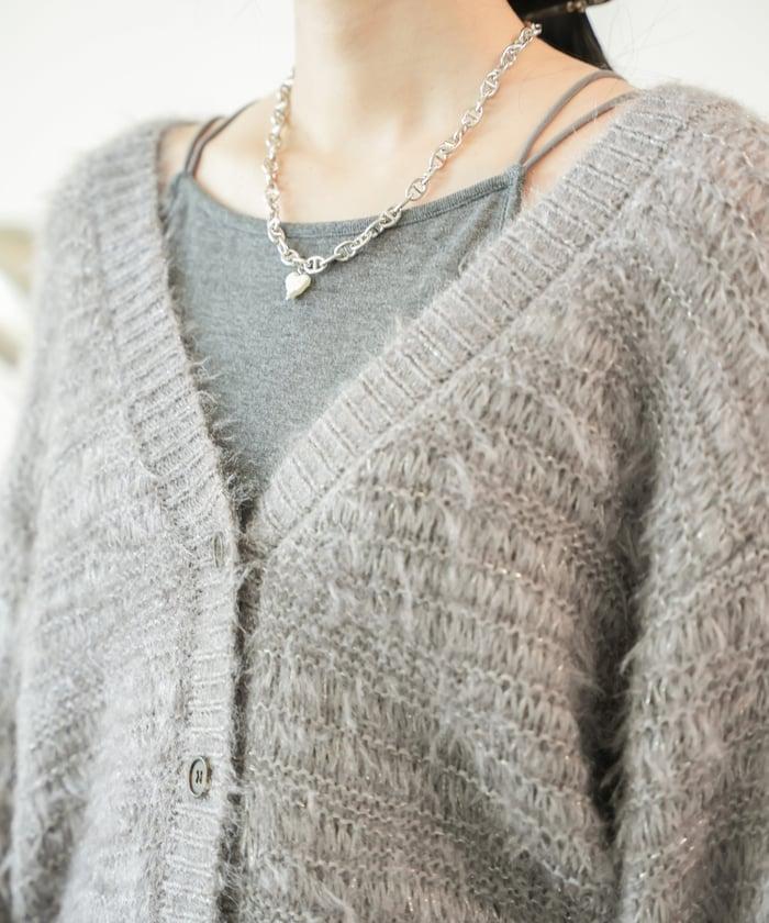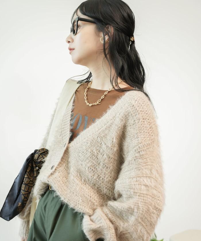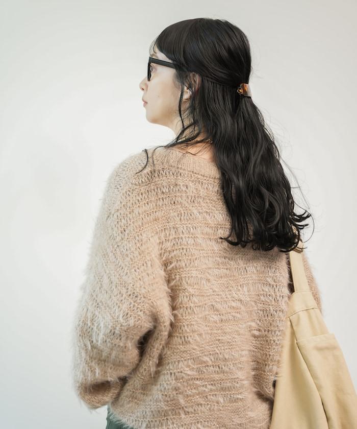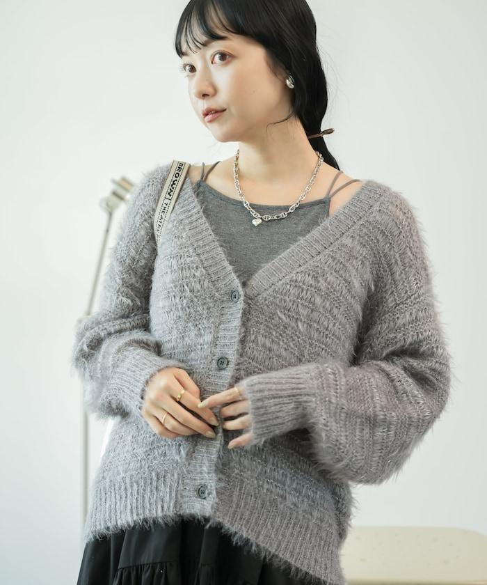 這款女性化開襟羊毛衫採用透明針織面料,手感柔軟蓬鬆。