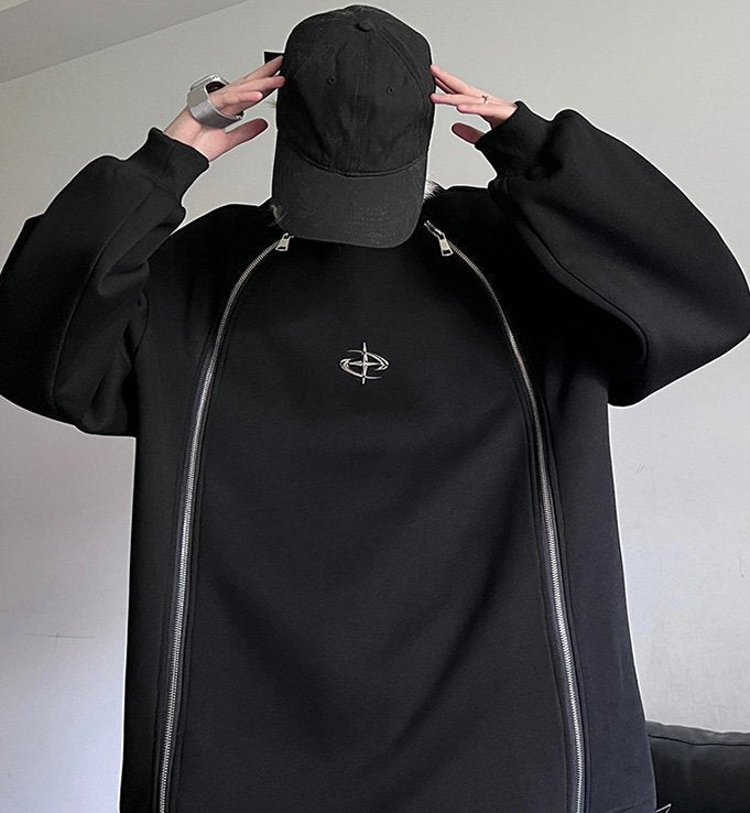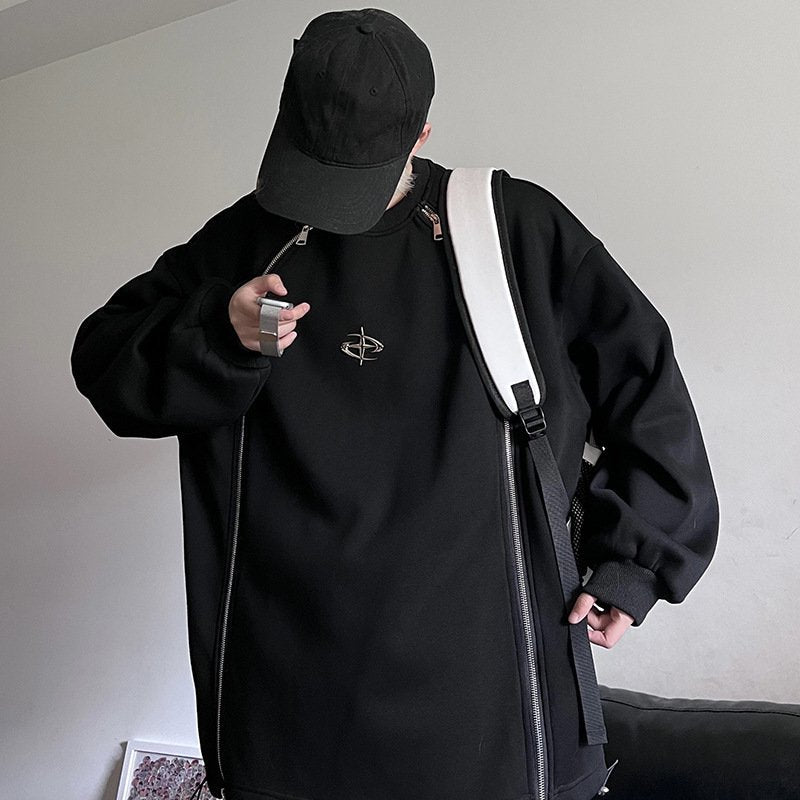 雙側拉鍊 Y2K 衛衣上衣 黑色 (CT7057BK)