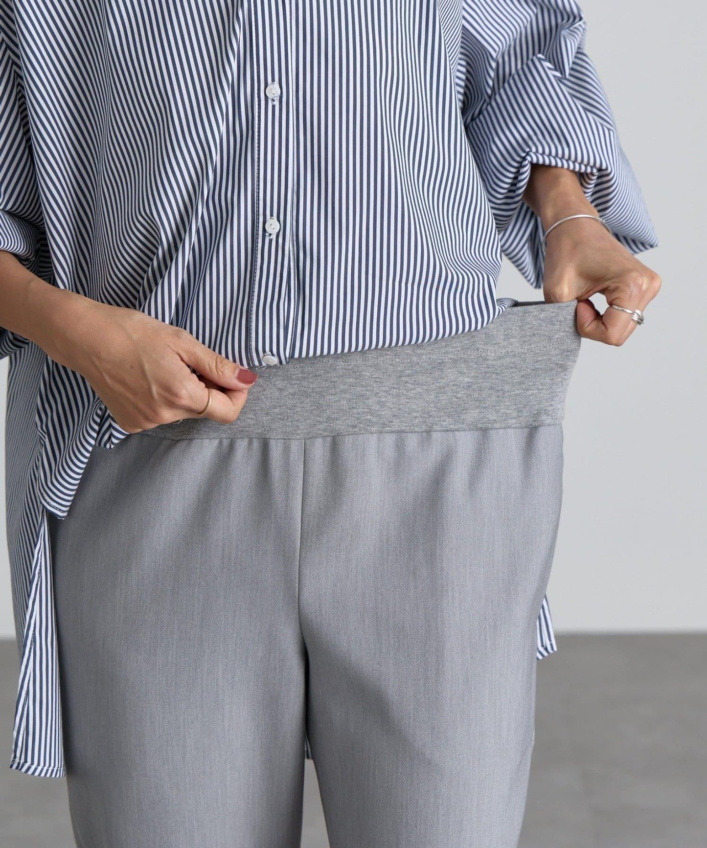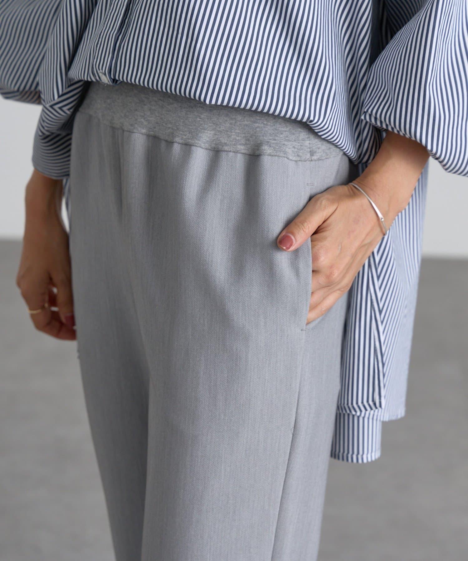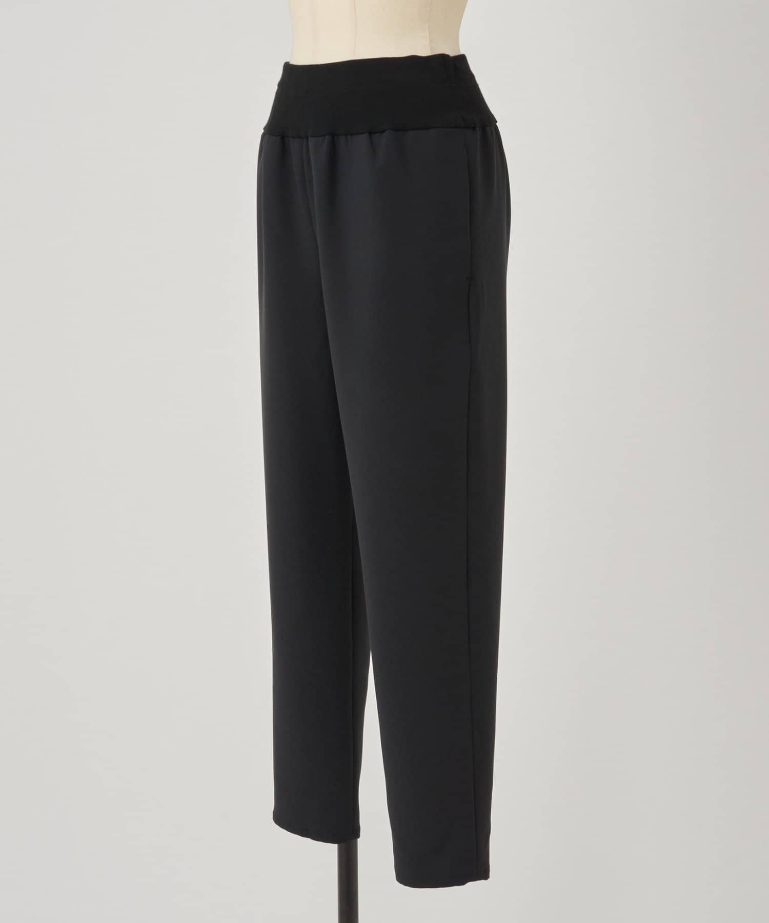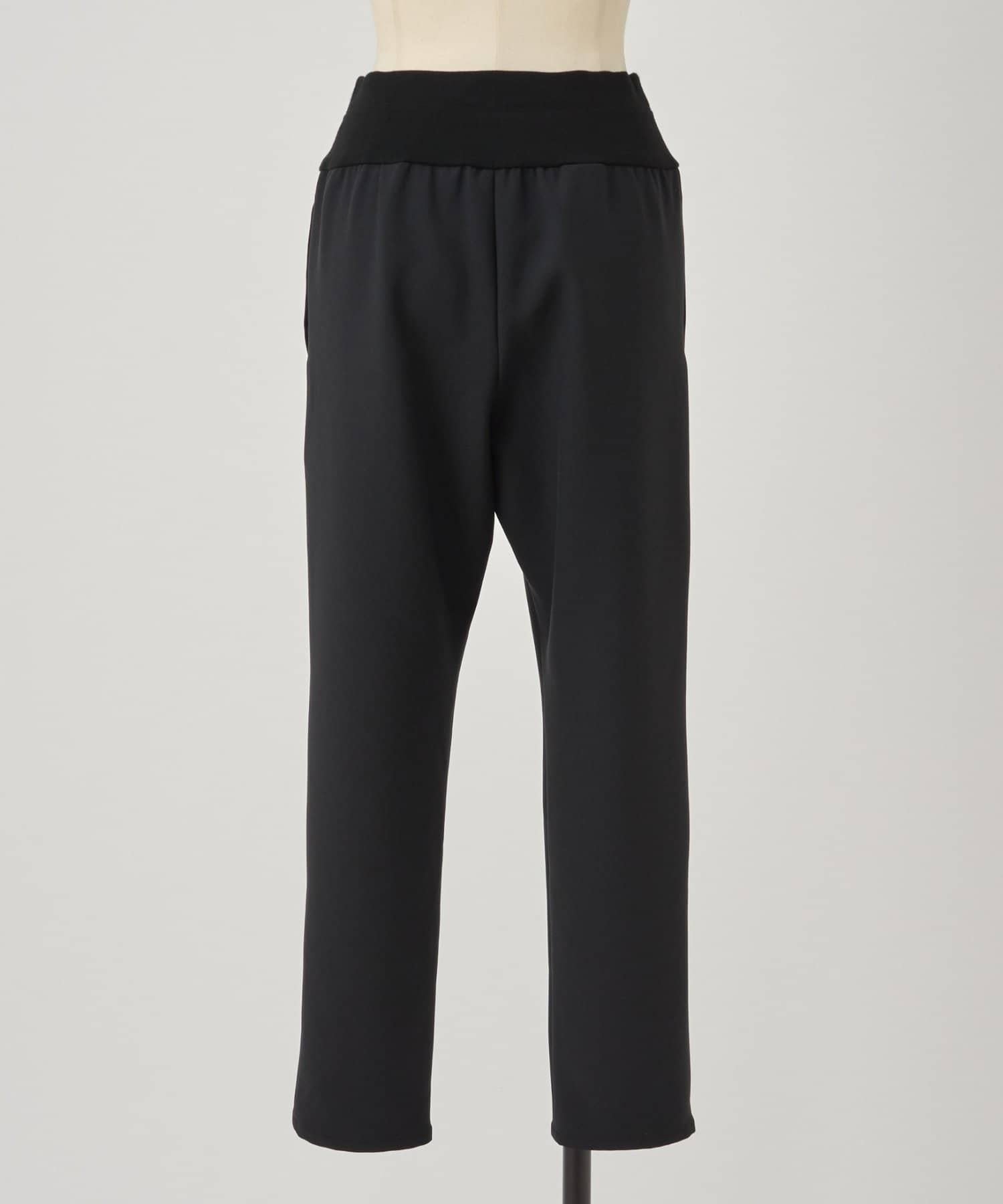 雙層交叉腰部織帶修身長褲