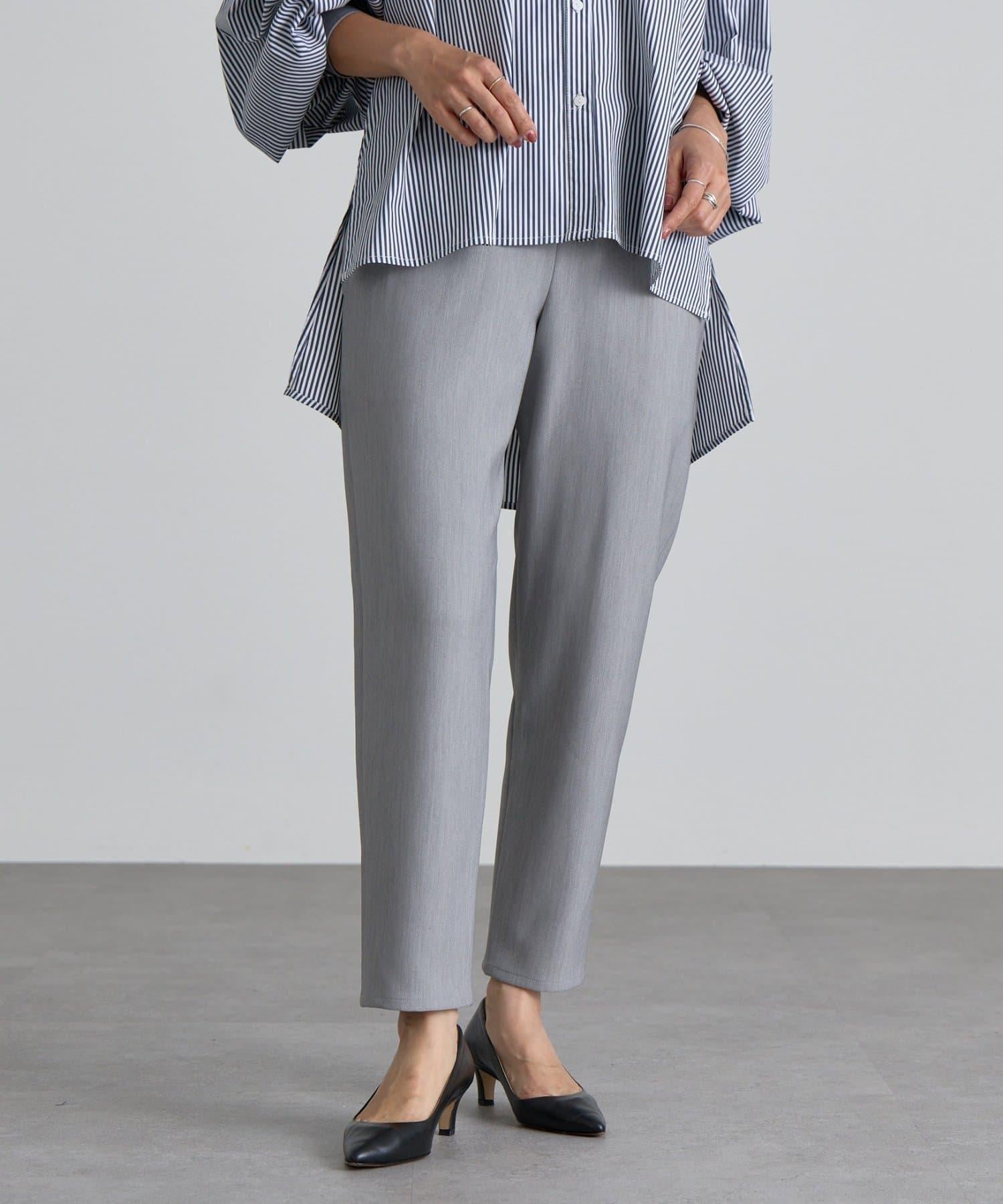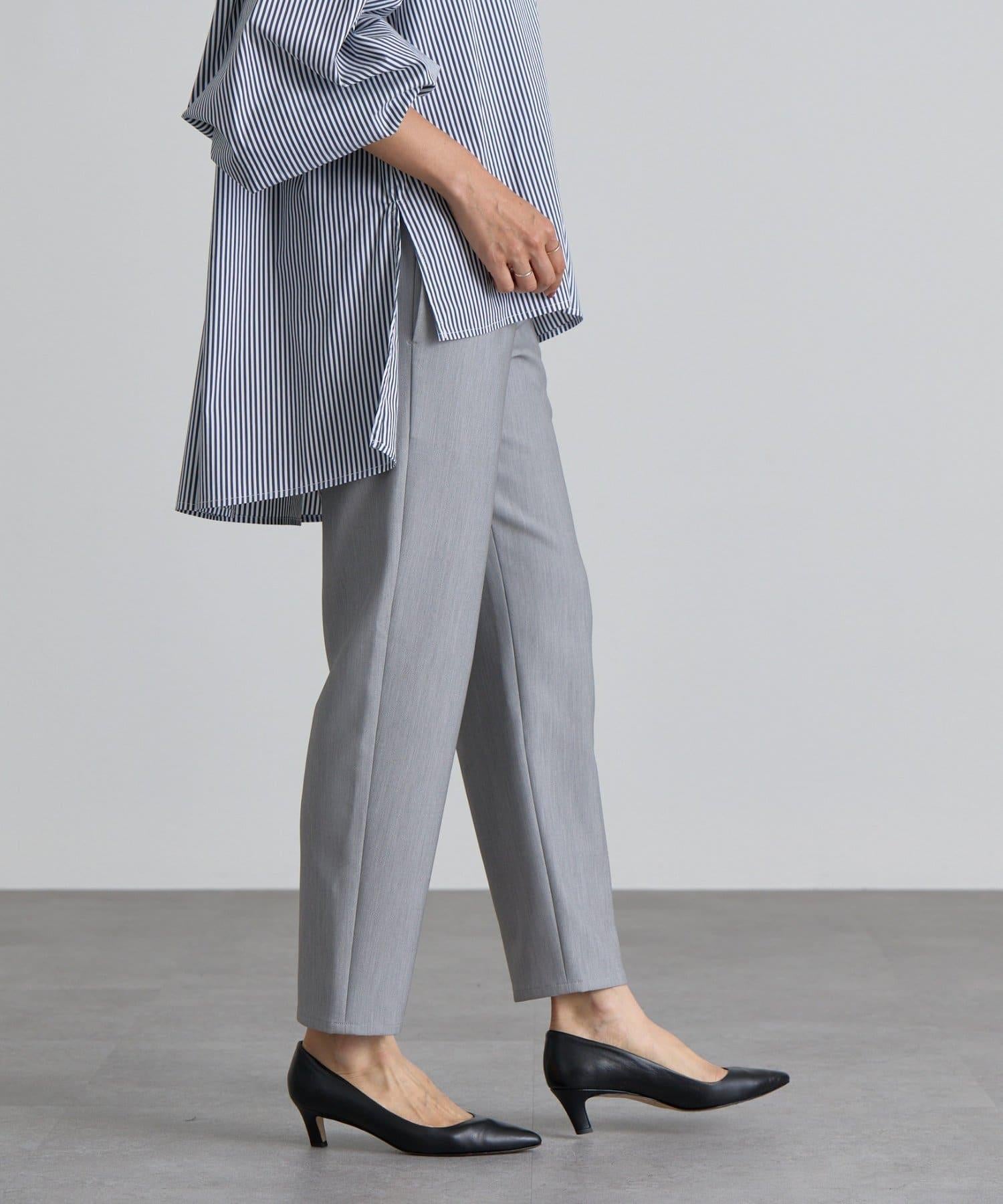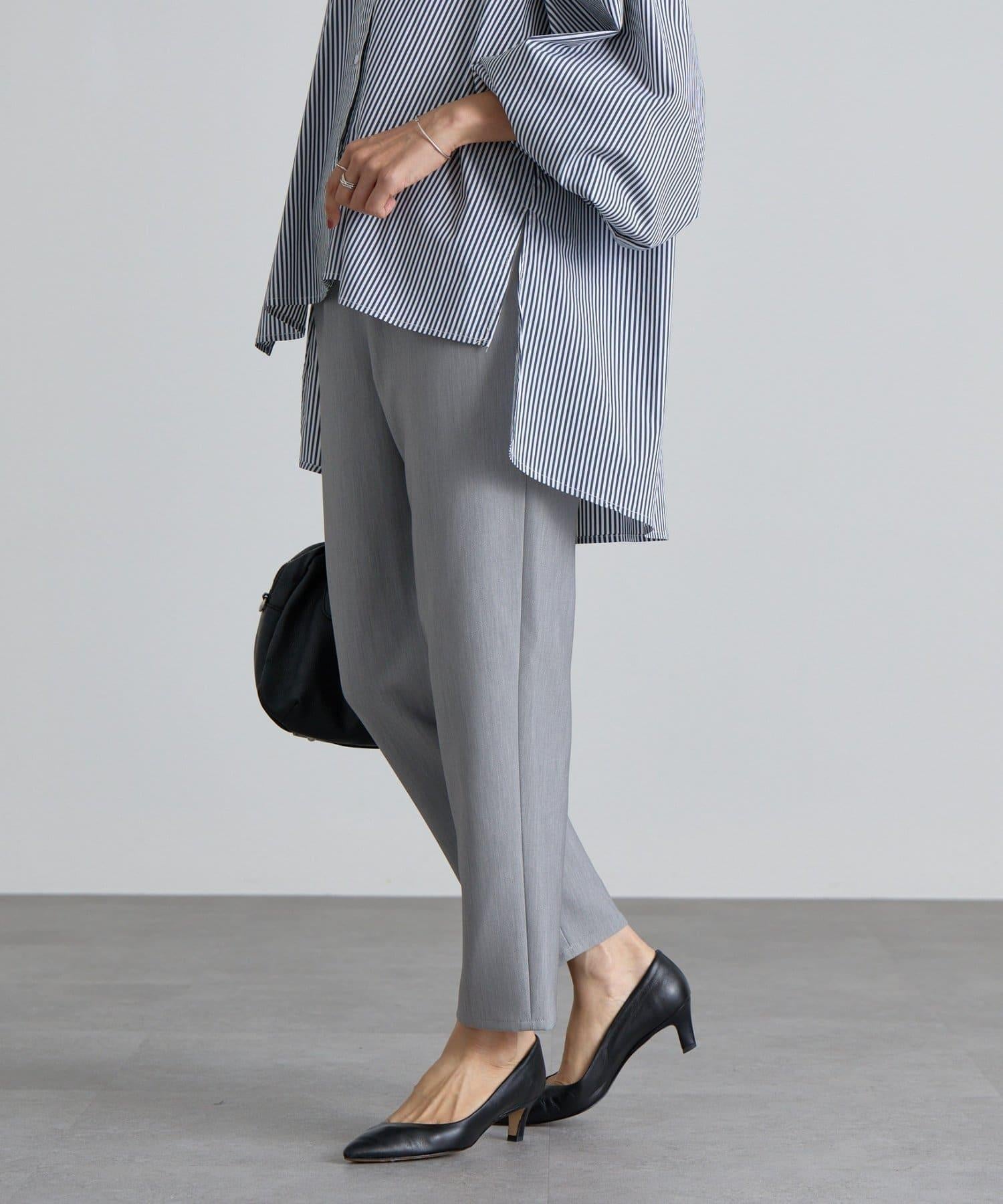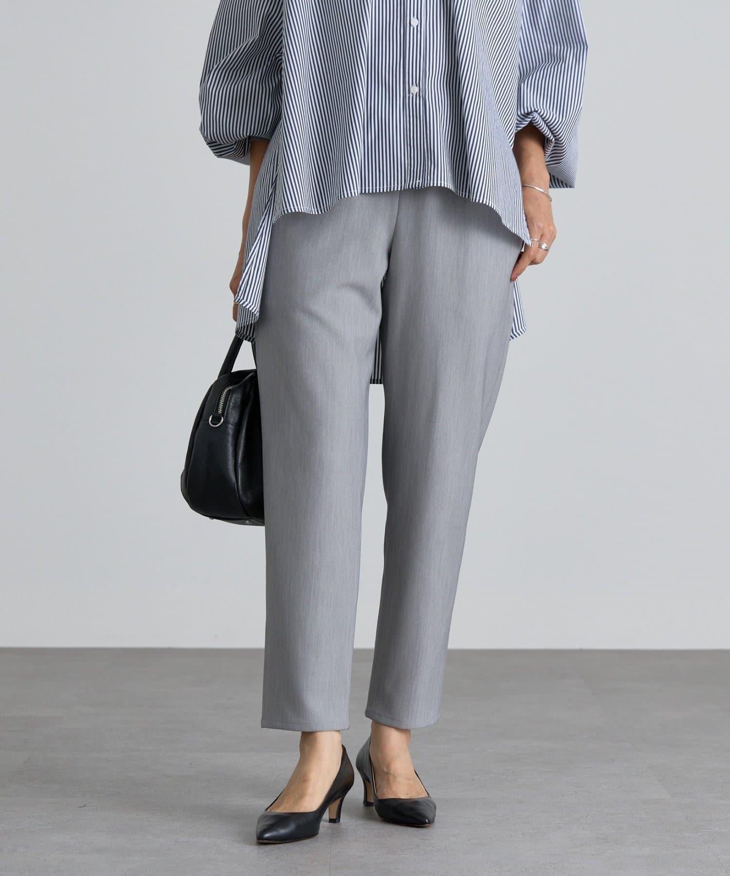 雙層交叉腰部織帶修身長褲