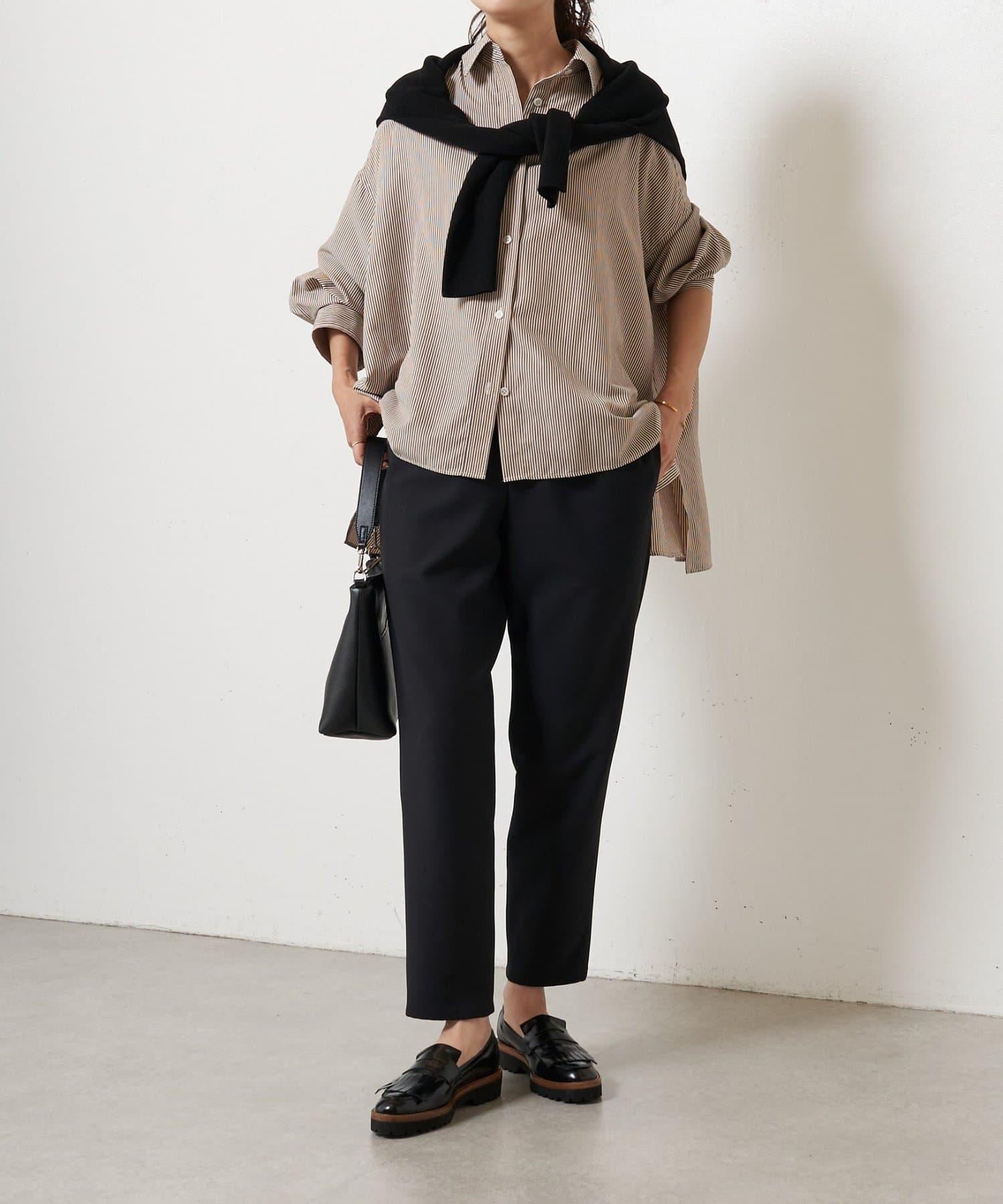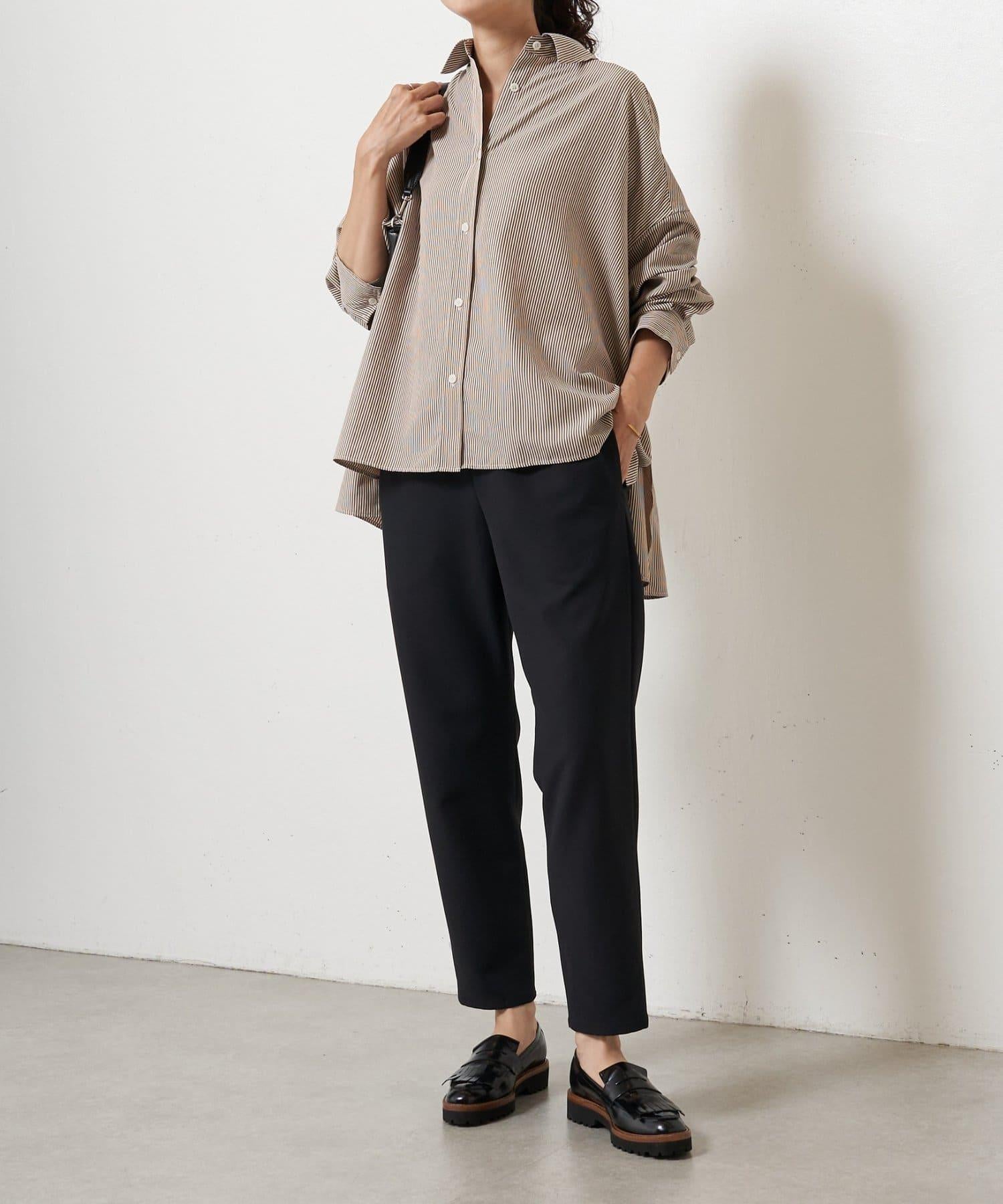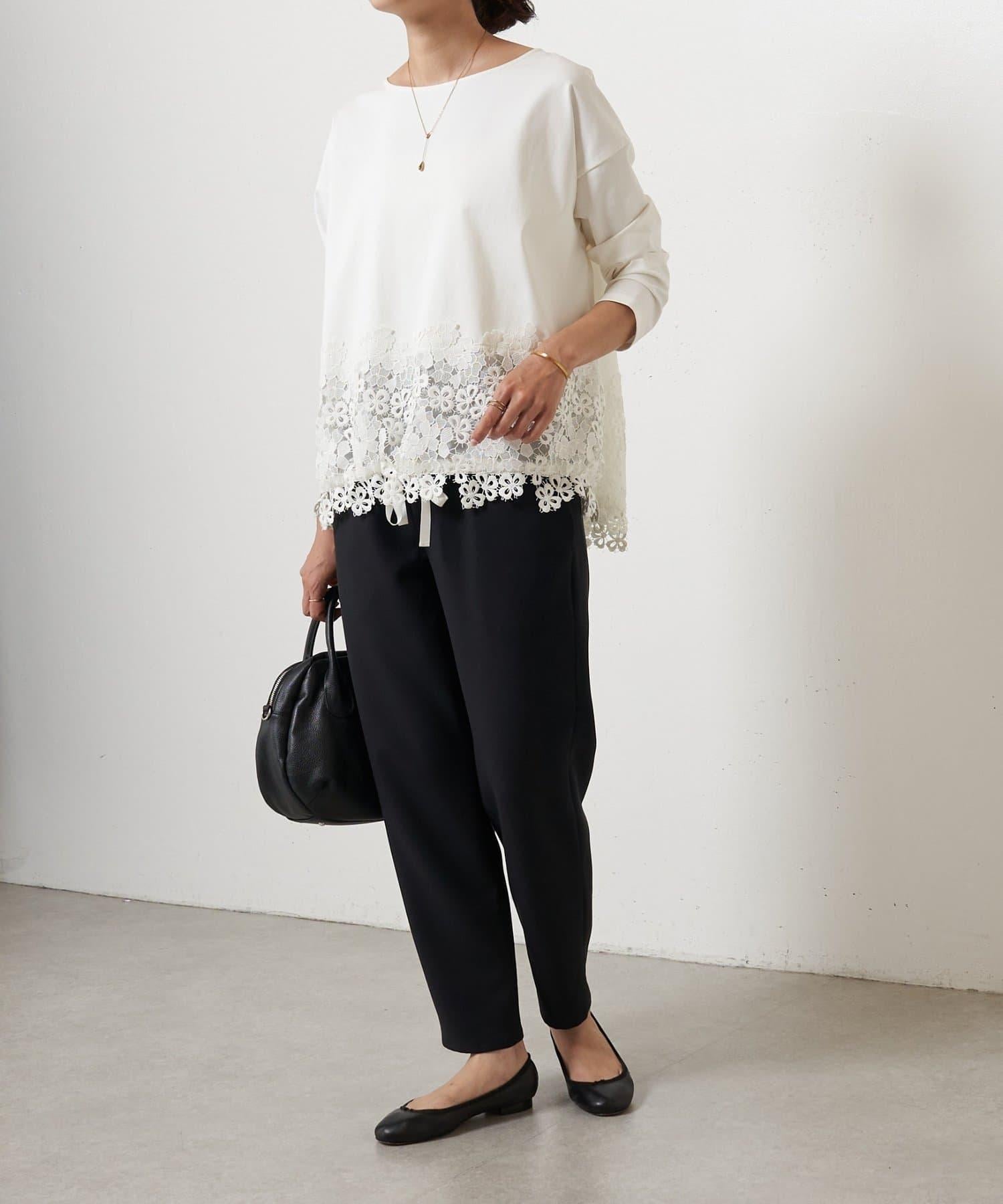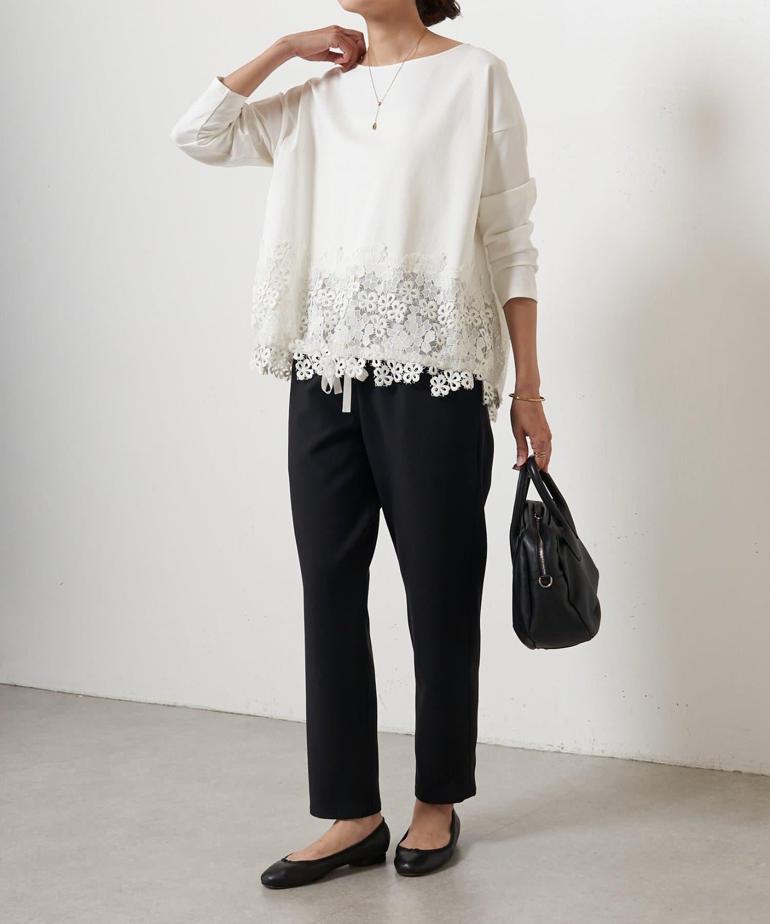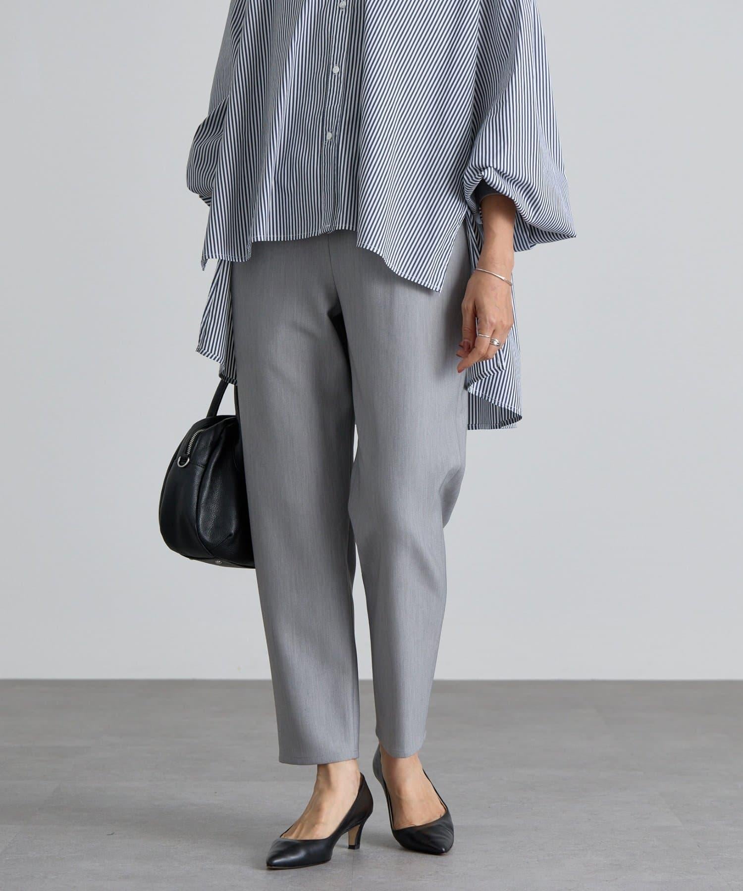 雙層交叉腰部織帶修身長褲
