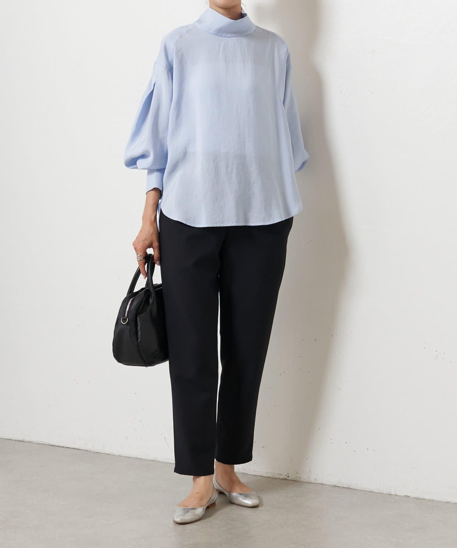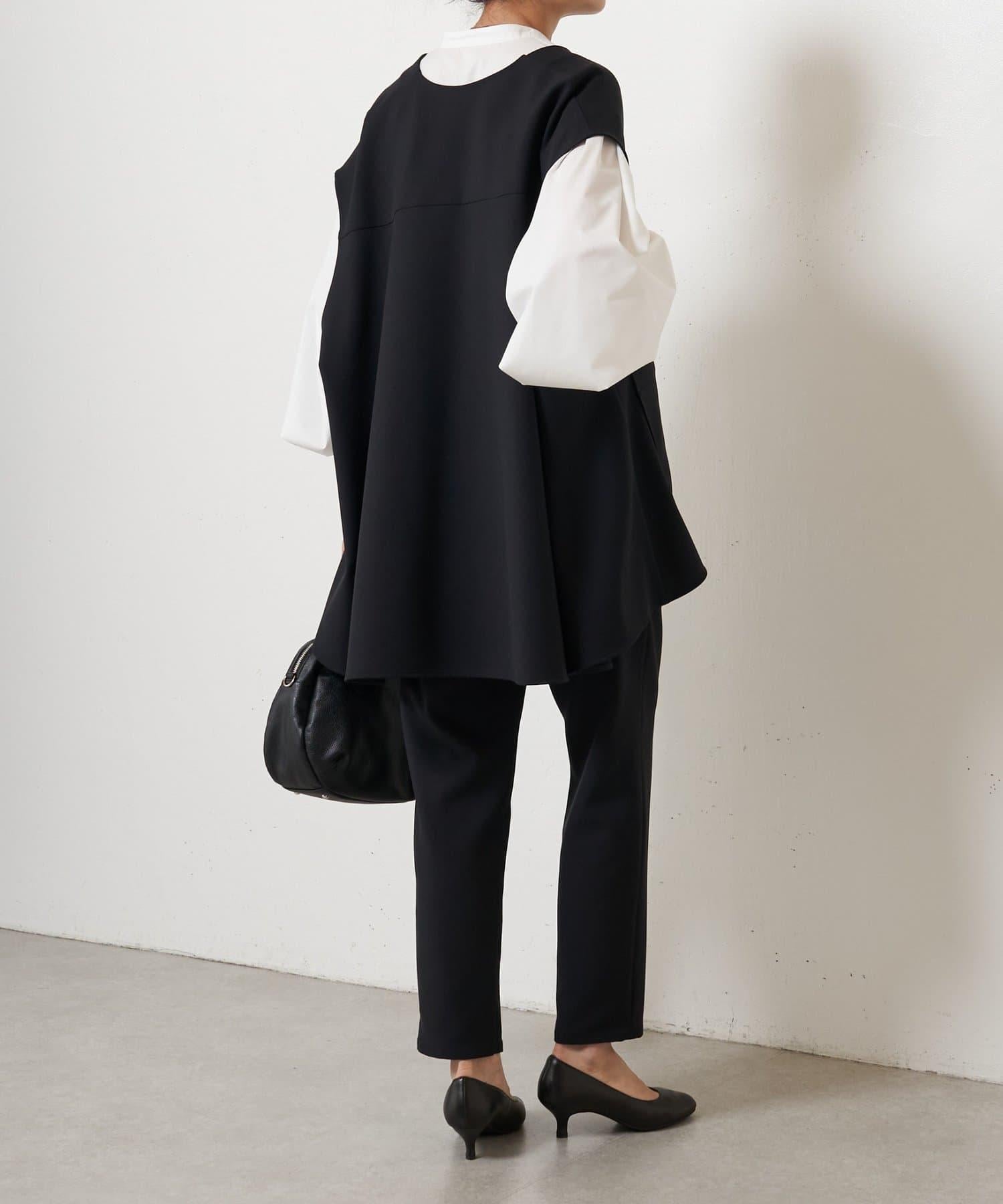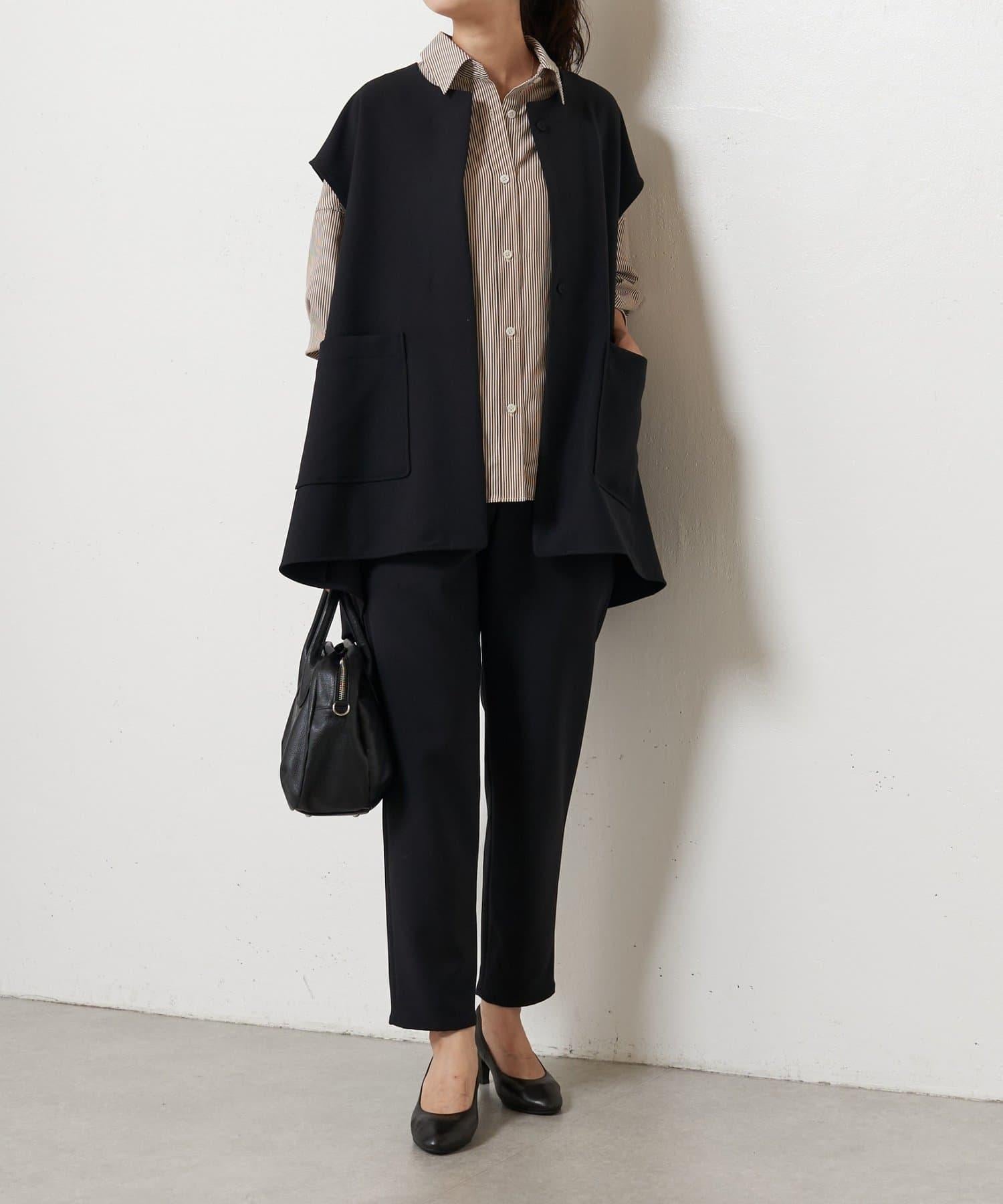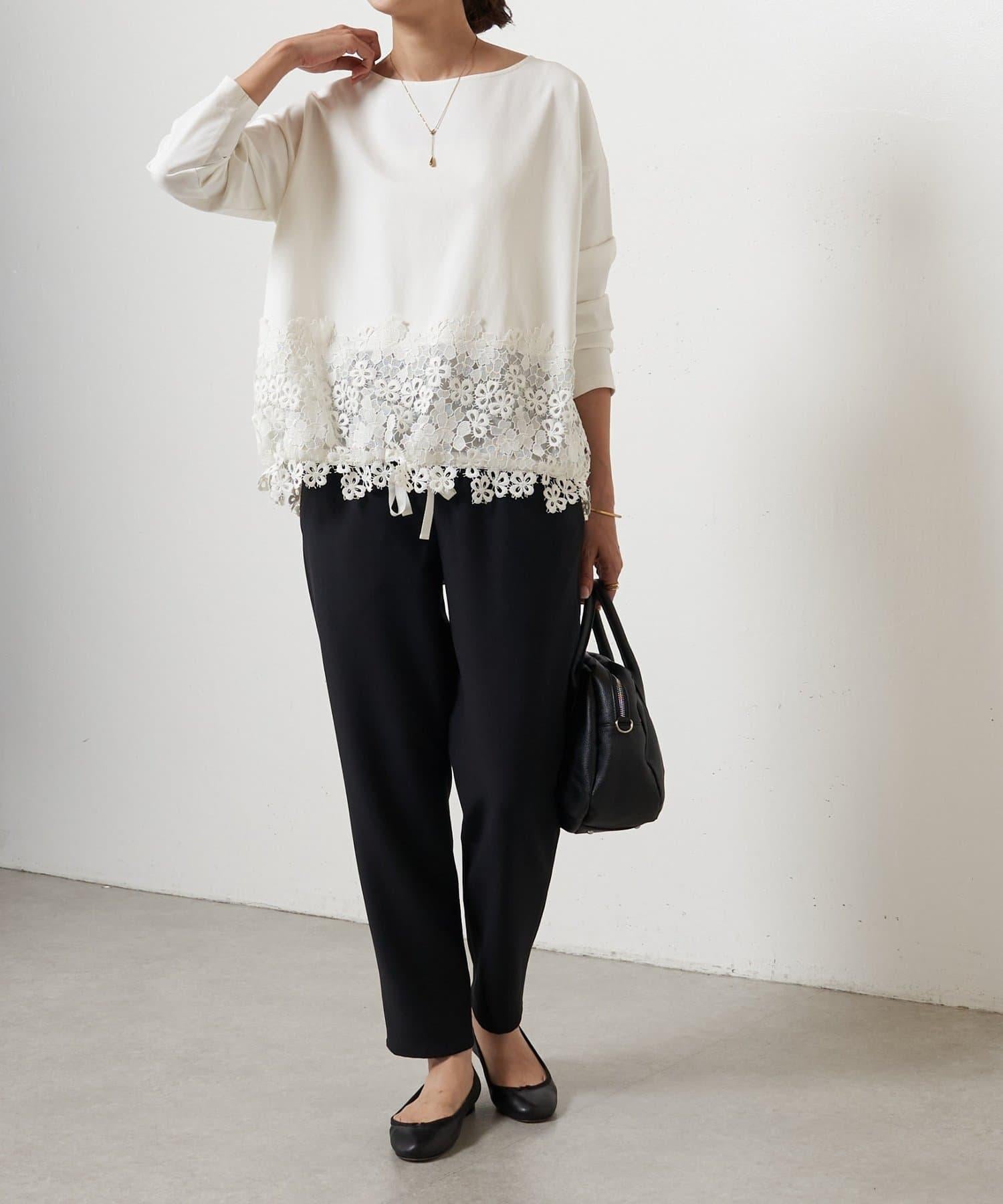 雙層交叉腰部織帶修身長褲