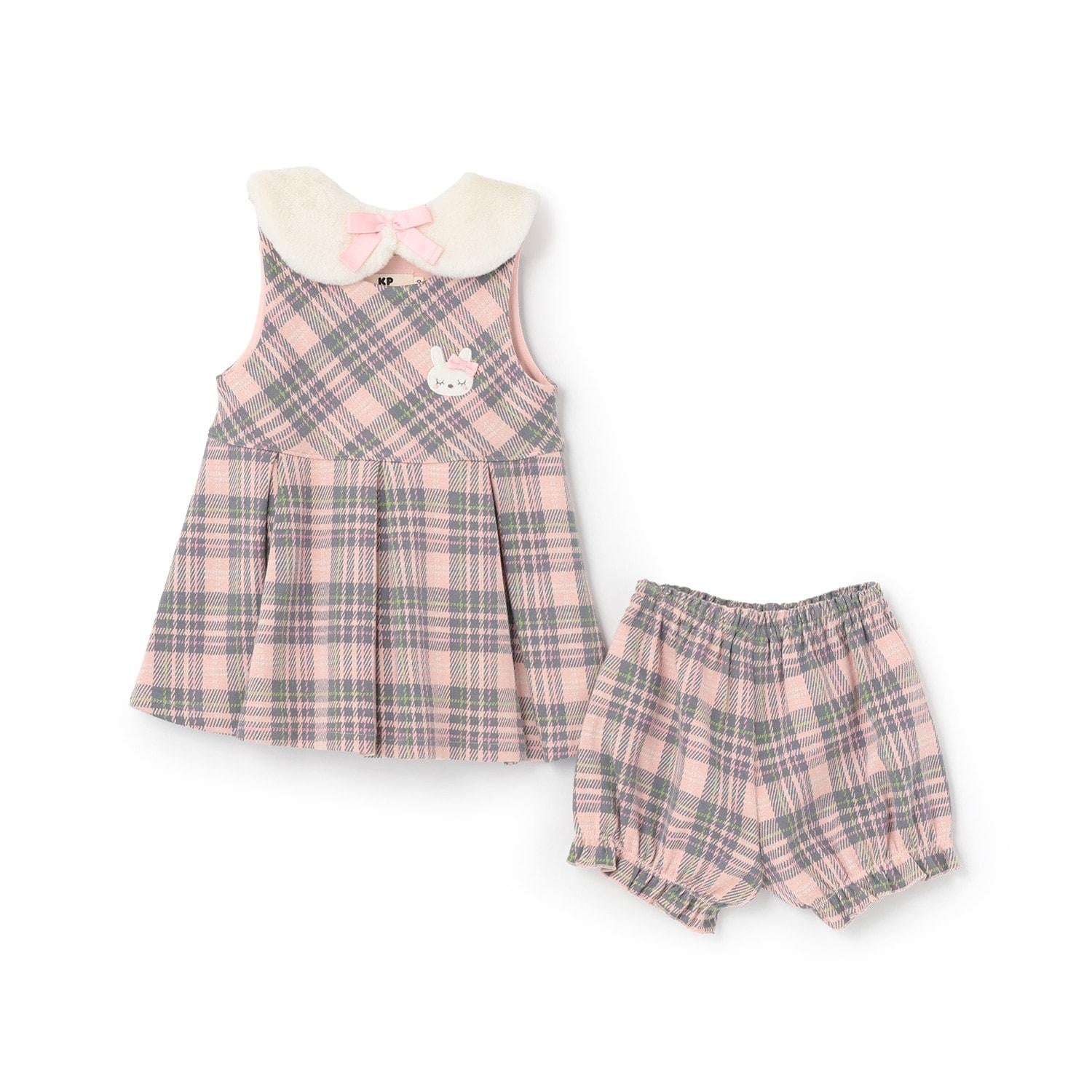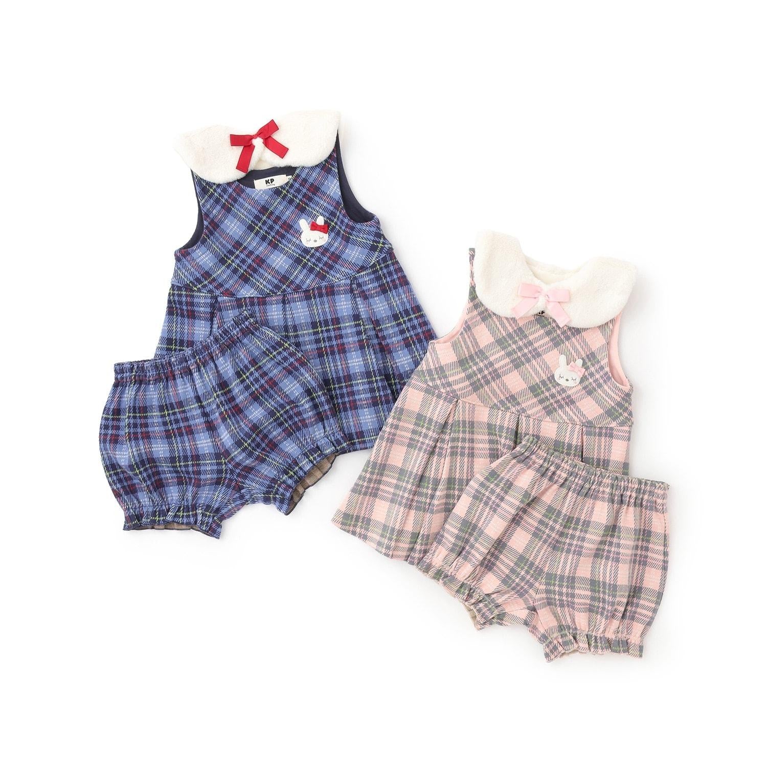 雙層提花格紋嬰兒套裝【附圍巾】
