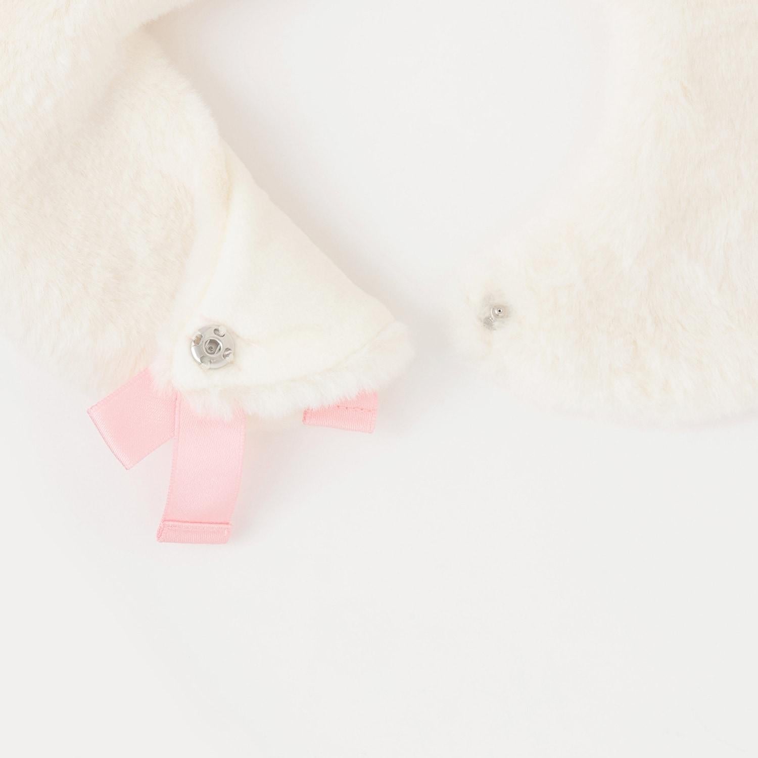 帶有盒狀褶皺的外衣和開襟褲,以及人造毛皮的裙邊,更顯精緻。
