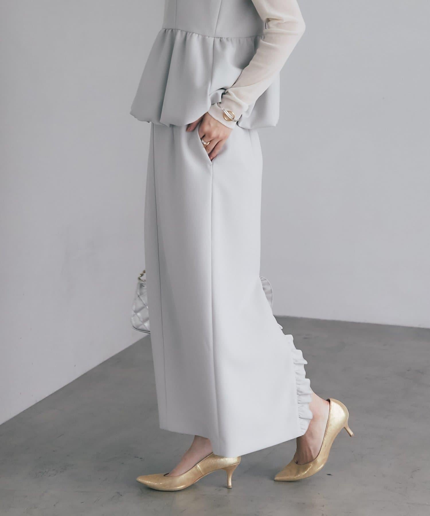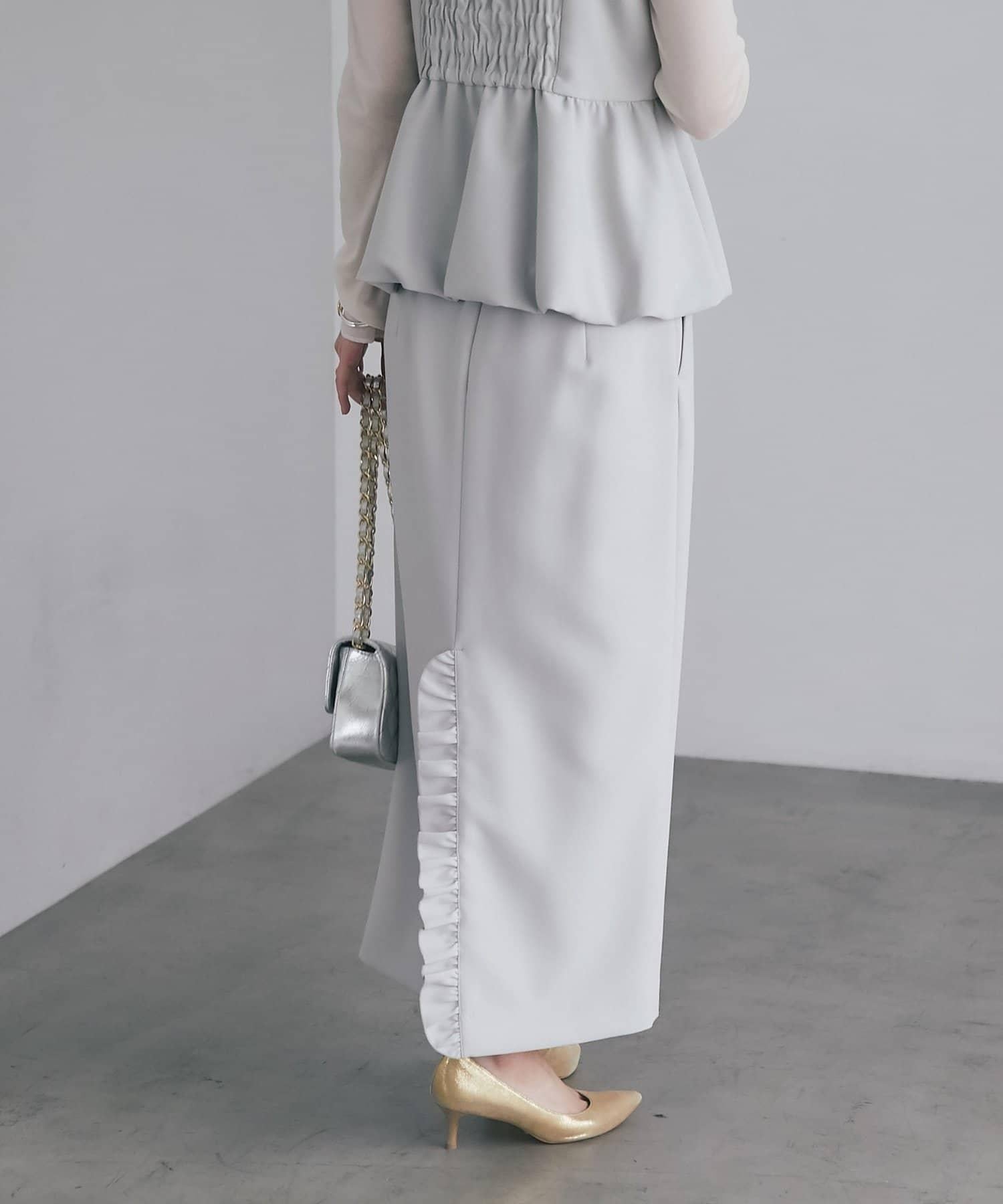 華麗的設計,背部開衩處有荷葉邊。