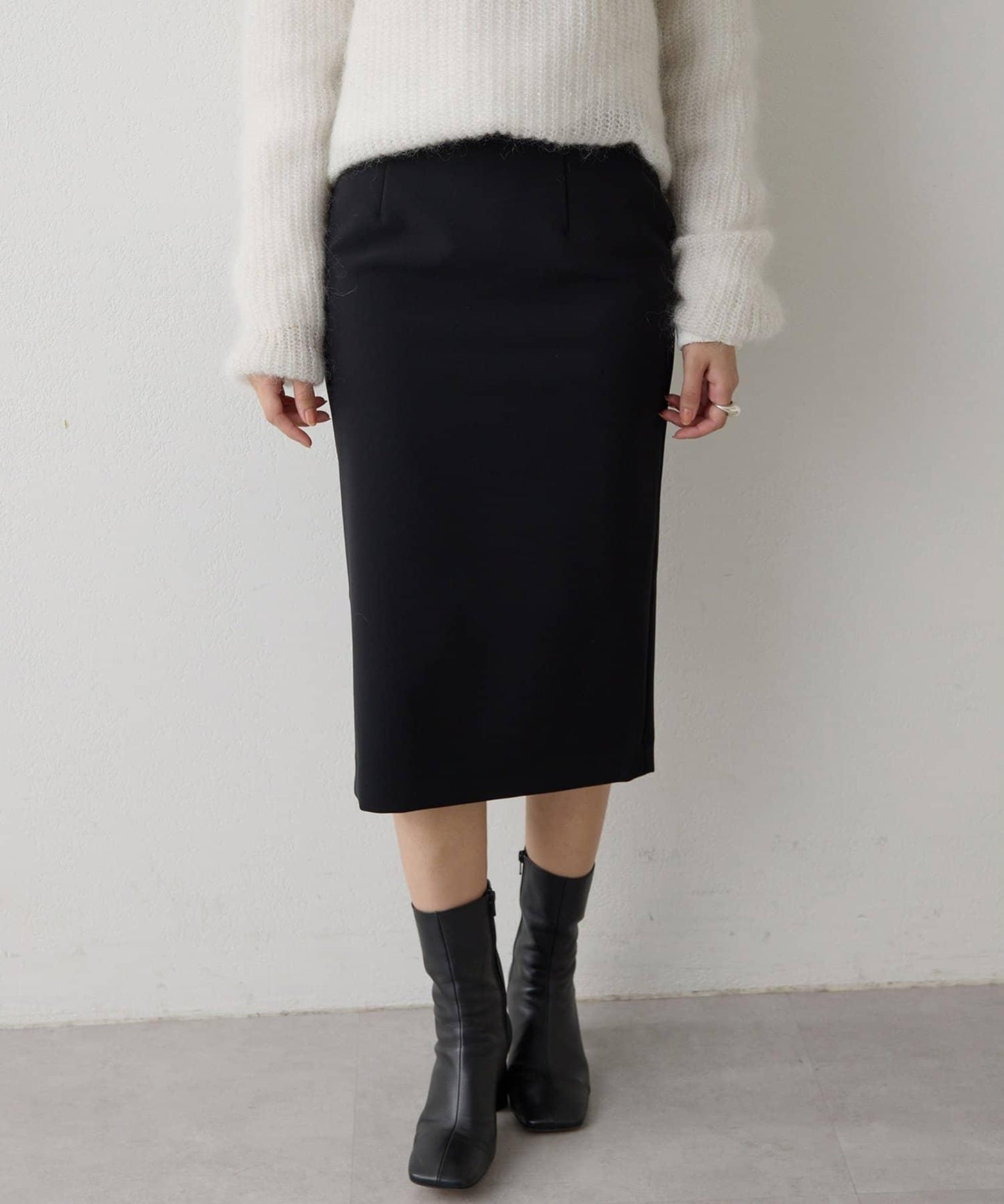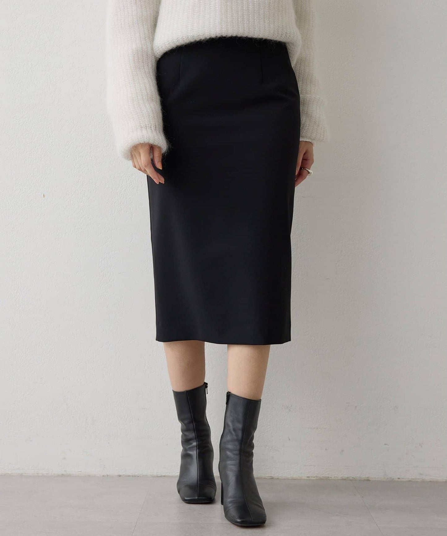 簡約的高腰設計加上背部開衩,讓裙子散發出微妙的魅力。