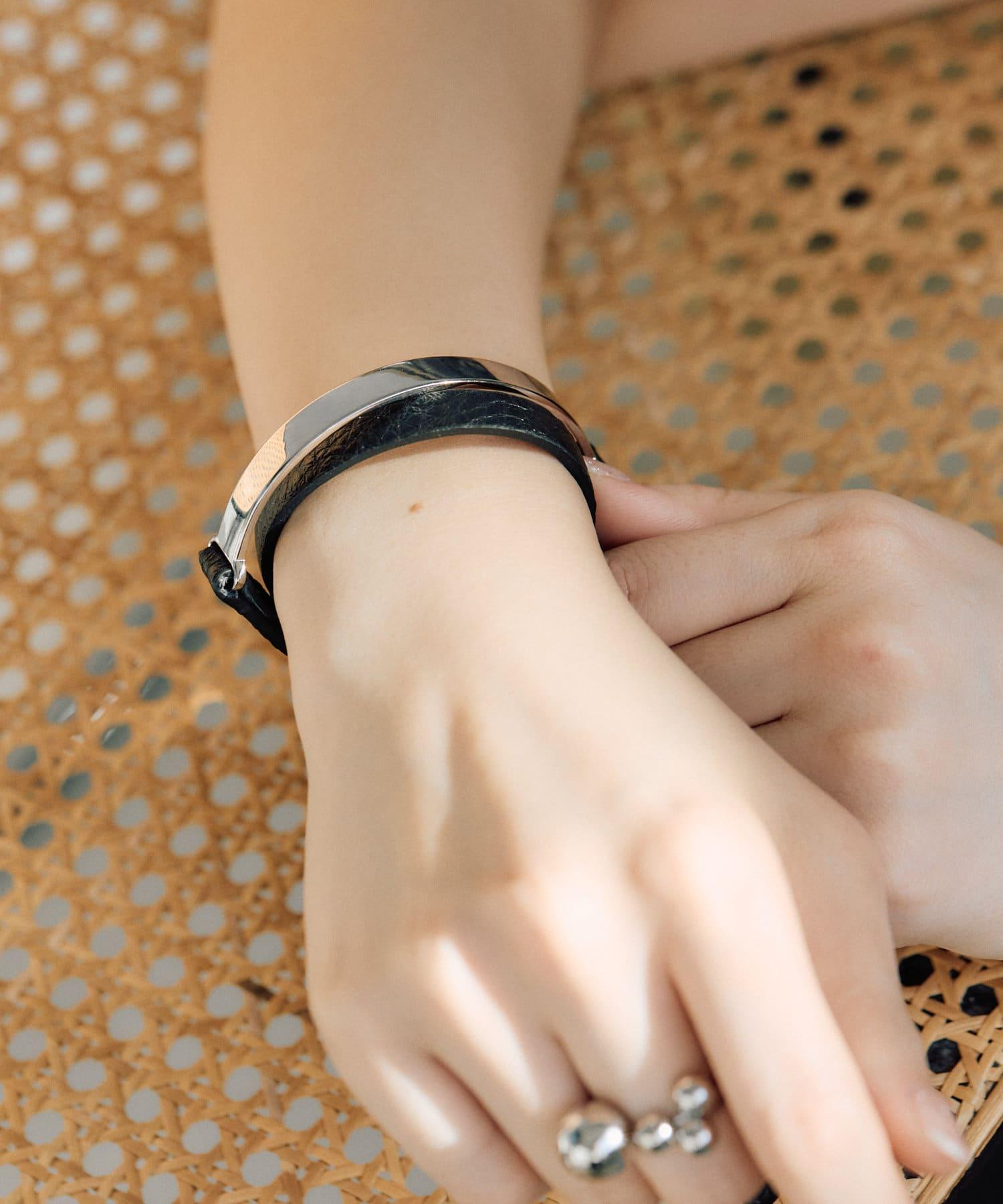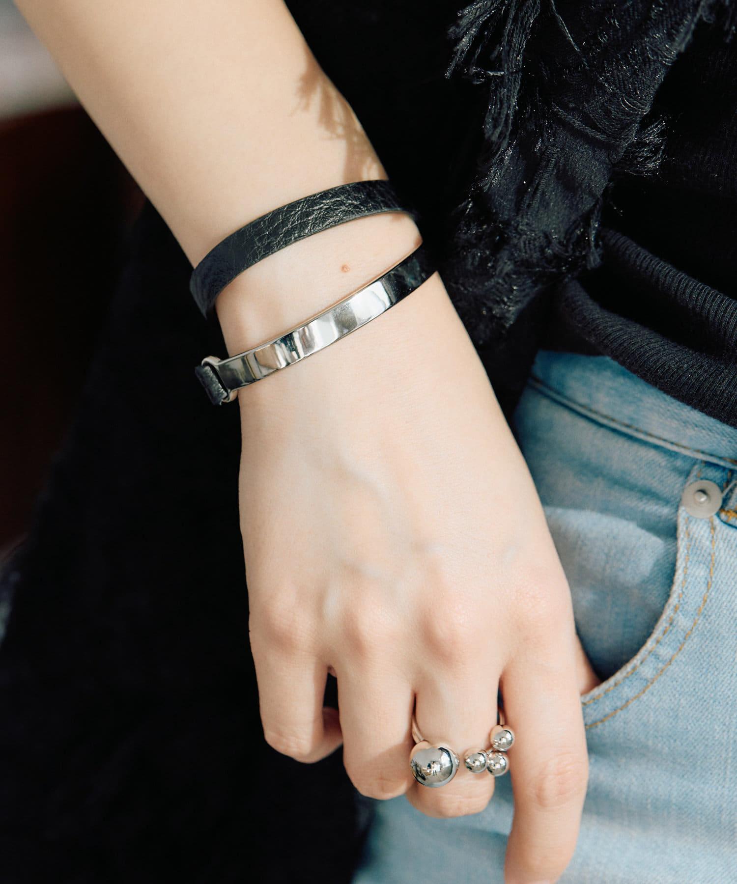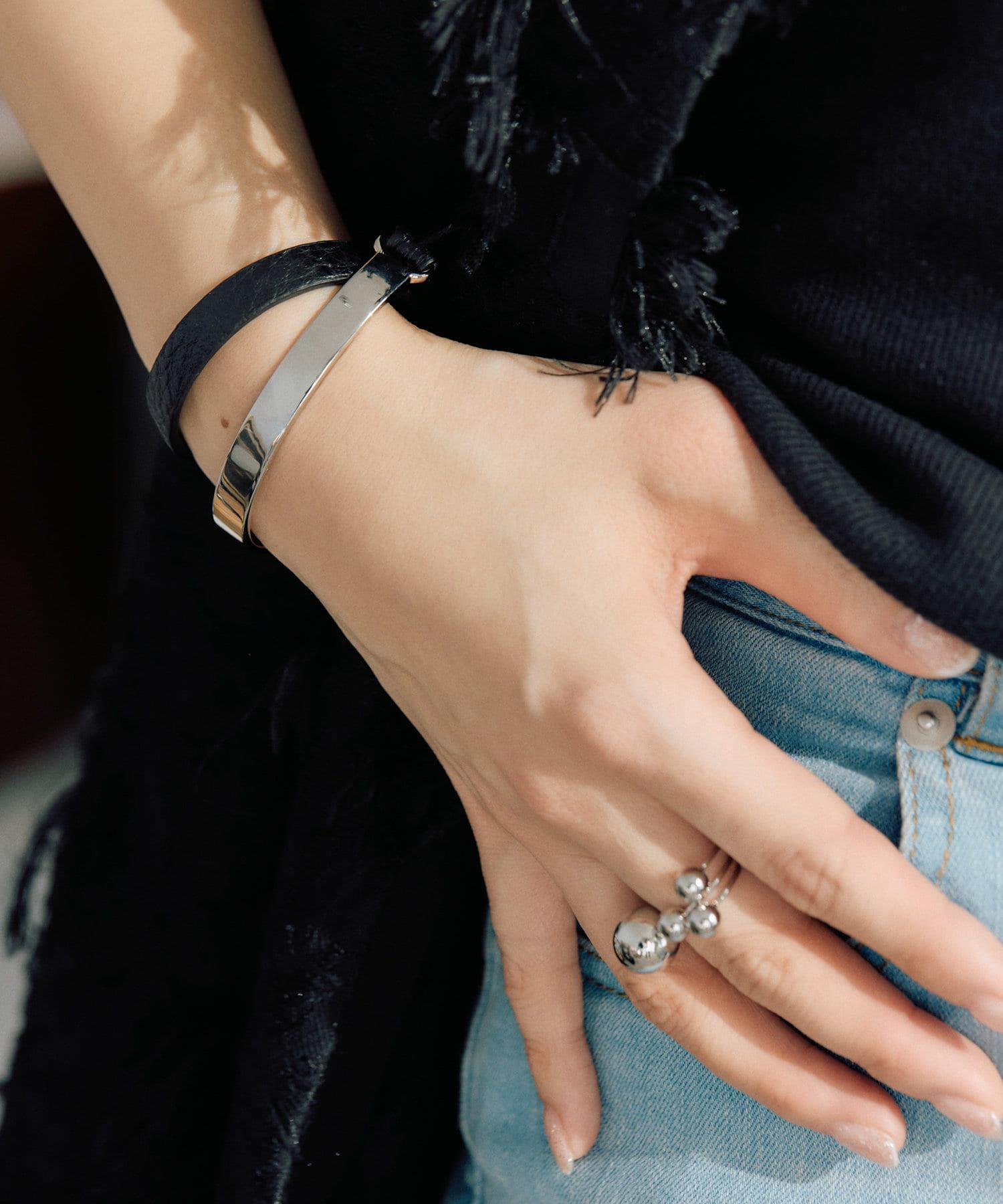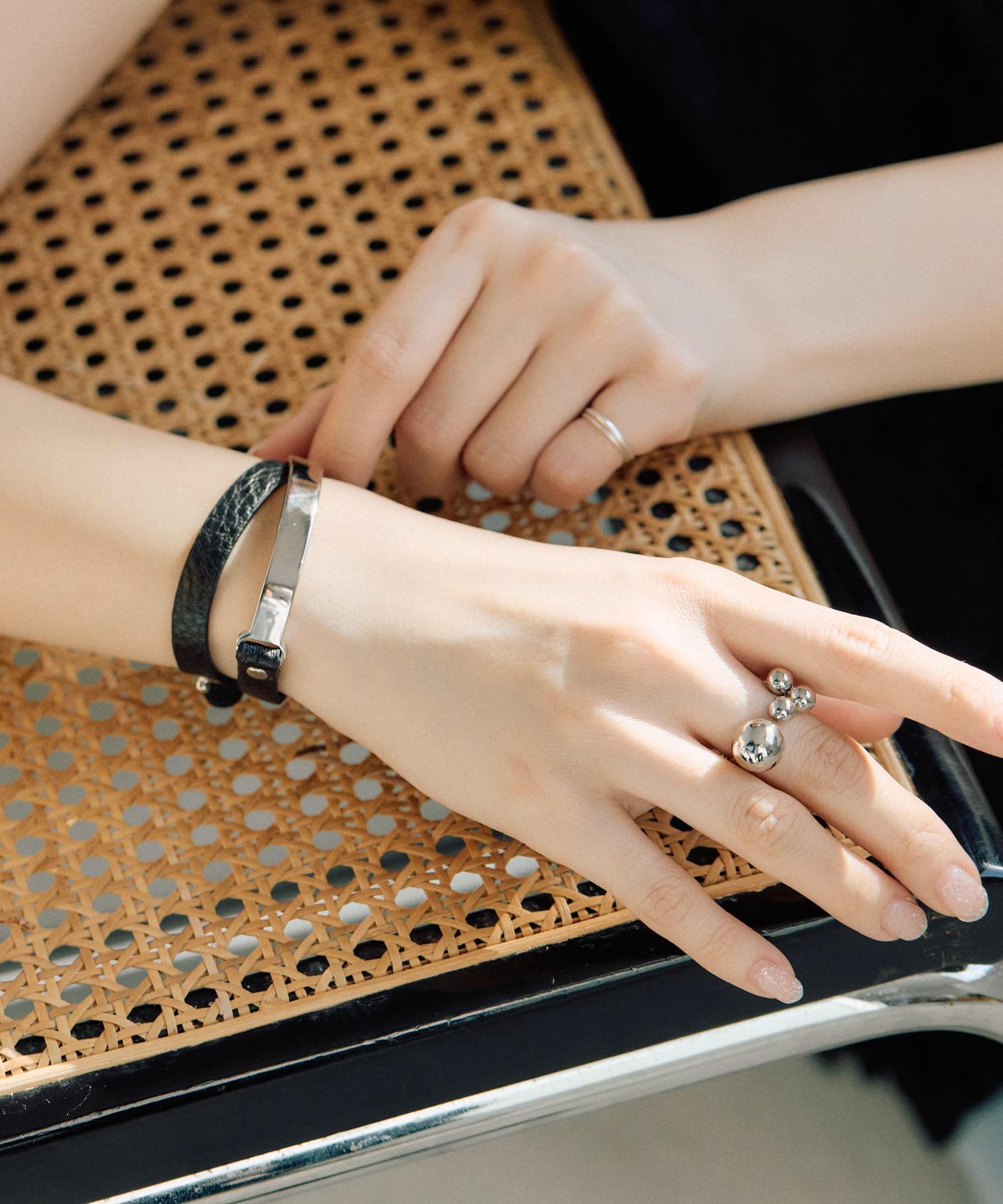 金屬部件與皮革的結合給人簡約而精緻的印象。