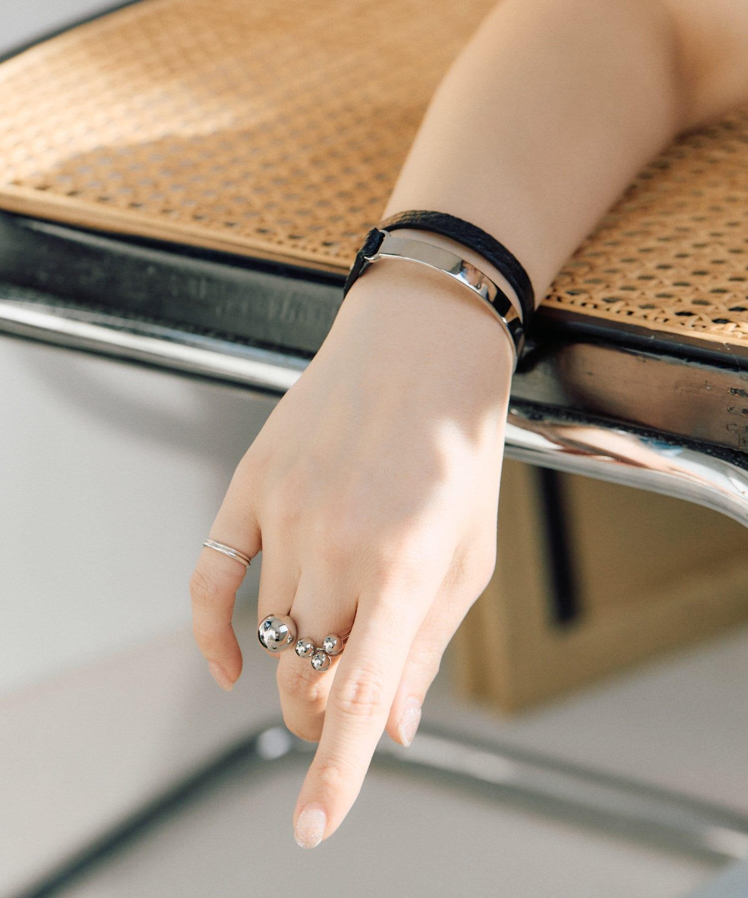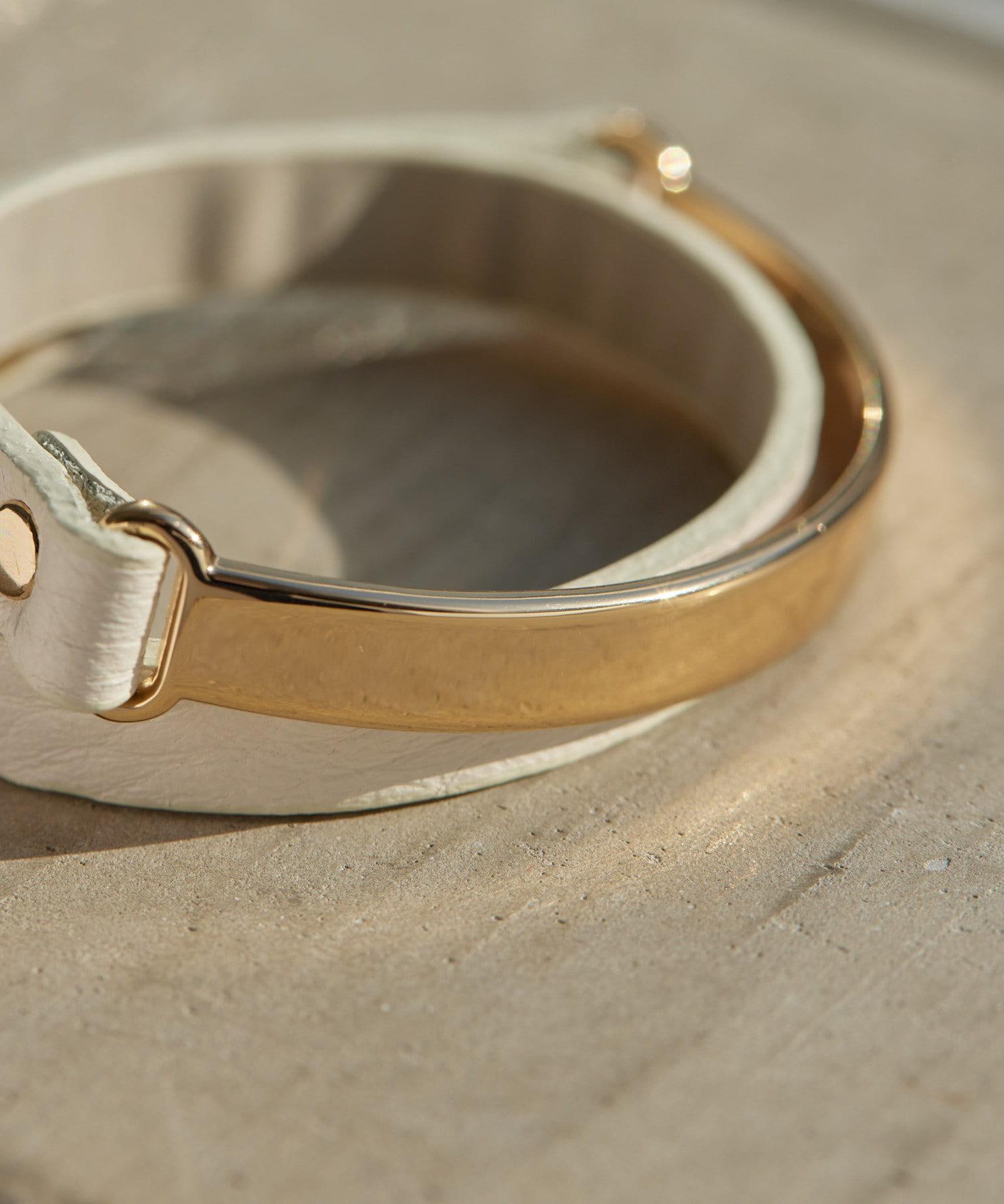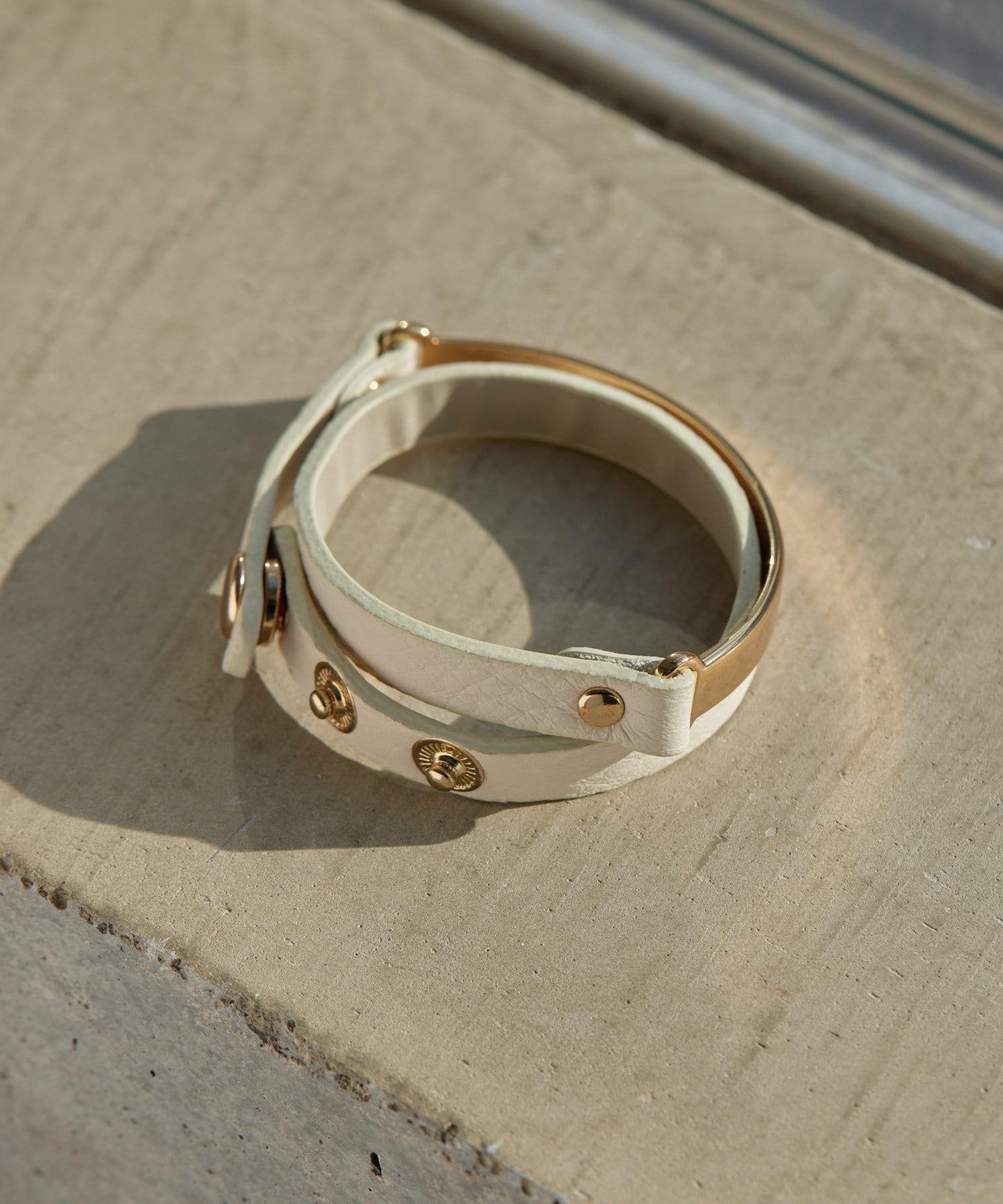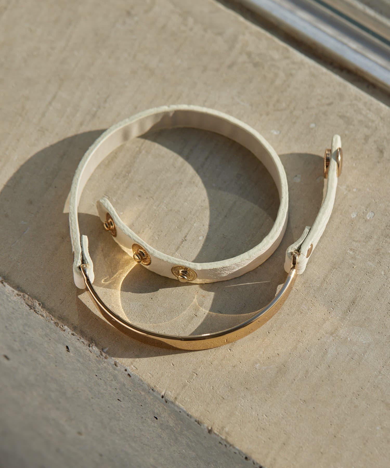 金屬部件與皮革的結合給人簡約而精緻的印象。