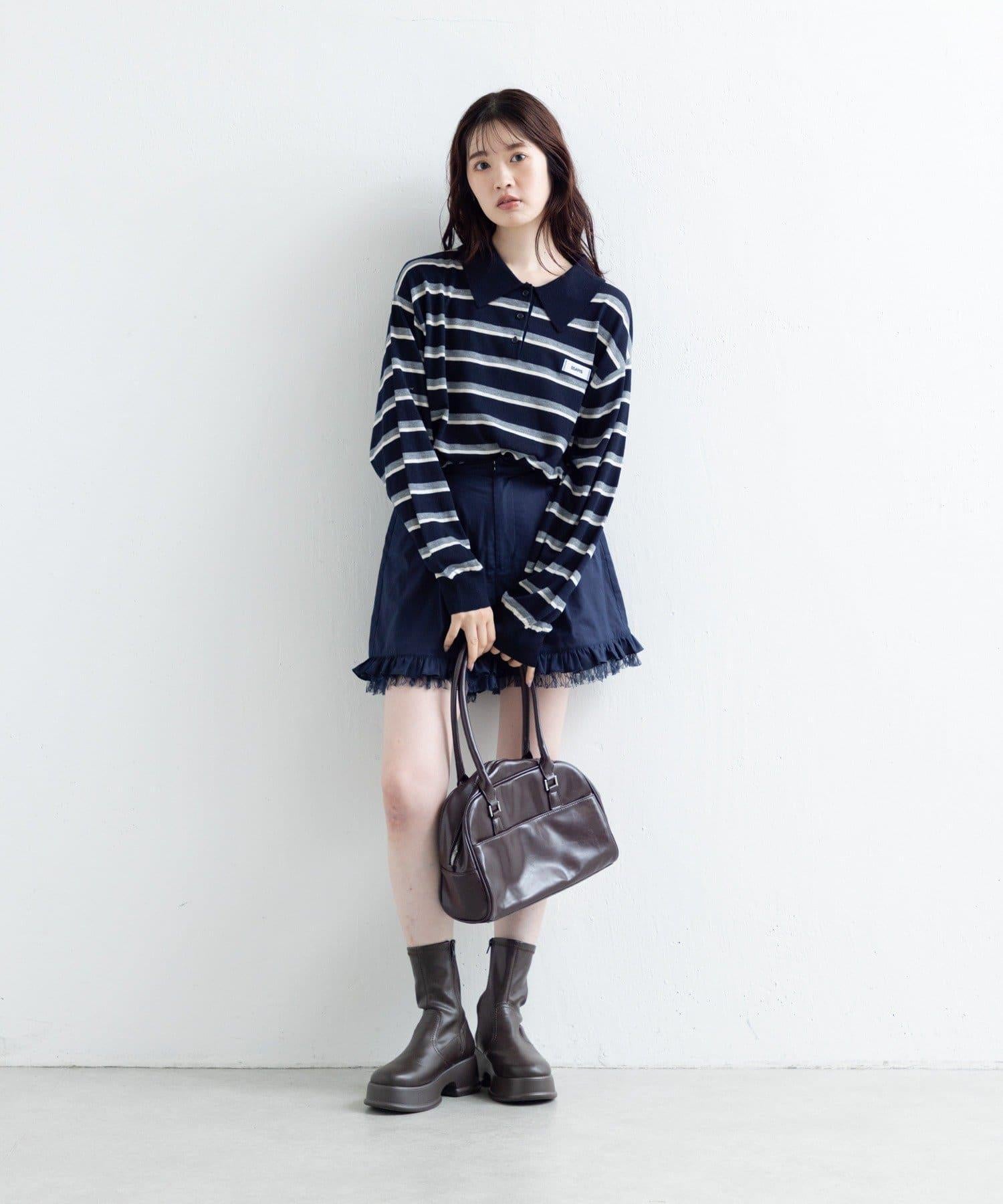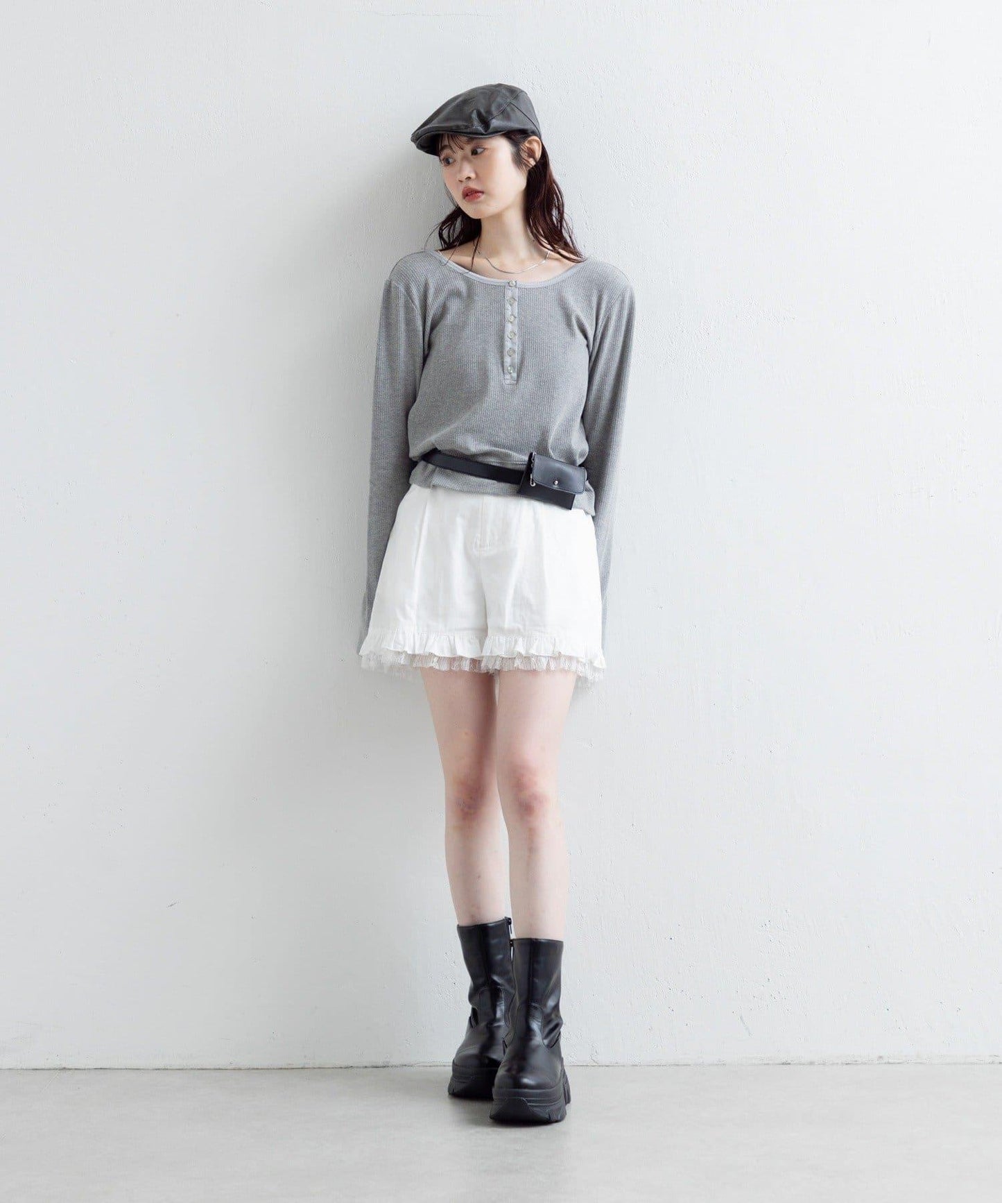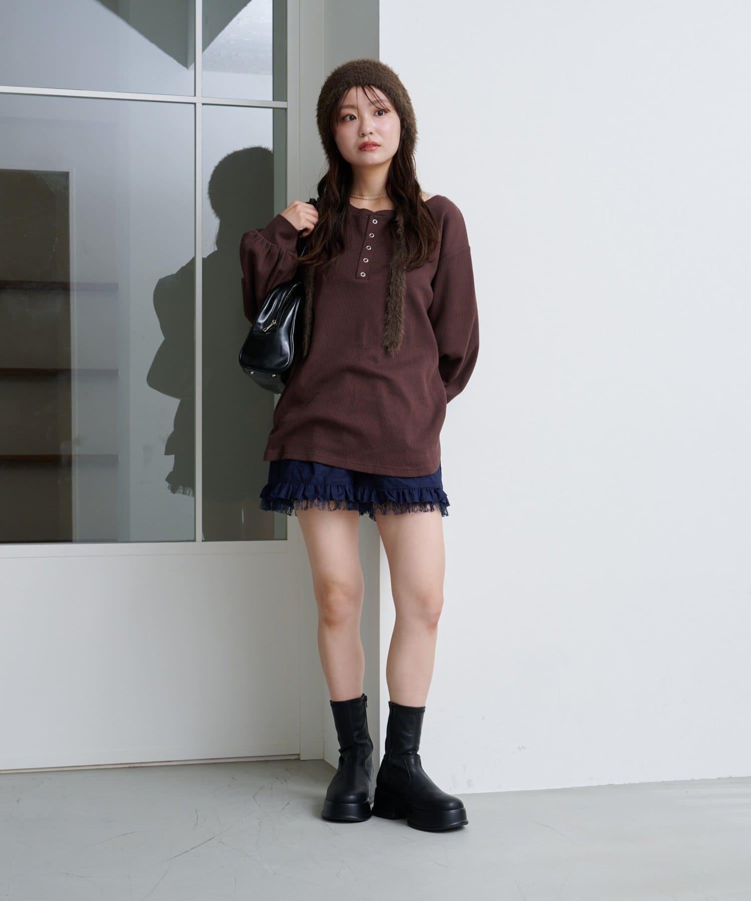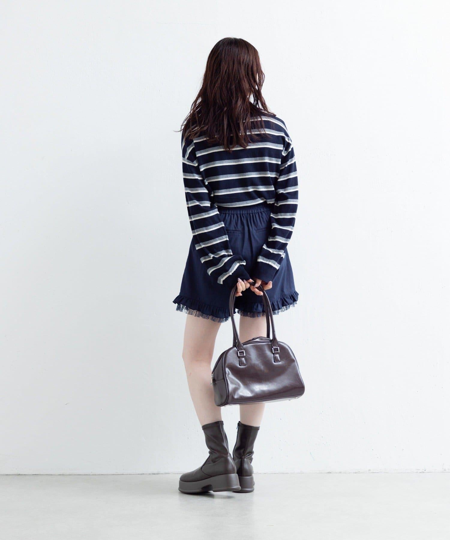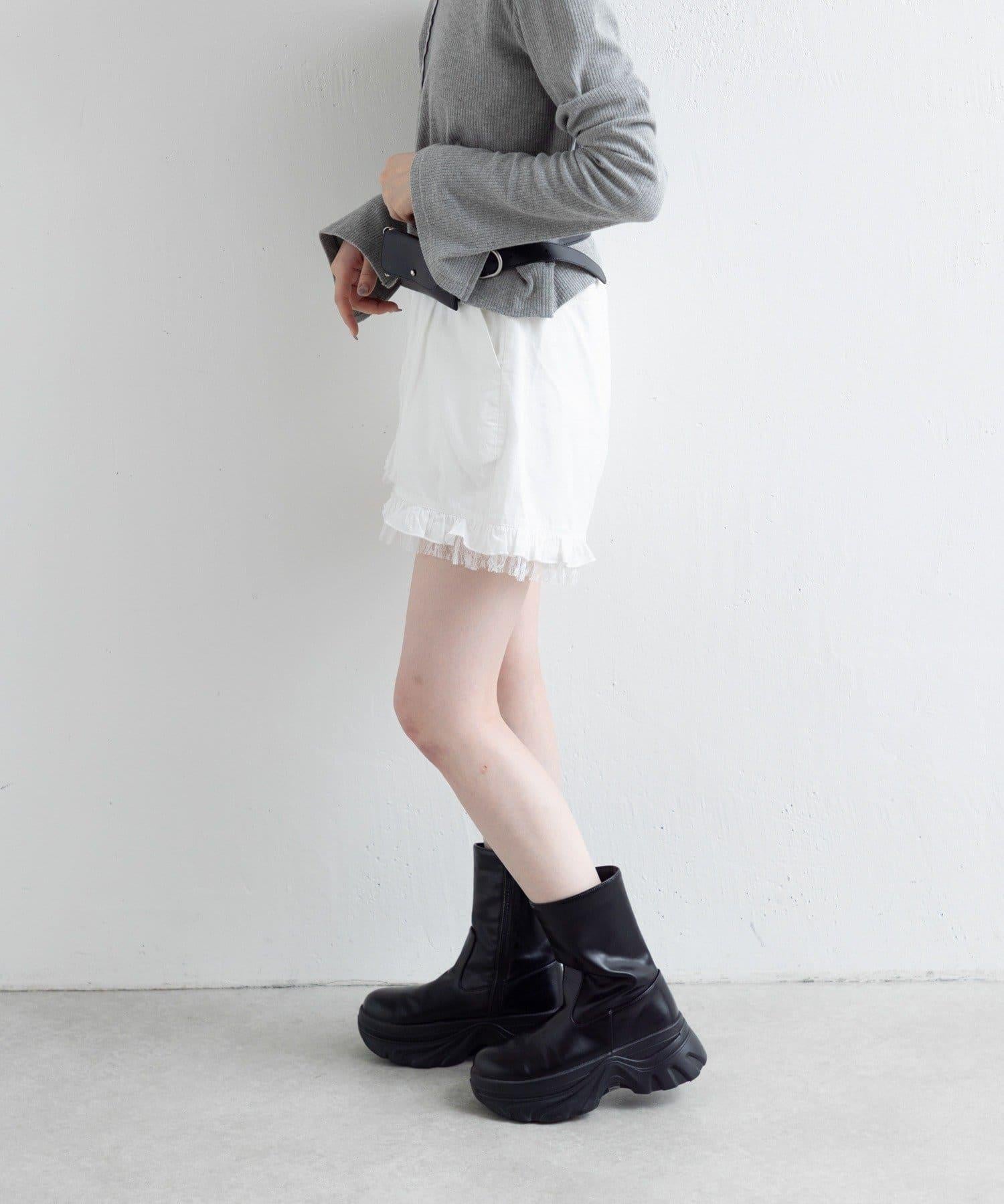 短褲下襬的雙層荷葉邊和精緻的蕾絲花邊十分搶眼。