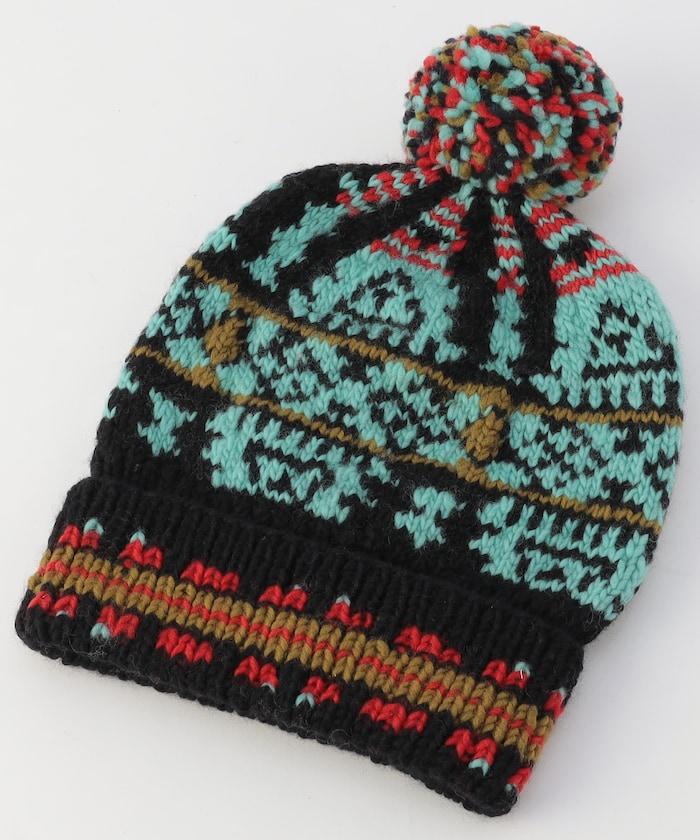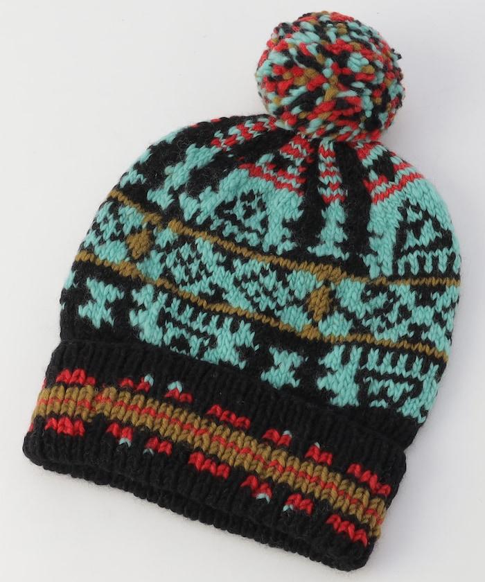 美利奴羊毛針織帽,採用傳統的繩索編織和蝴蝶結設計。