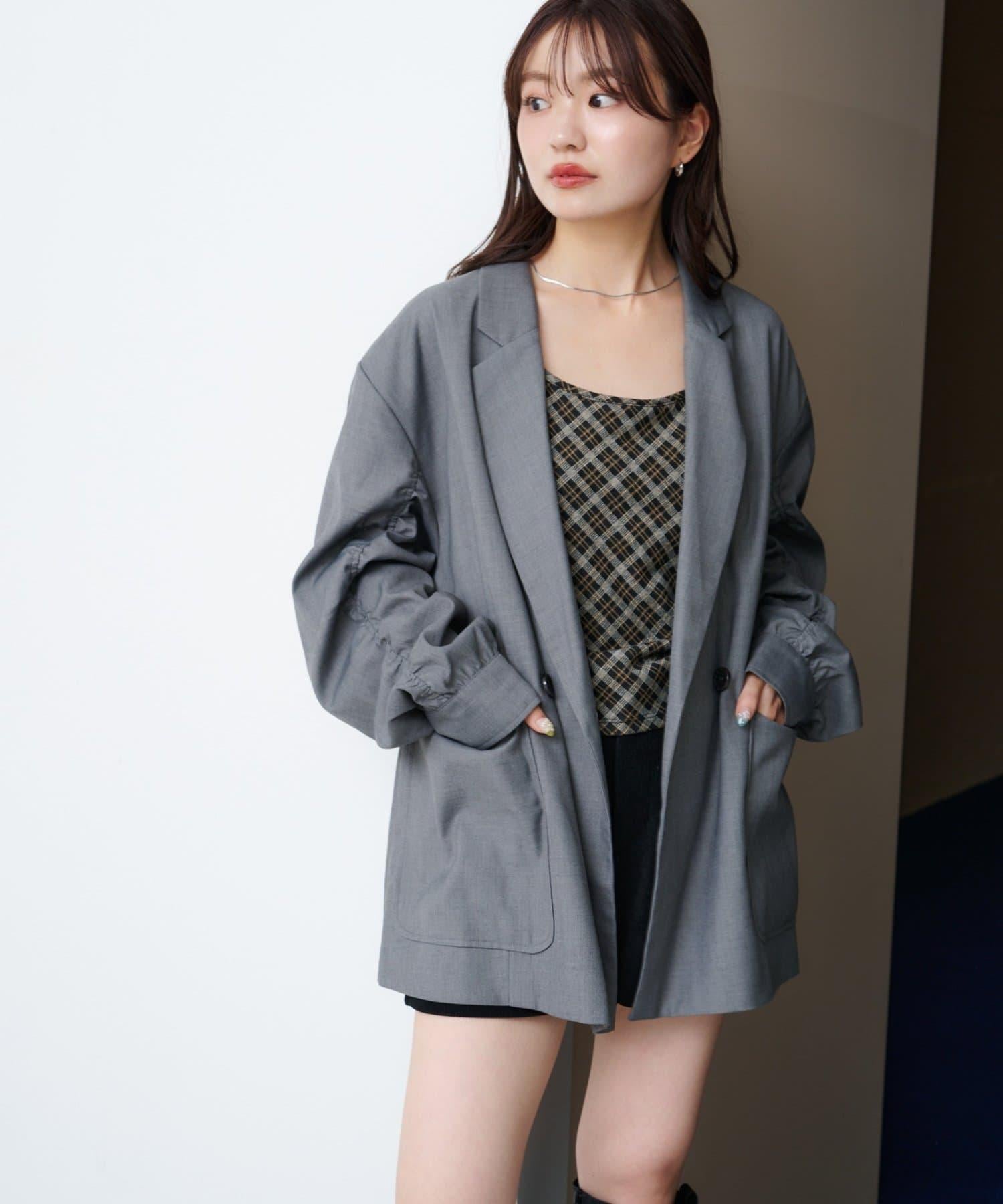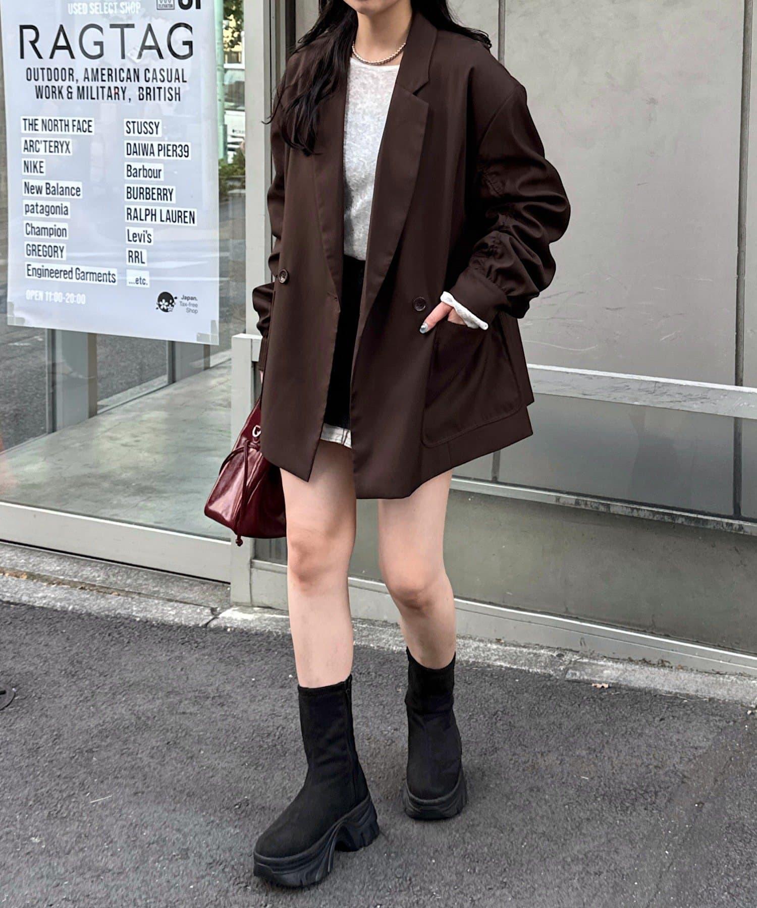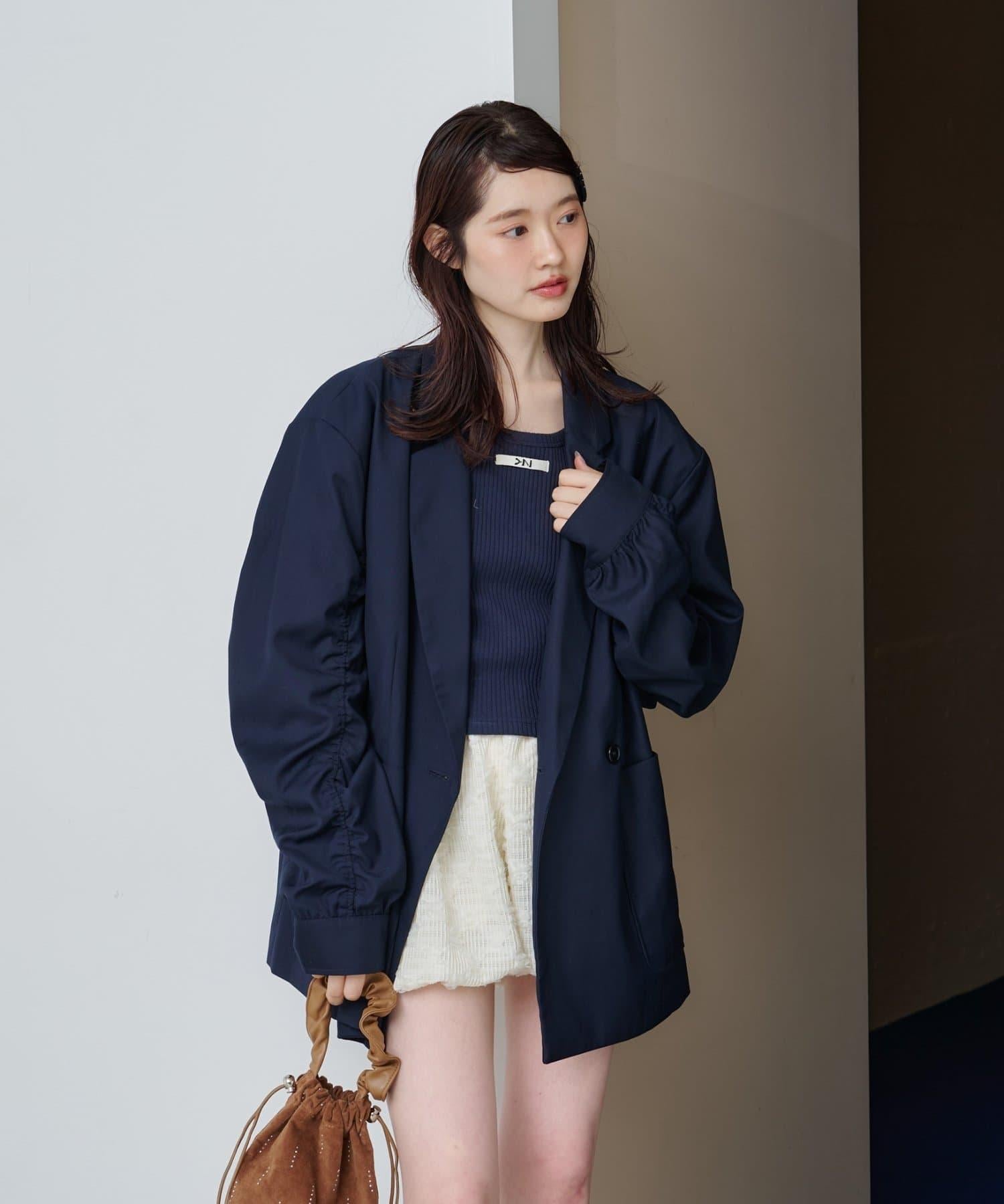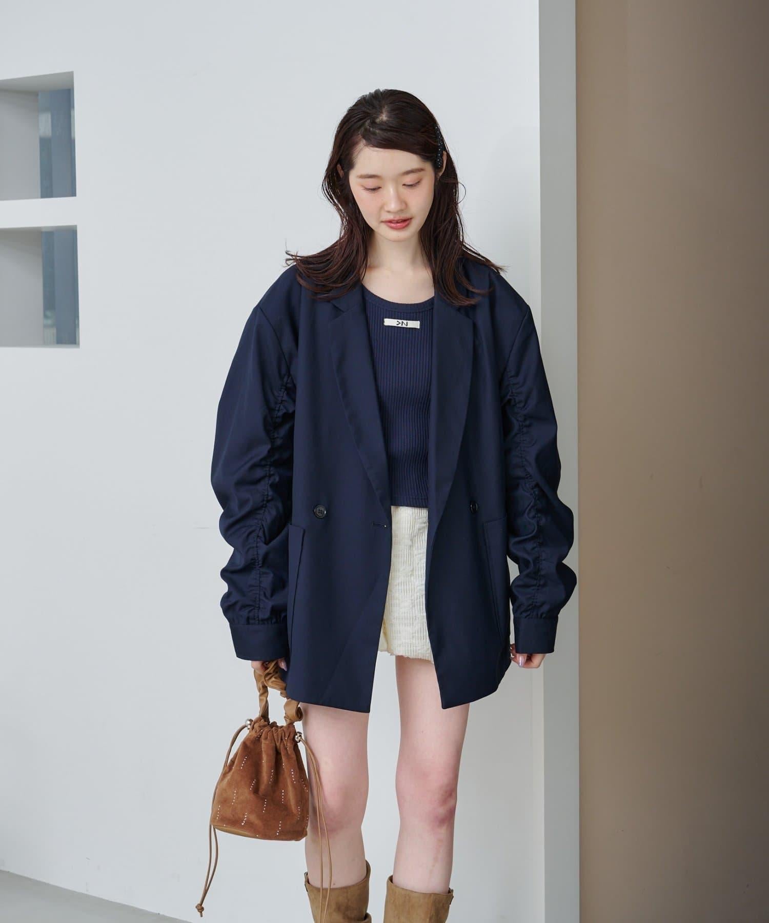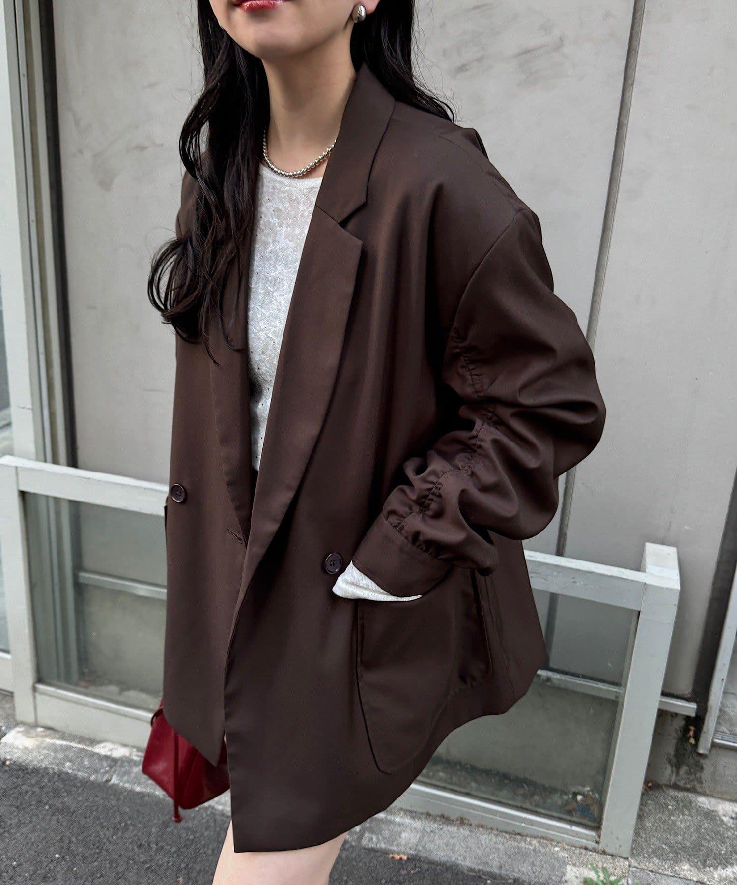袖子上的聚攏細節十分搶眼,使這款夾克成為全場的焦點。