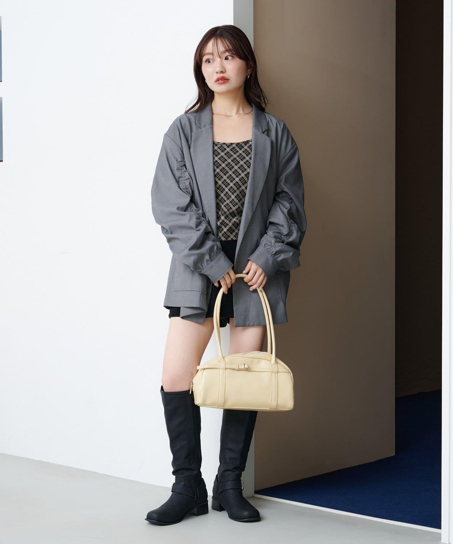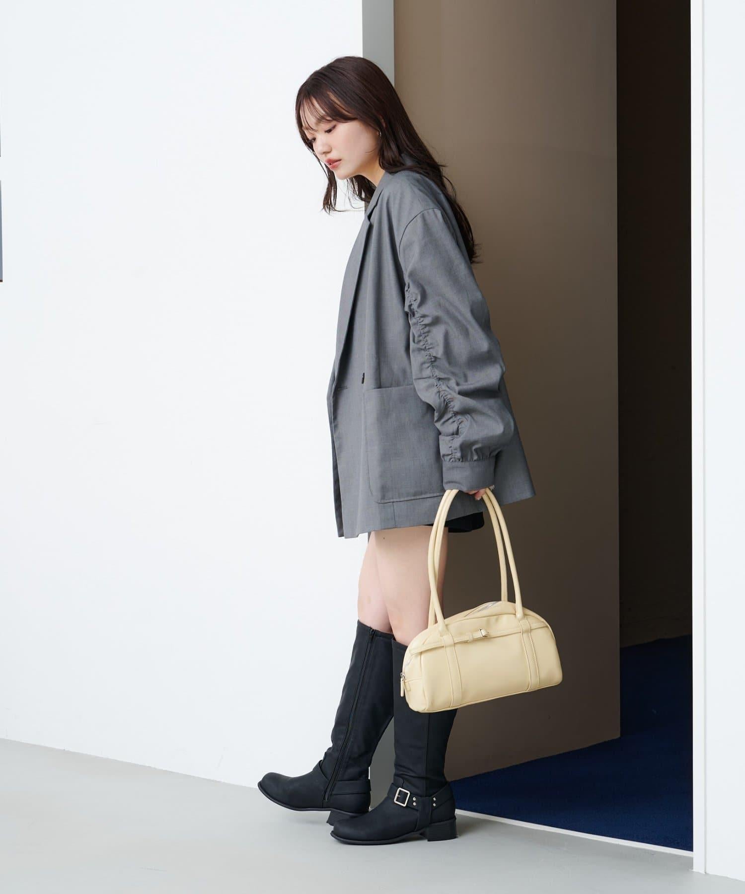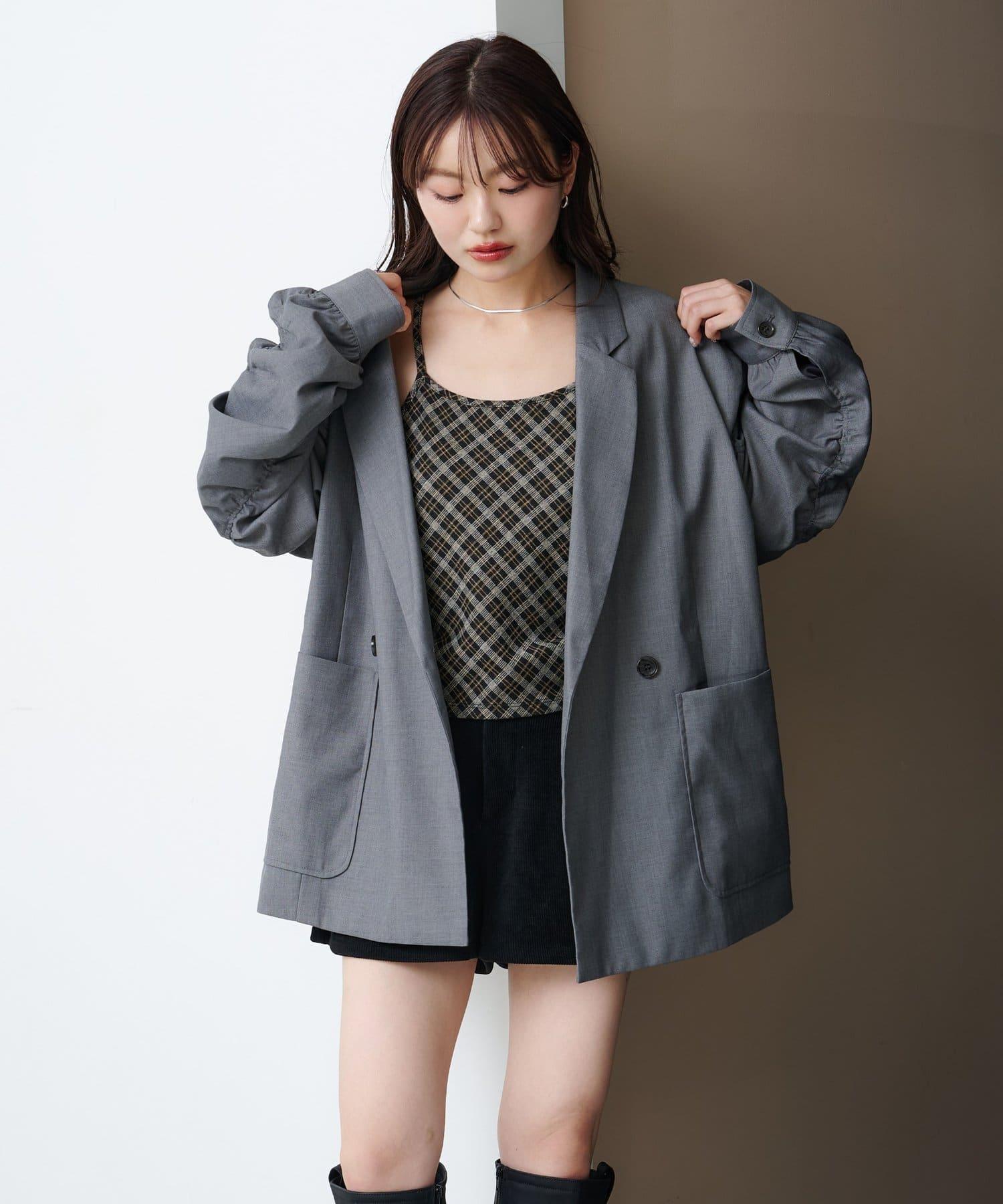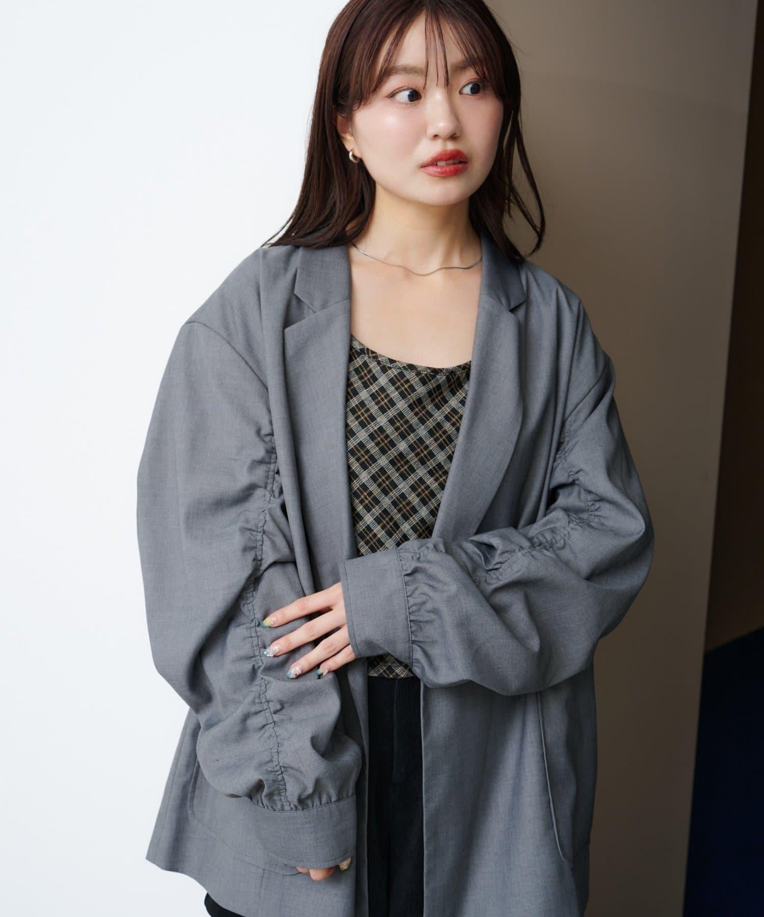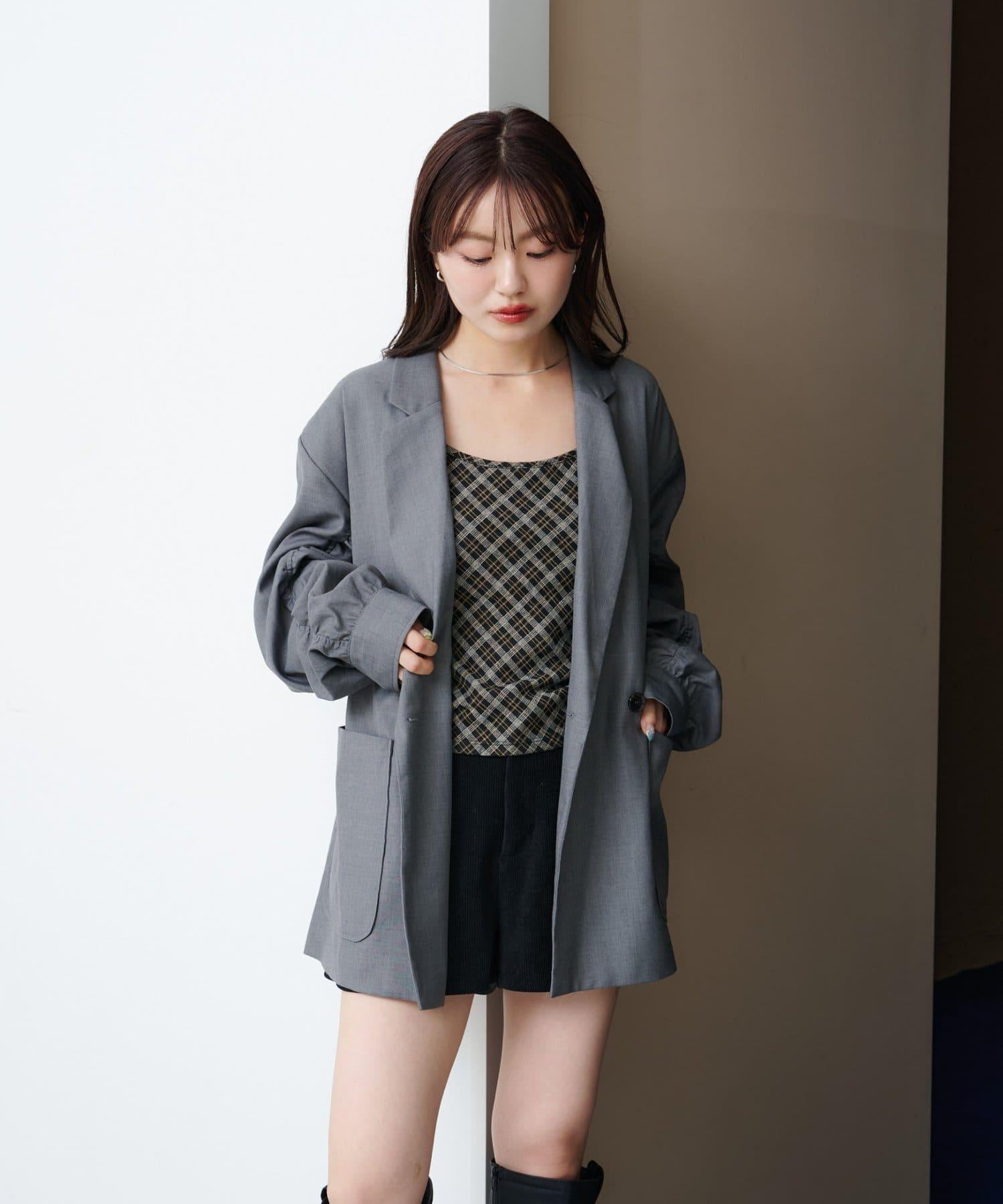 袖子上的聚攏細節十分搶眼,使這款夾克成為全場的焦點。