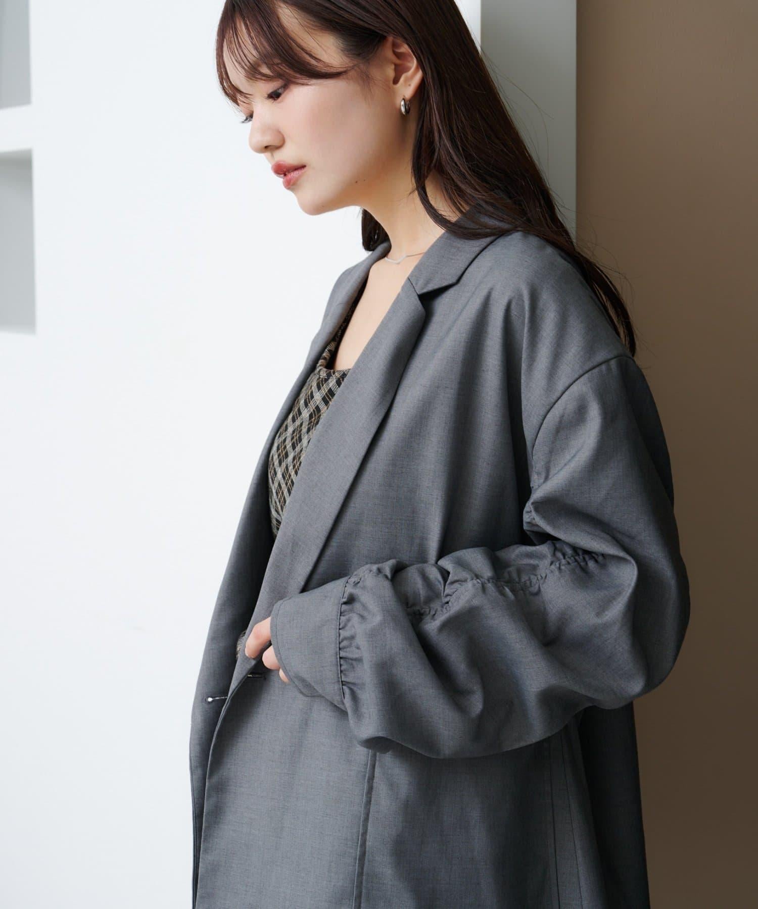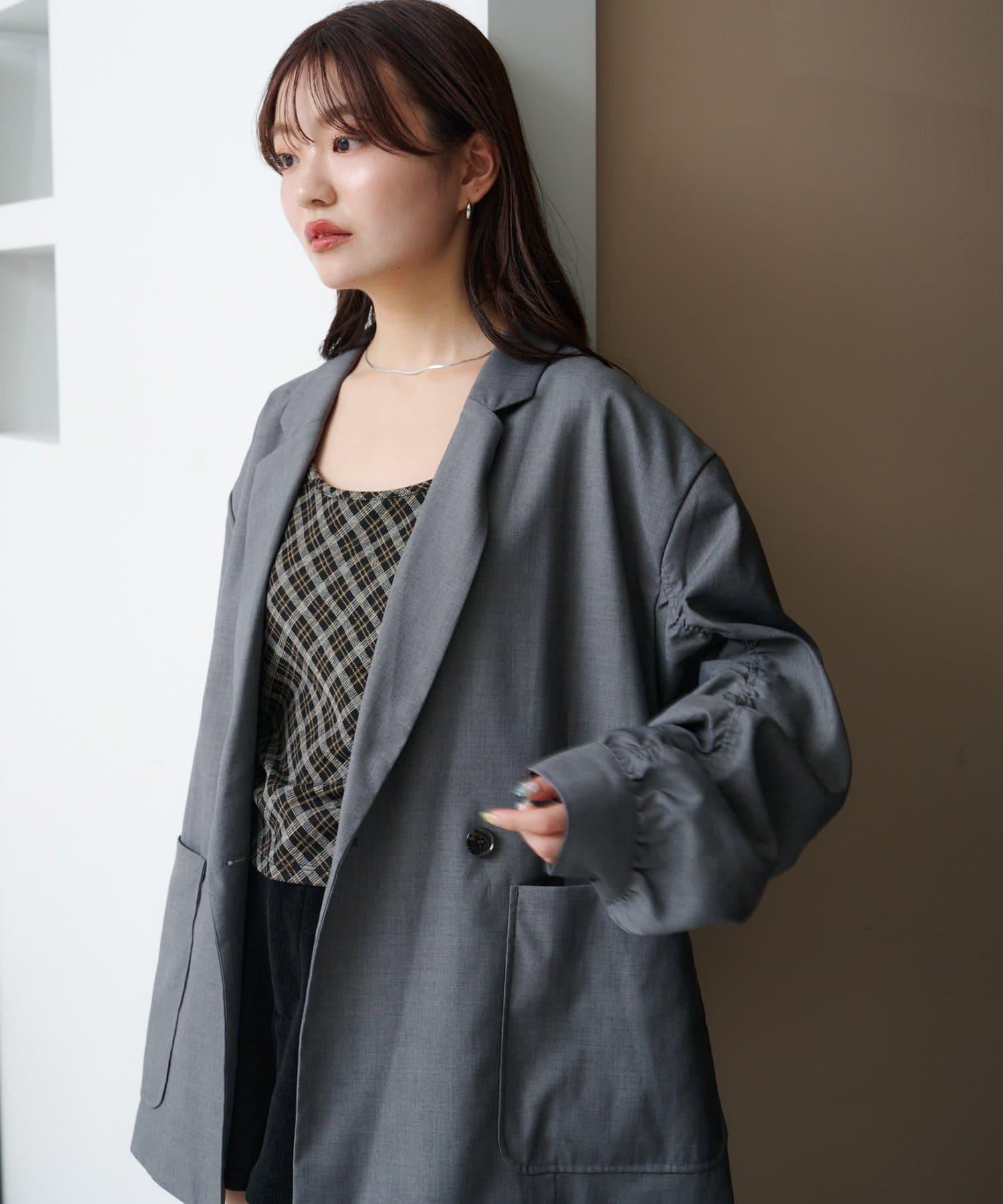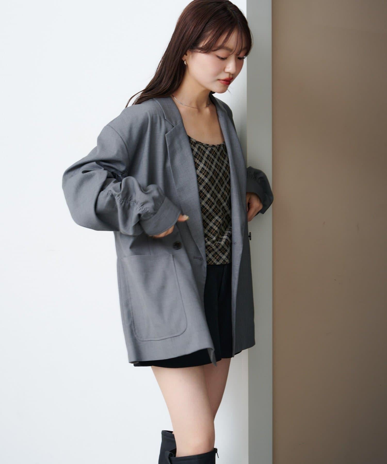 外搭 T 恤和寬鬆長褲,讓袖子上的褶皺成為焦點。利用配飾和髮型打造精緻印象。
