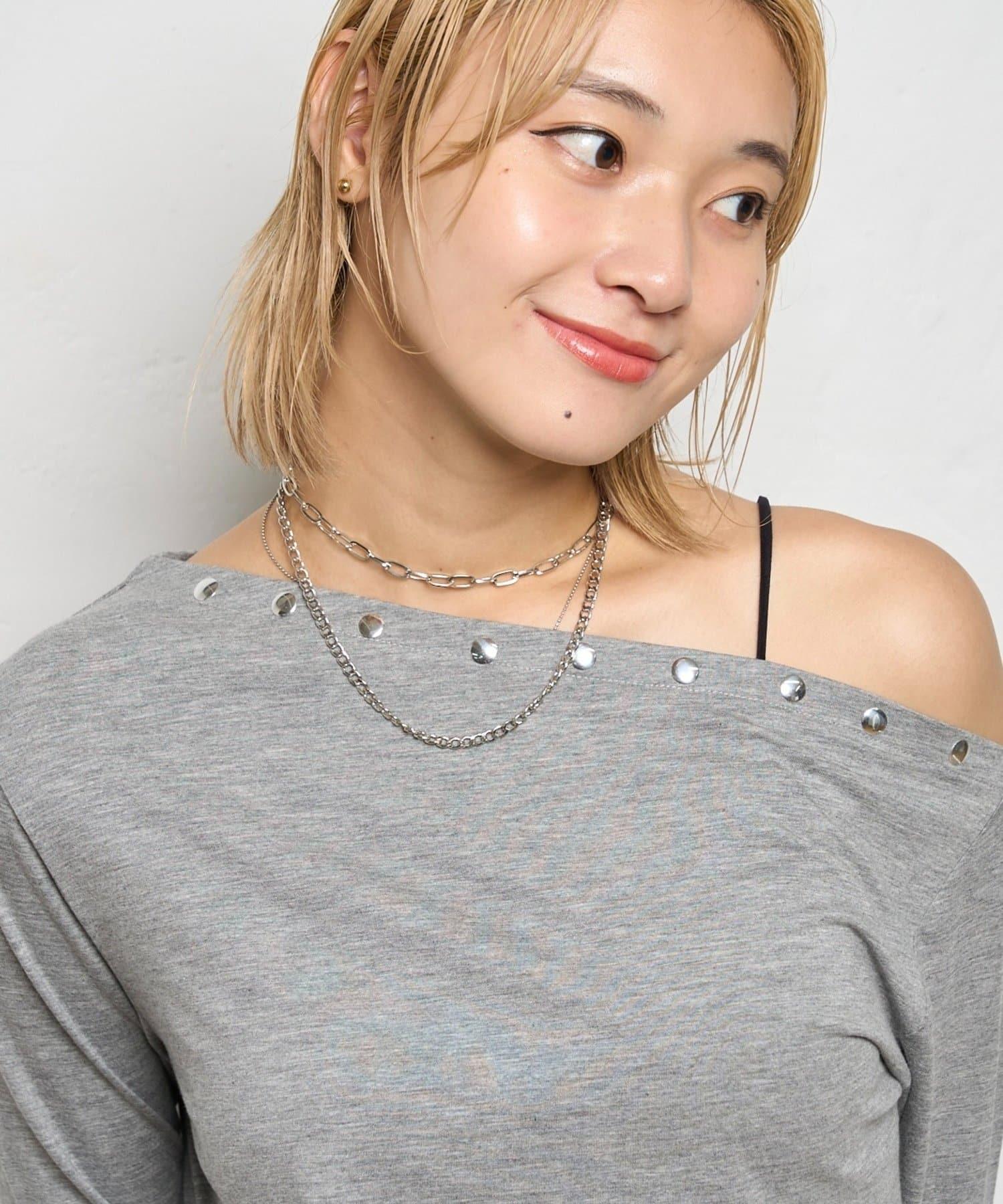 這條時尚的項鍊由不同設計的鏈條組合而成。