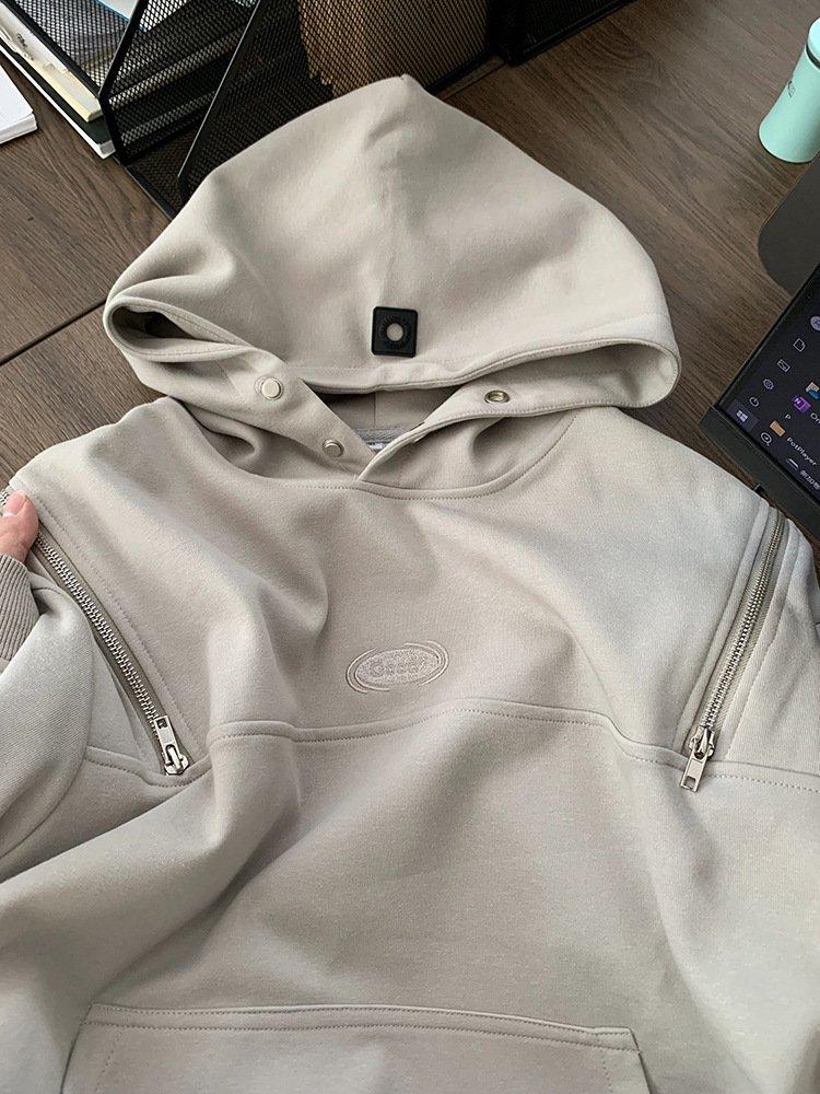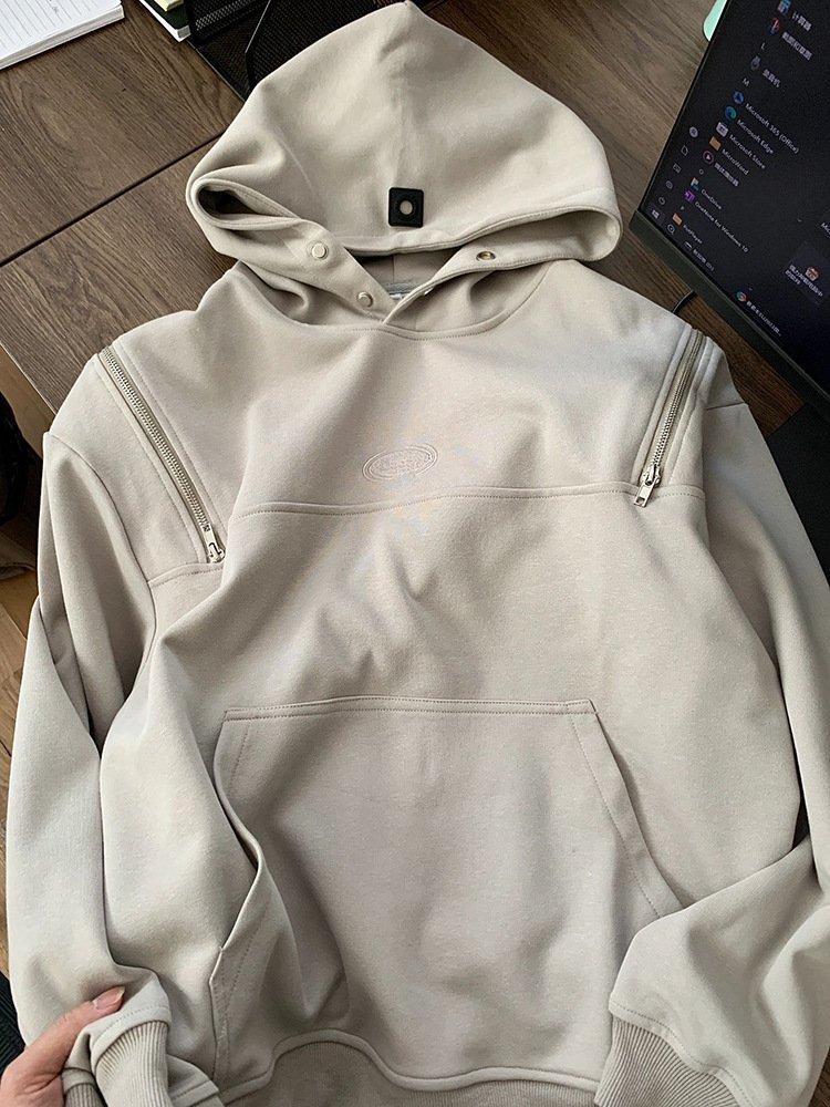 雙拉鍊套頭連帽衫。