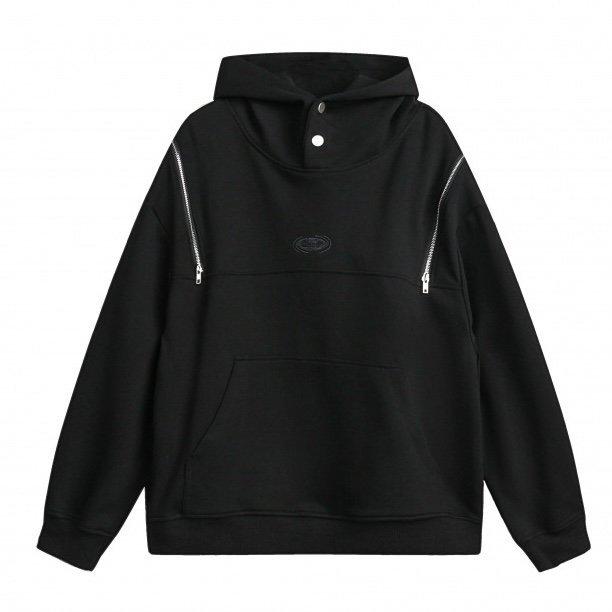 雙拉鍊套頭衛衣帽衫 黑色 (CT7264BK)