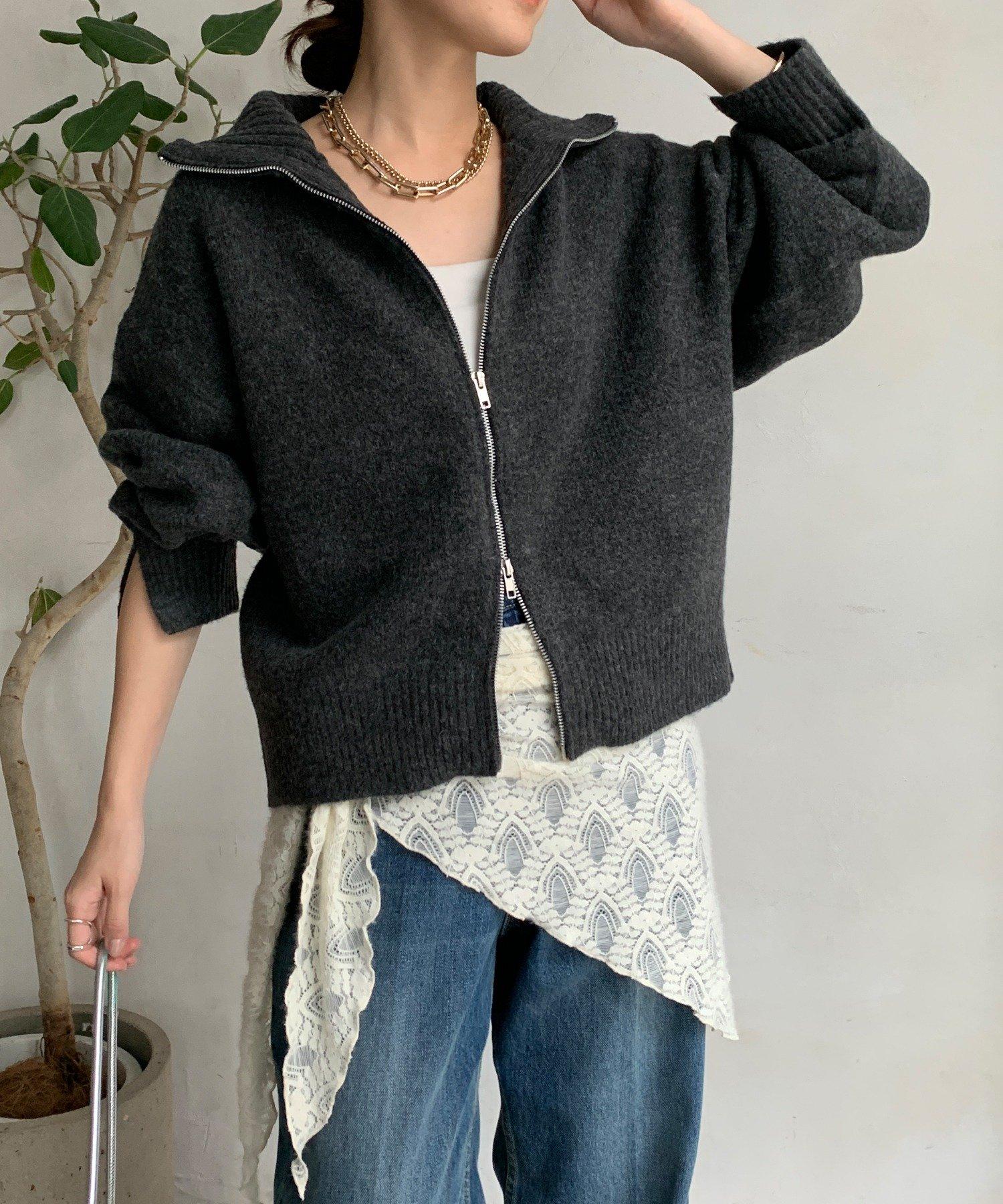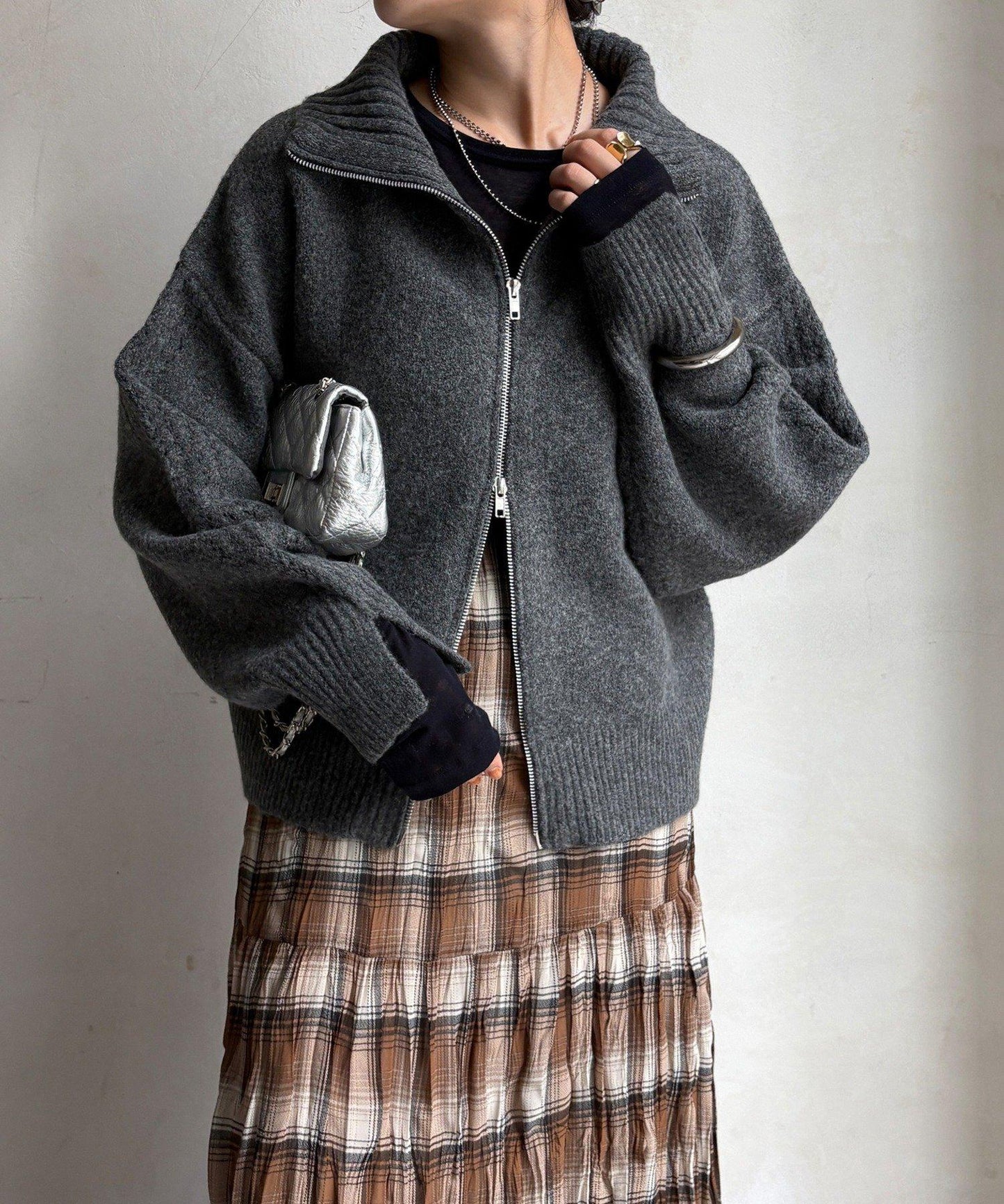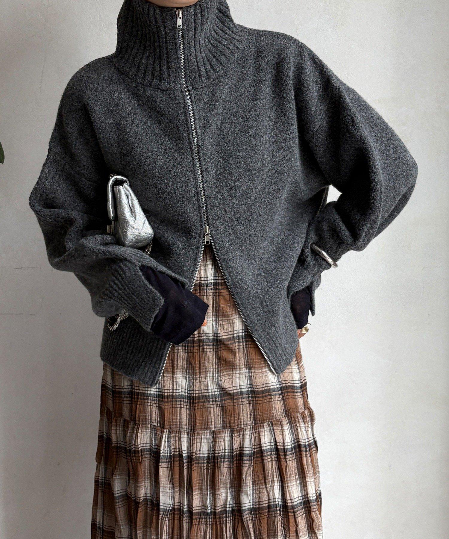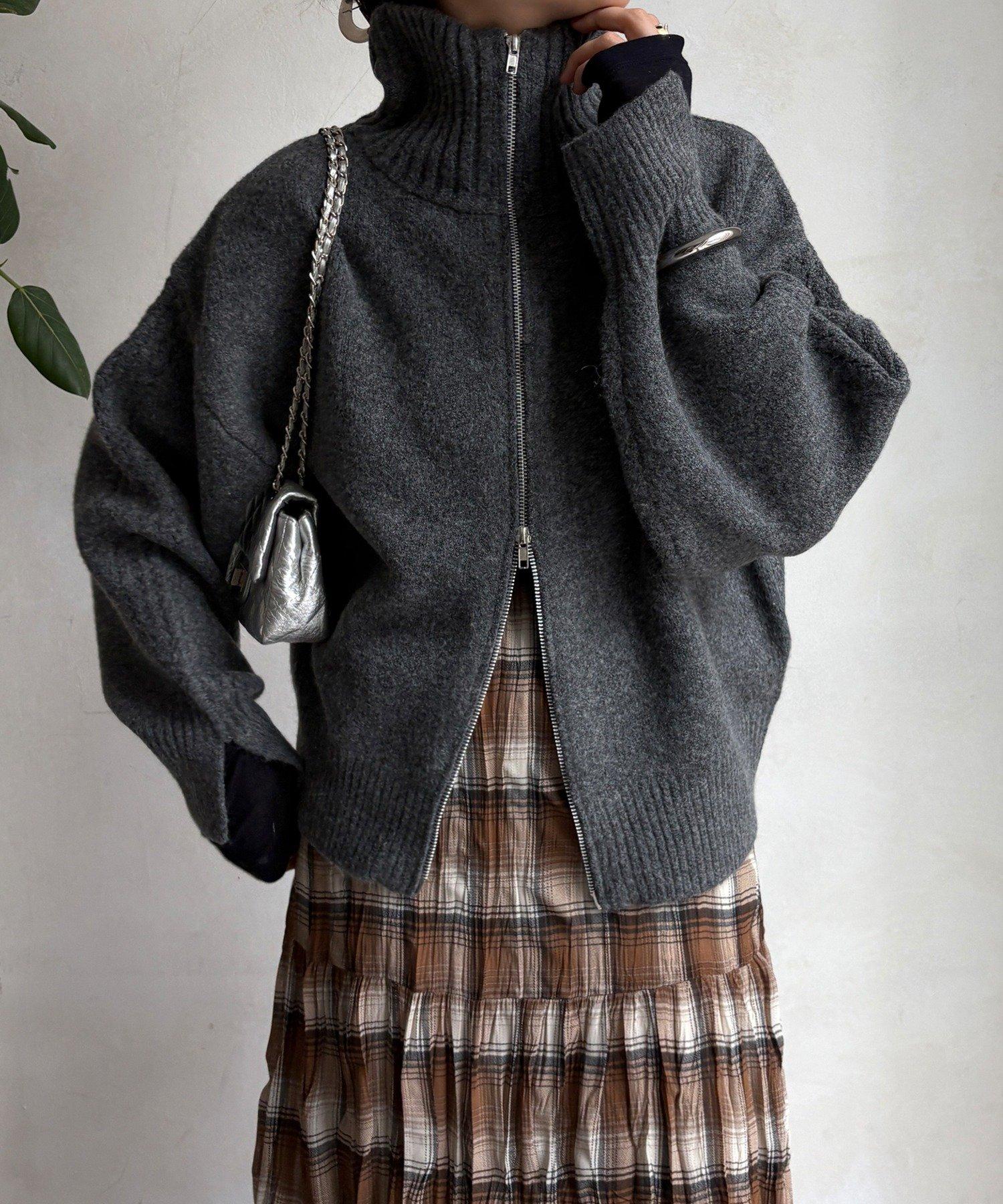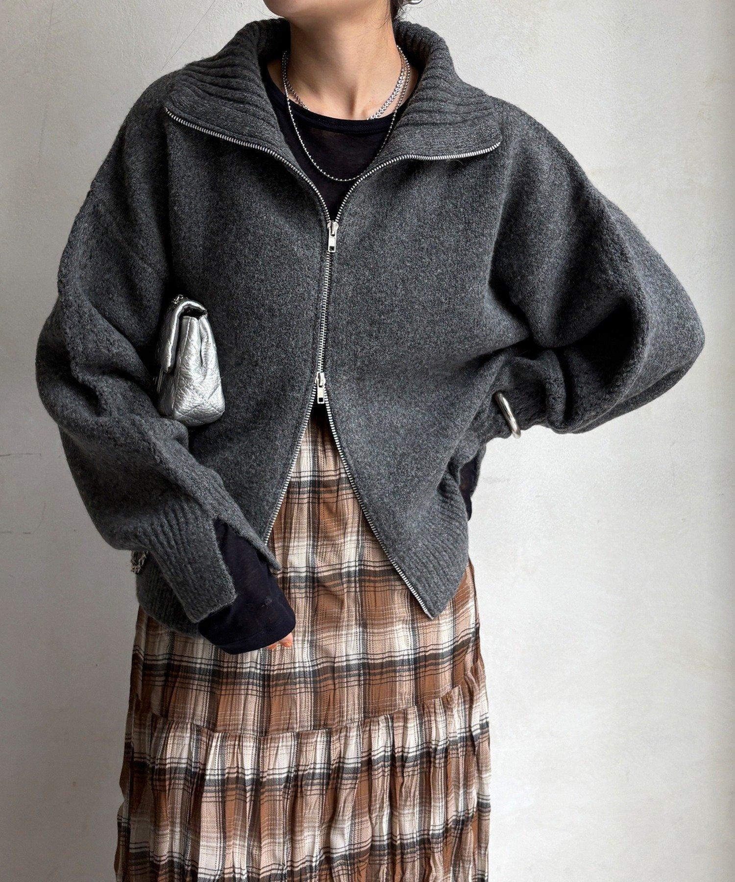 雙拉鍊針織夾克