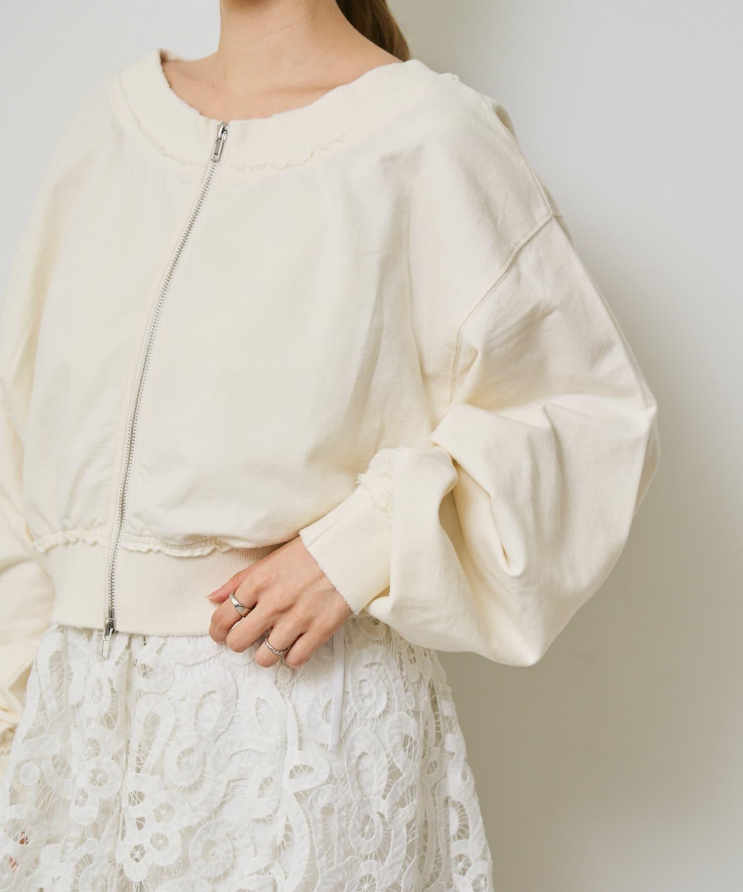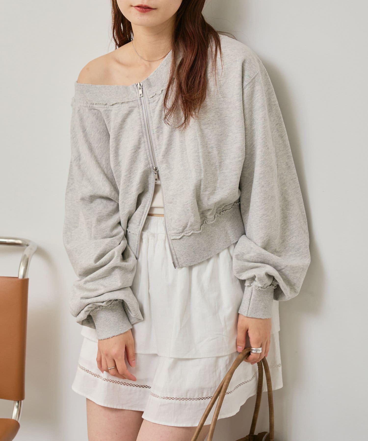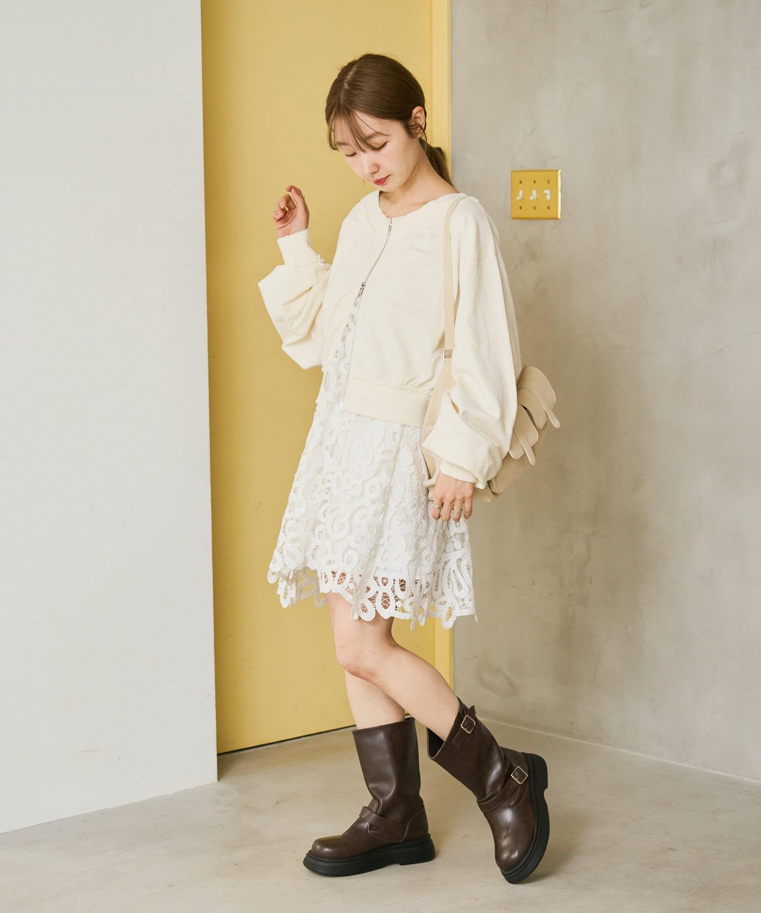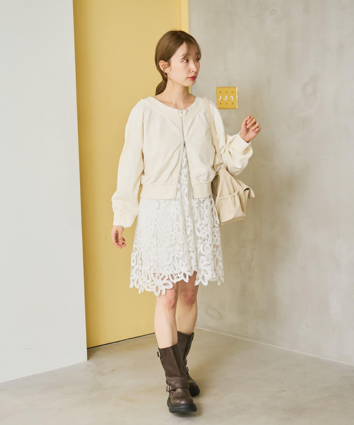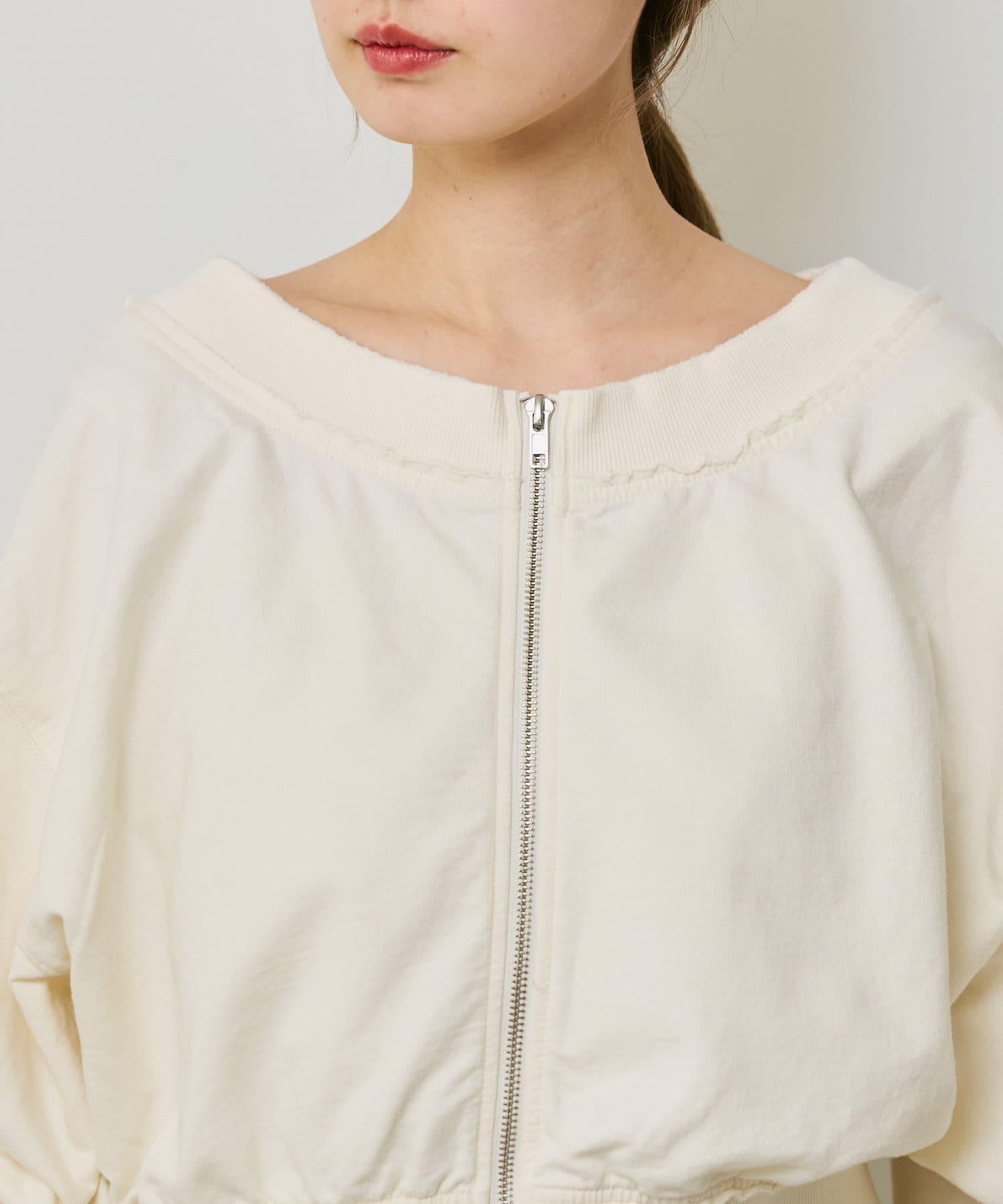 稍稍拉開拉鍊,讓肩部下垂,增加寬鬆感,打造成熟穩重的風格。