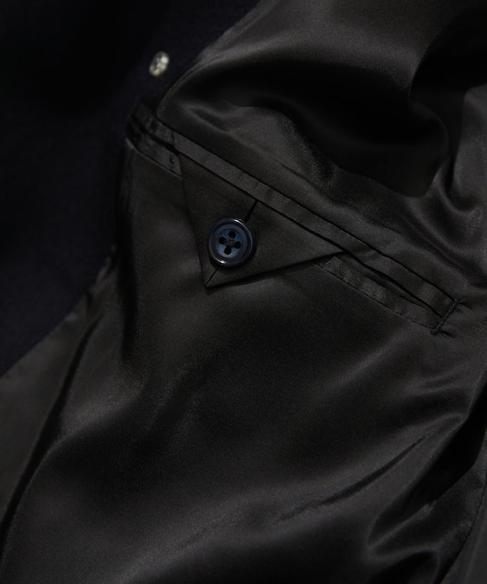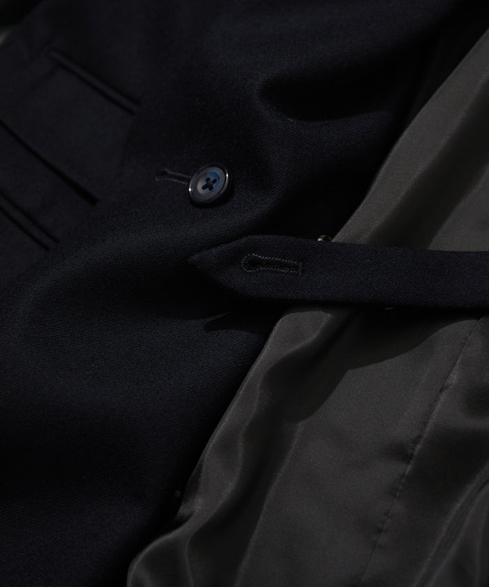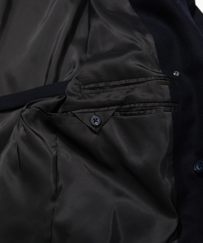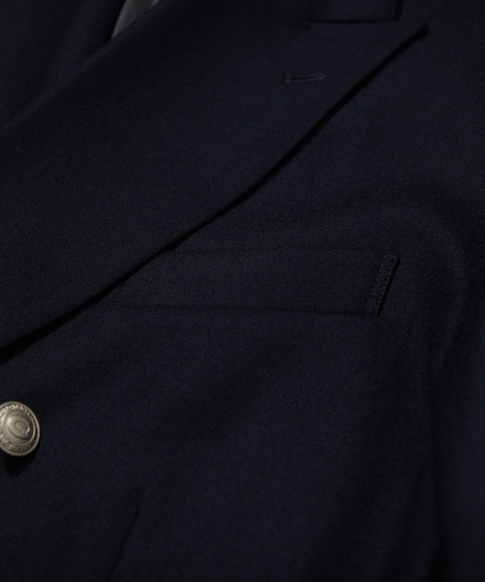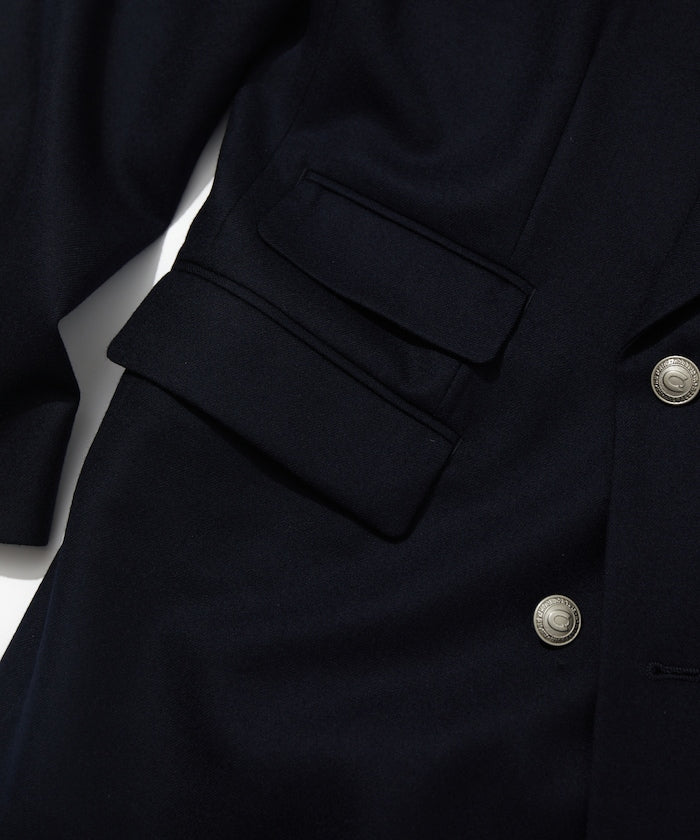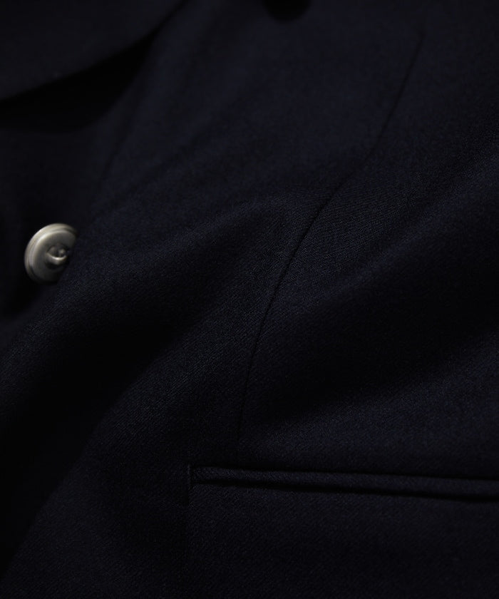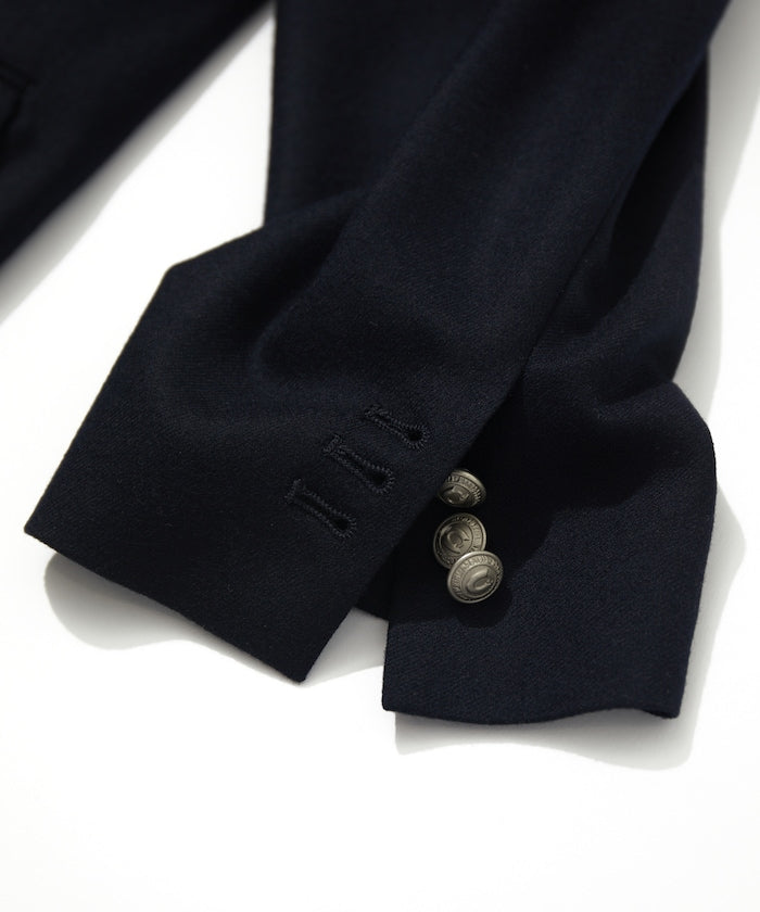 西裝外套就像運動衫。你可以正確對待它,大肆穿著它,也可以粗暴對待它。比如說,運動衫是一件玩摔跤後袖子被扯掉一半的運動衫。'就像秋生現在穿的運動衫。紐約 Rowing Blazer 的創始人傑克指著一張他穿著破舊西裝外套的照片這樣告訴我。你不用考慮太多,只要穿得整潔漂亮就好。當然,穿得正確整齊也很不錯。面料採用來自世界三大羊毛產區之一比紹的 100%精梳美利奴薩克森羊毛,並經過縮絨加彈處理。光滑有光澤,輕薄,保暖性能強。內袋有 A4 大小的口袋。金屬紐扣上印有 CAHLUMN 標誌。