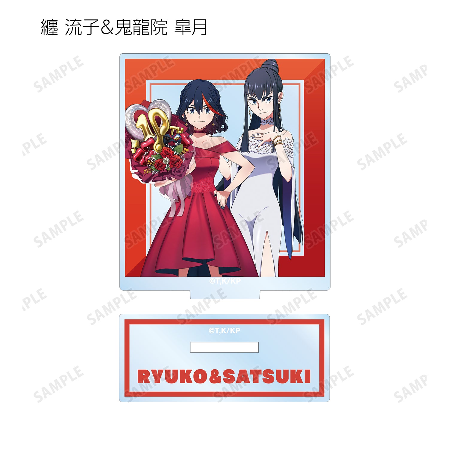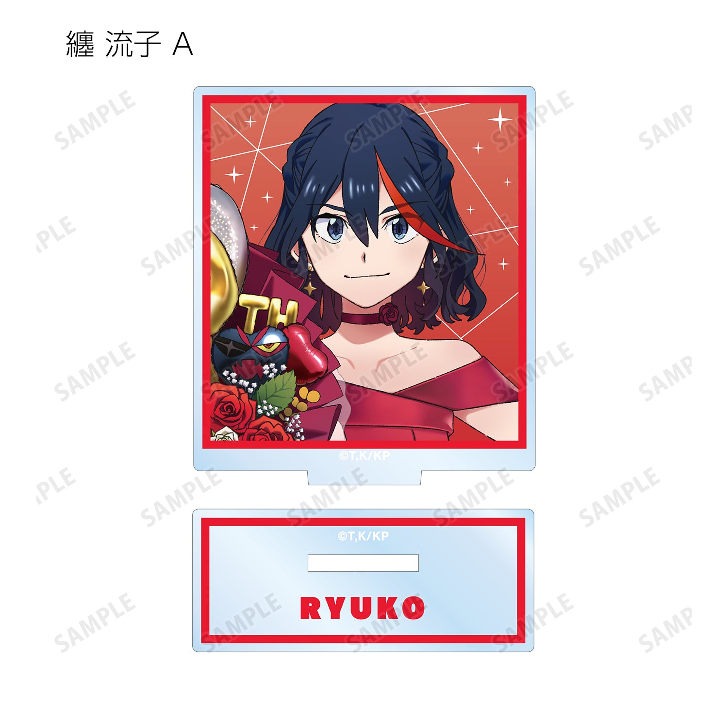 亞克力支架上有新繪製的插圖,分別描繪了龍子(Ryuko Mato)、裡月院(Satsukiin Satsuki)和真子(Mako Manganshika)。