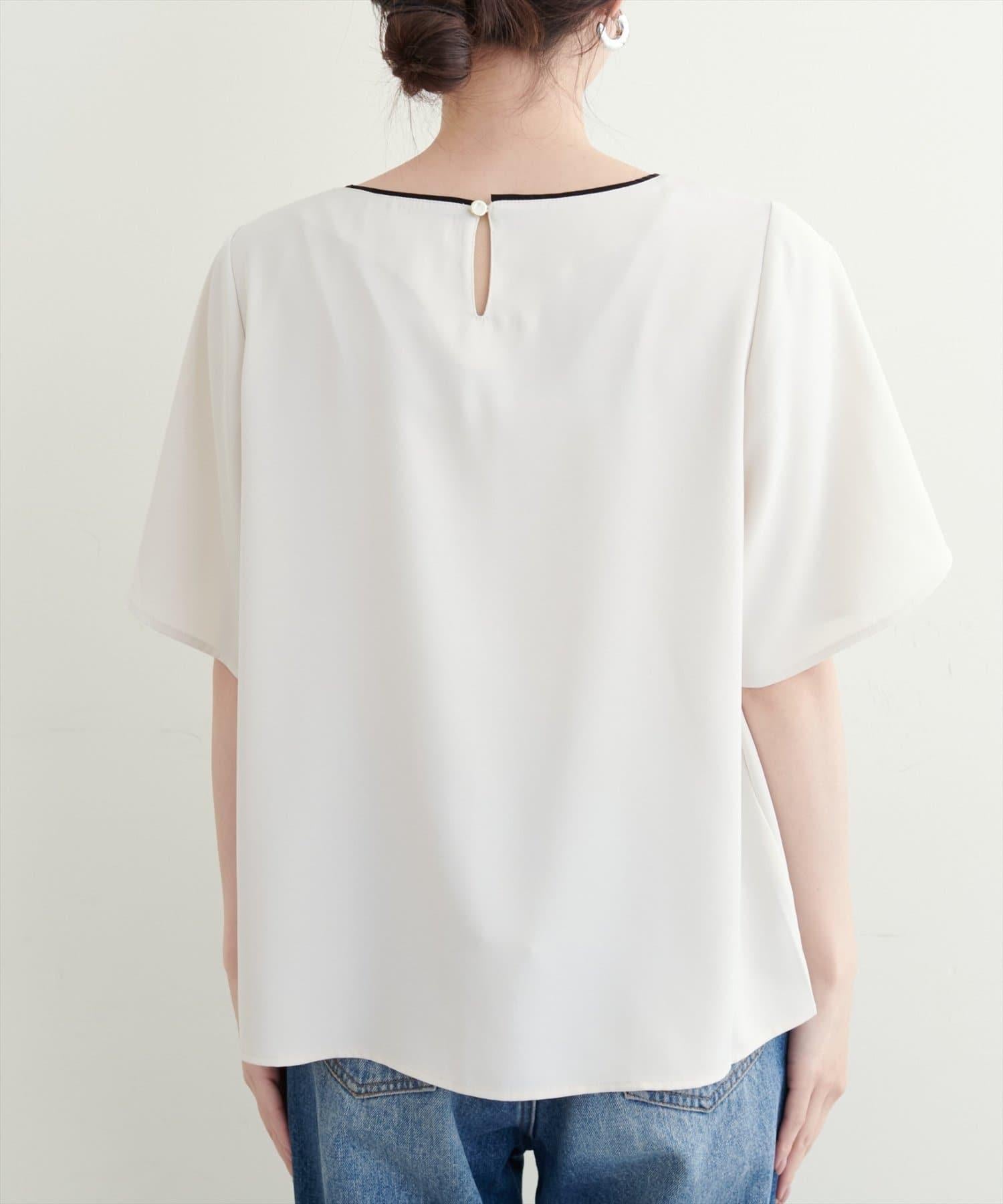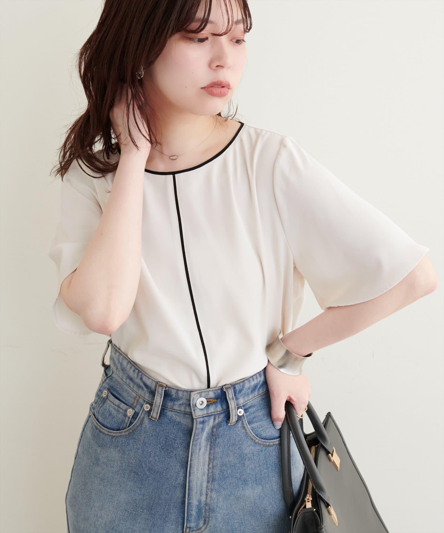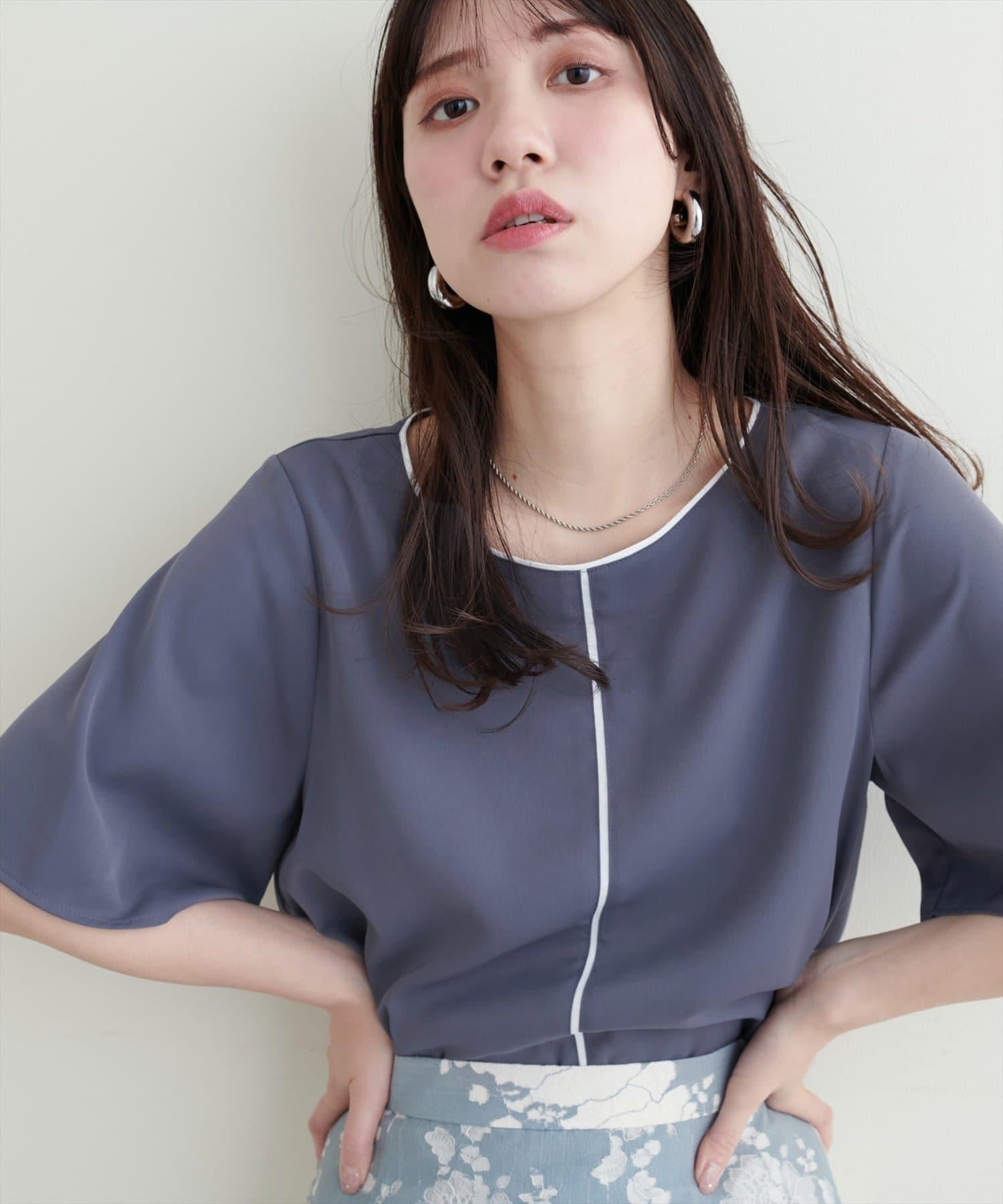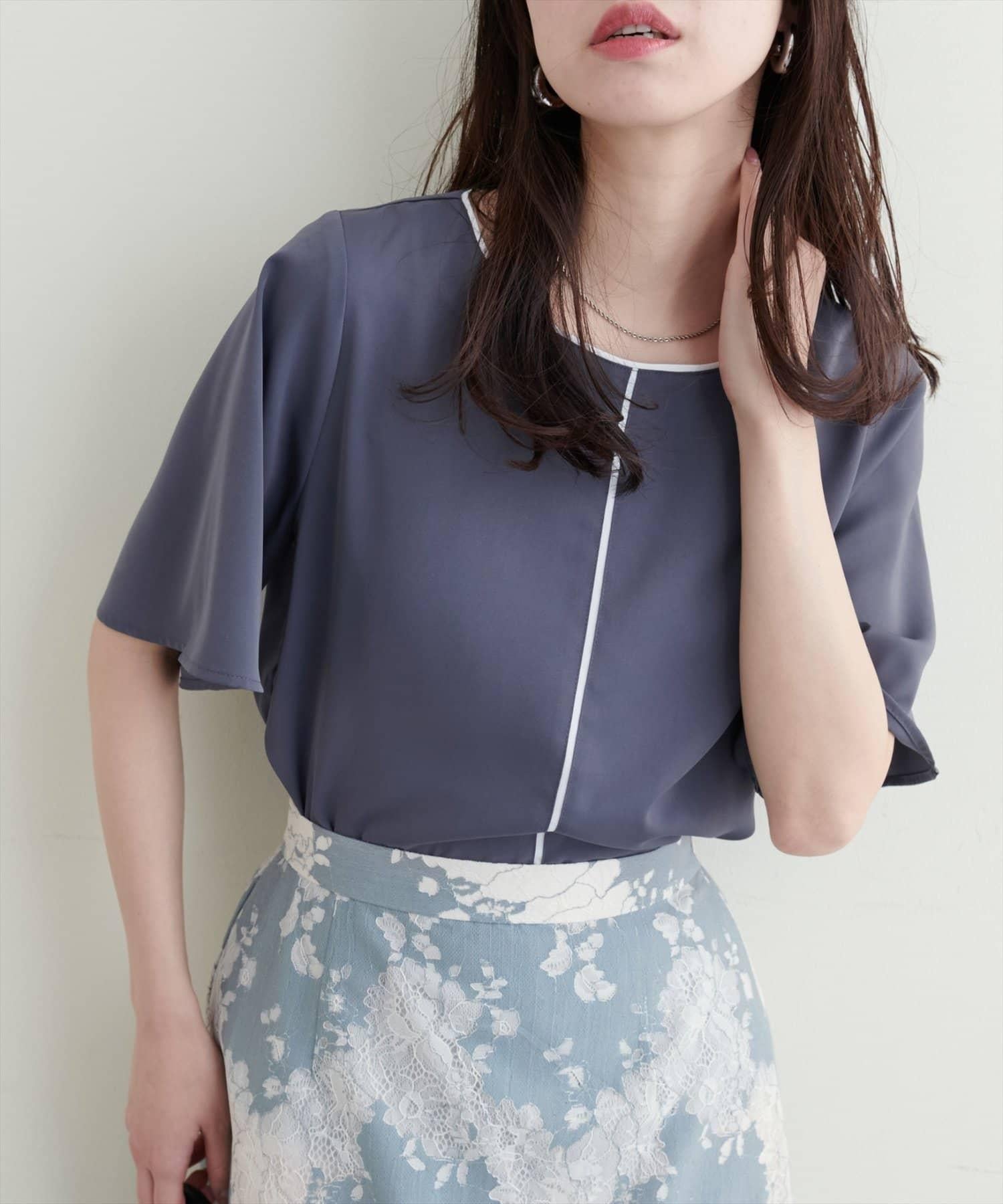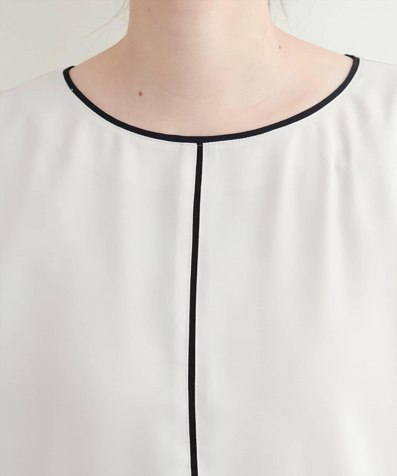 雙色領口和前襟的華麗上衣。
