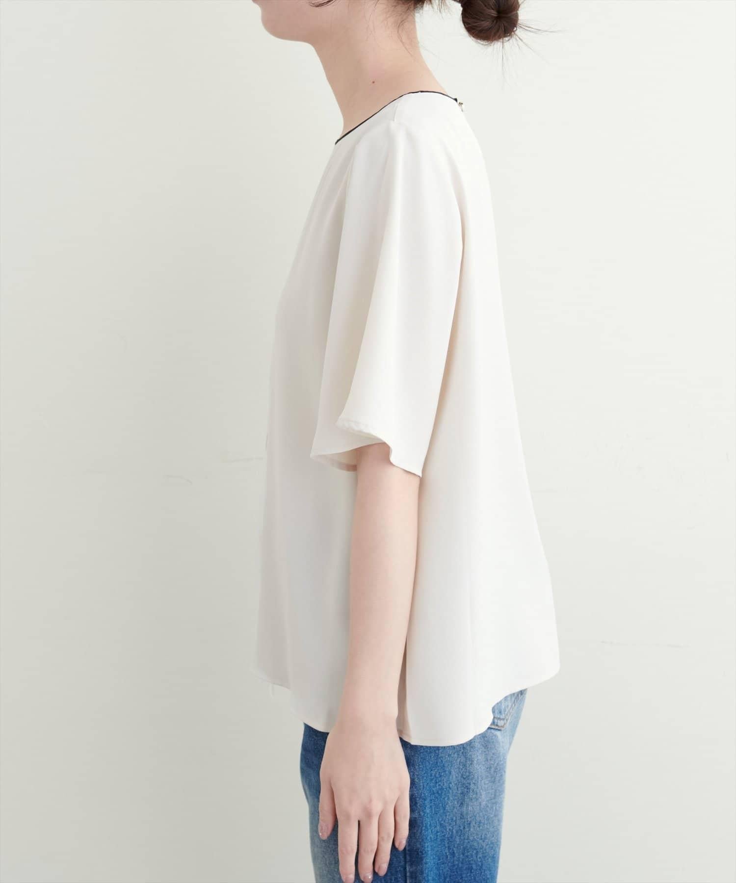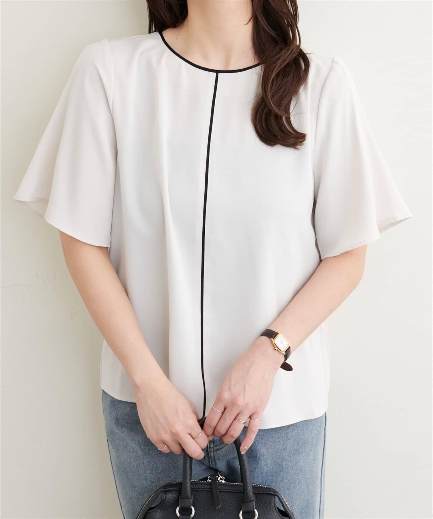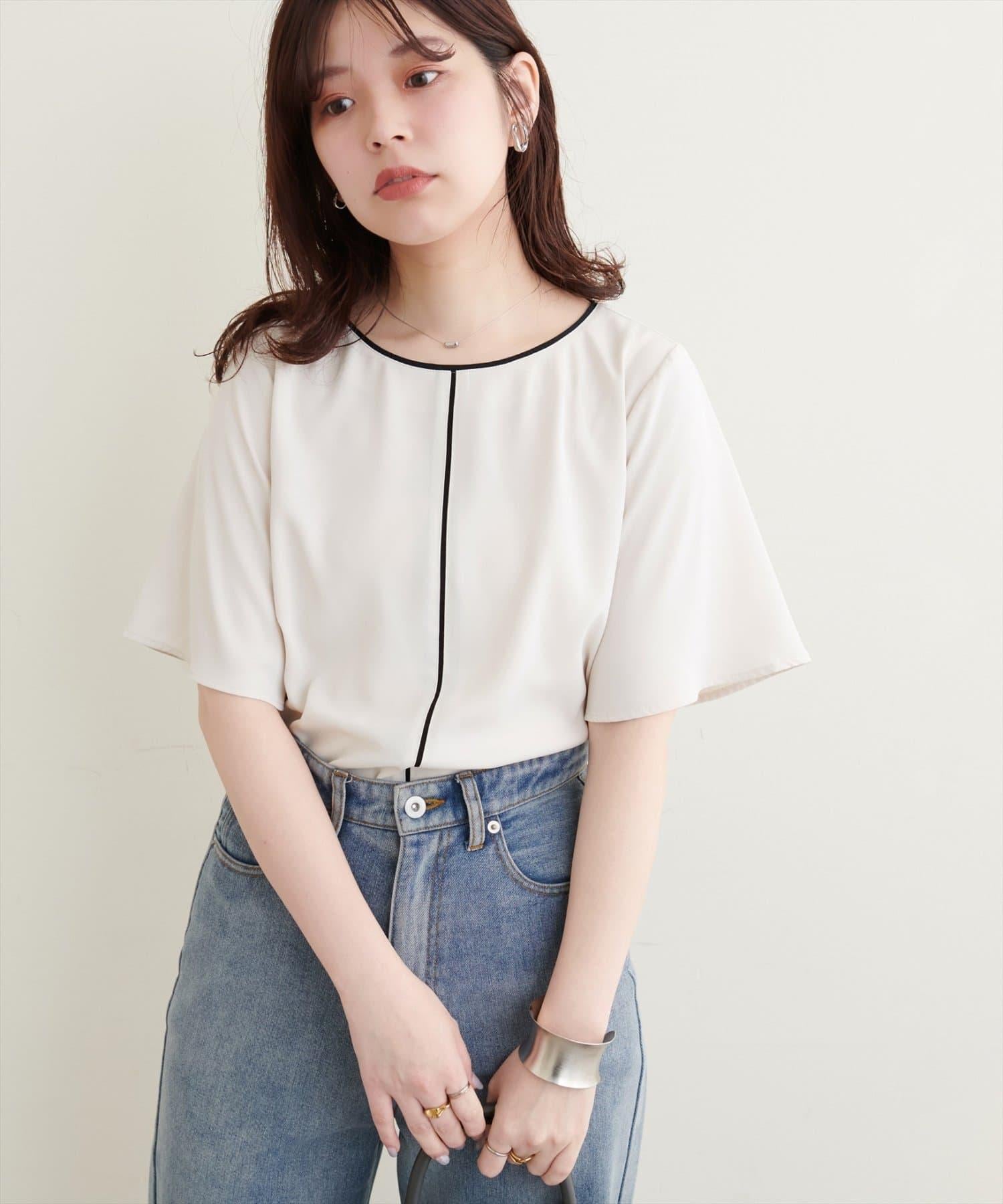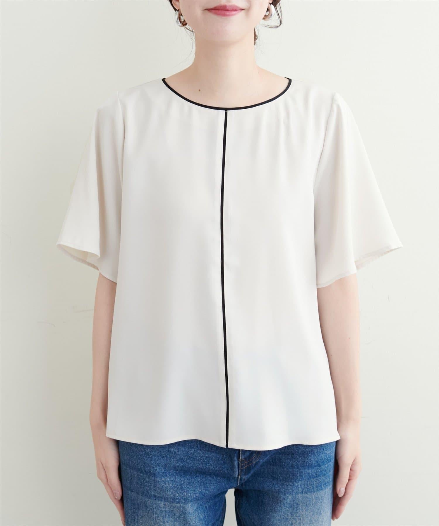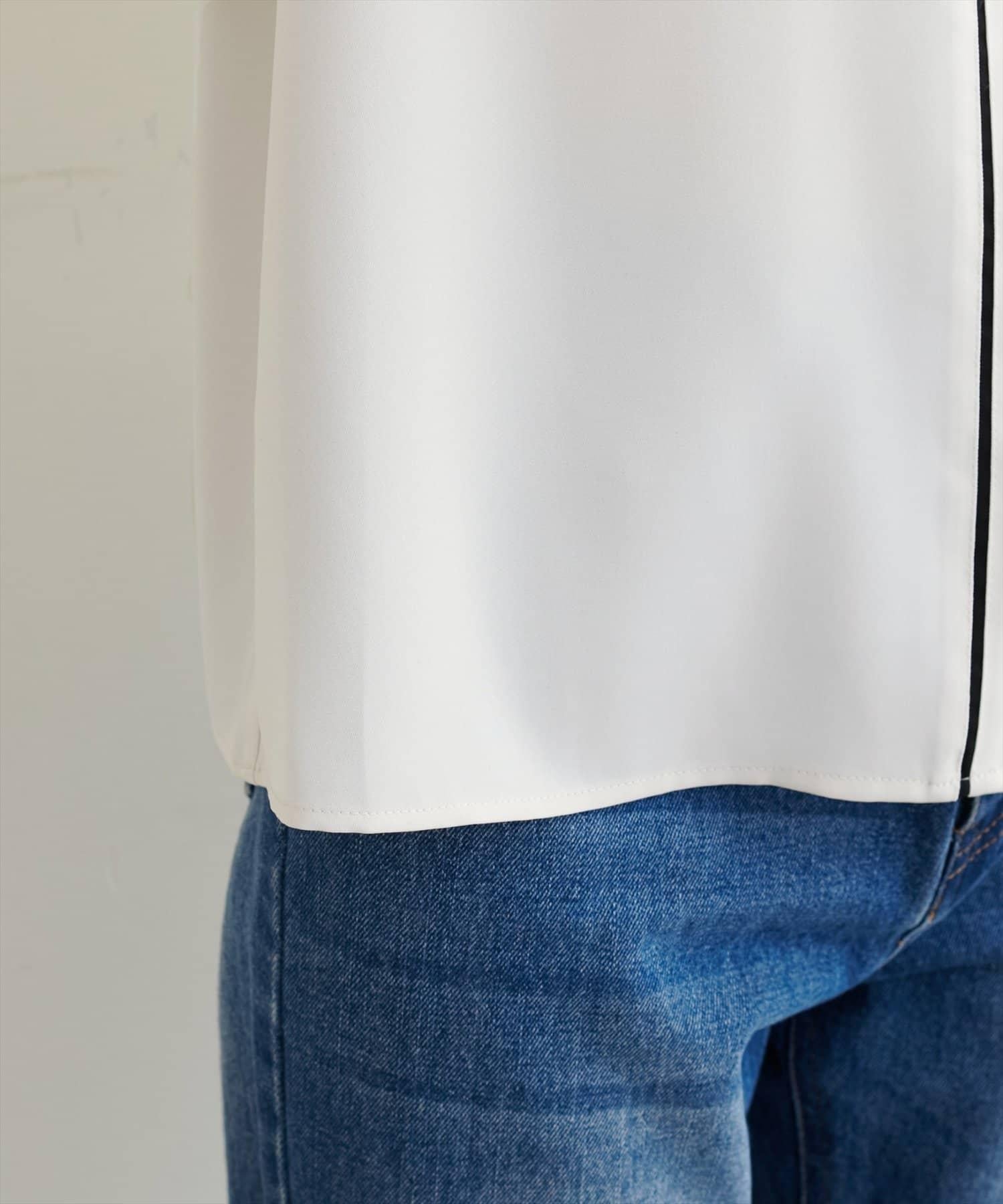 雙色領口和前襟的華麗上衣。