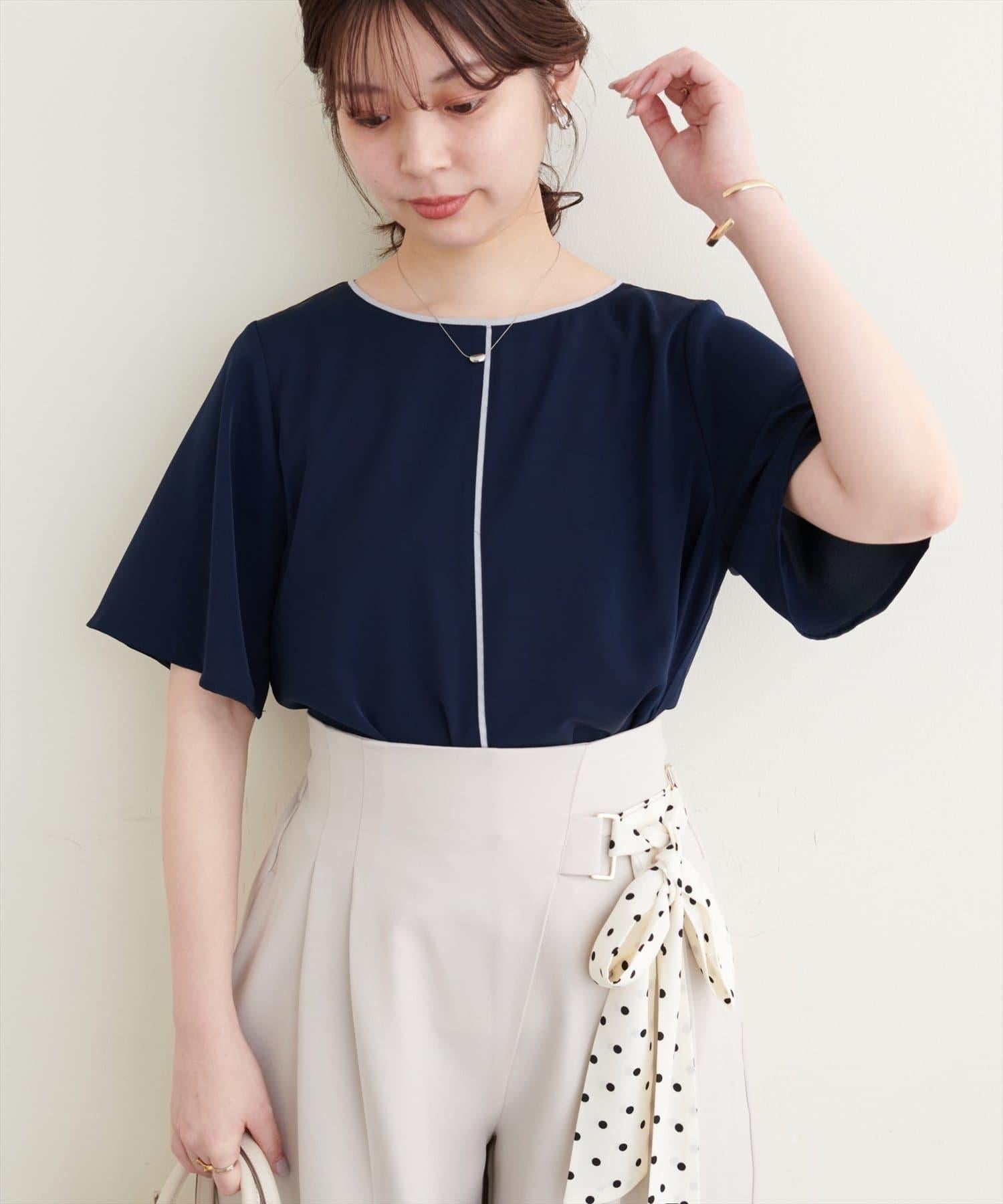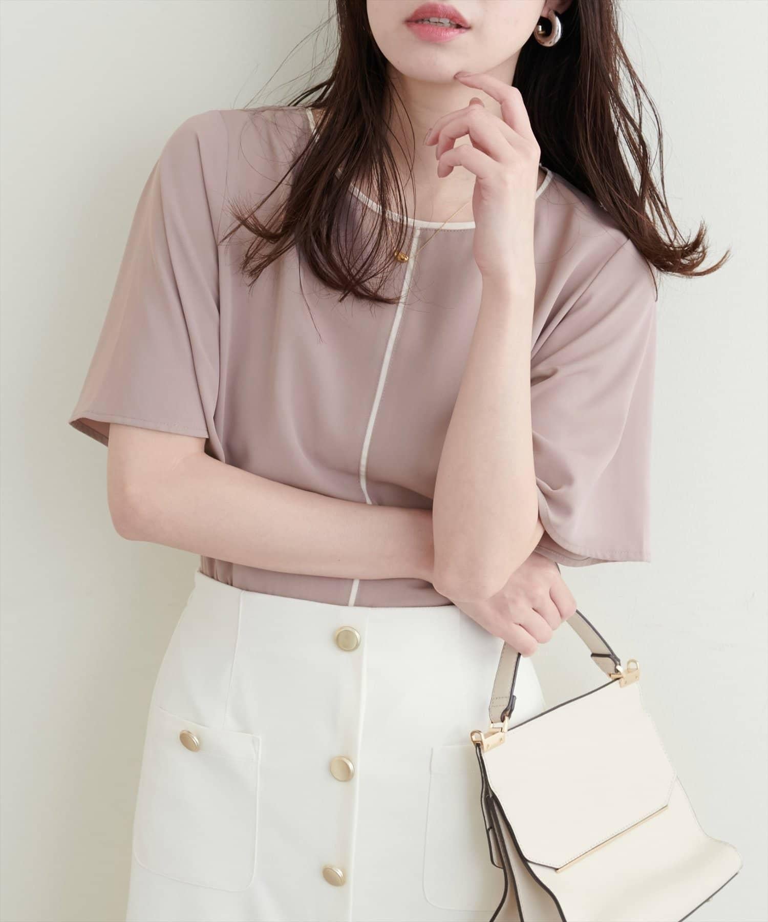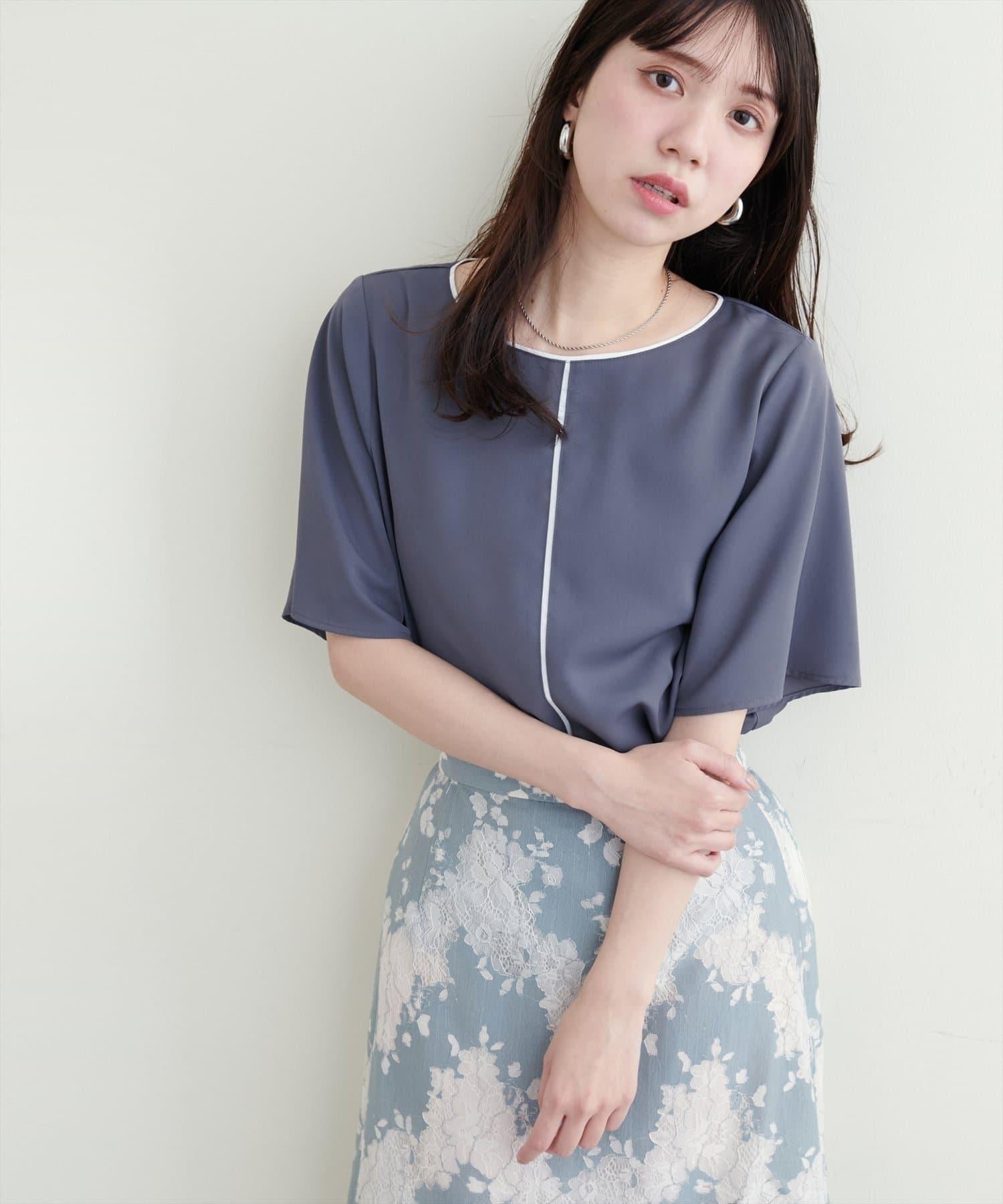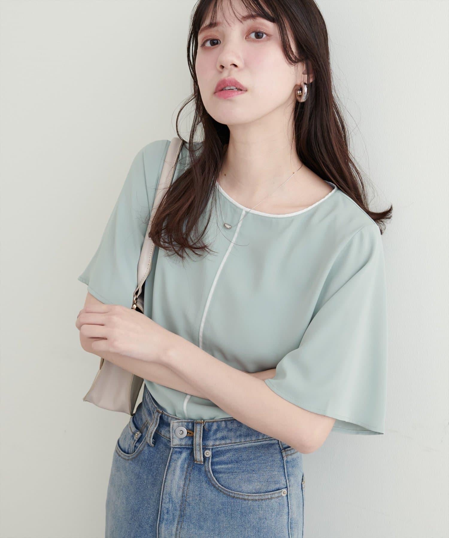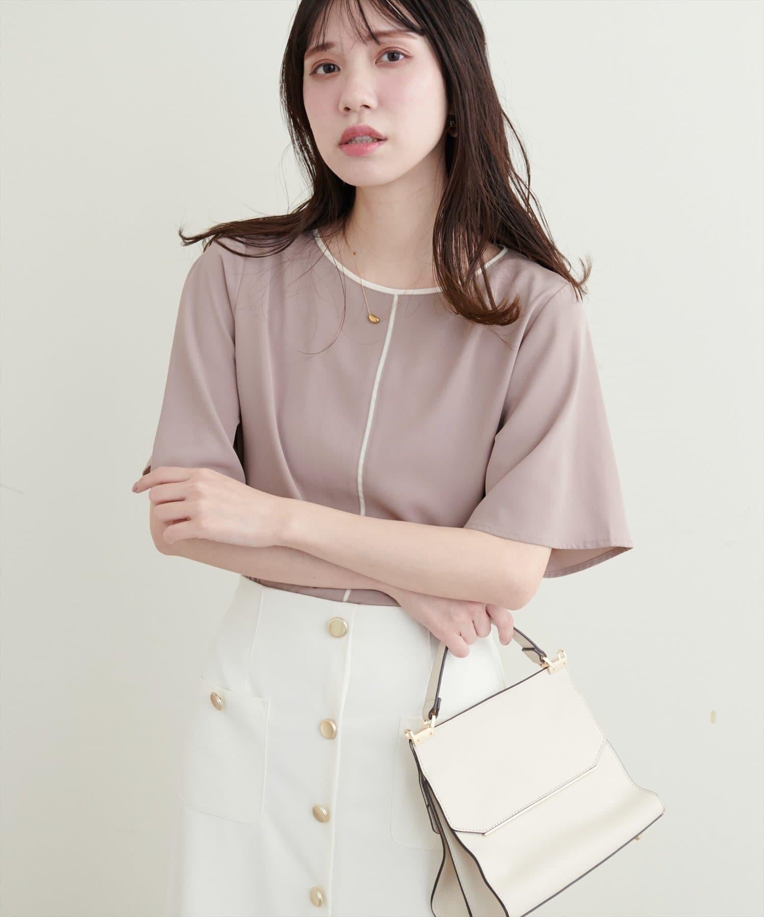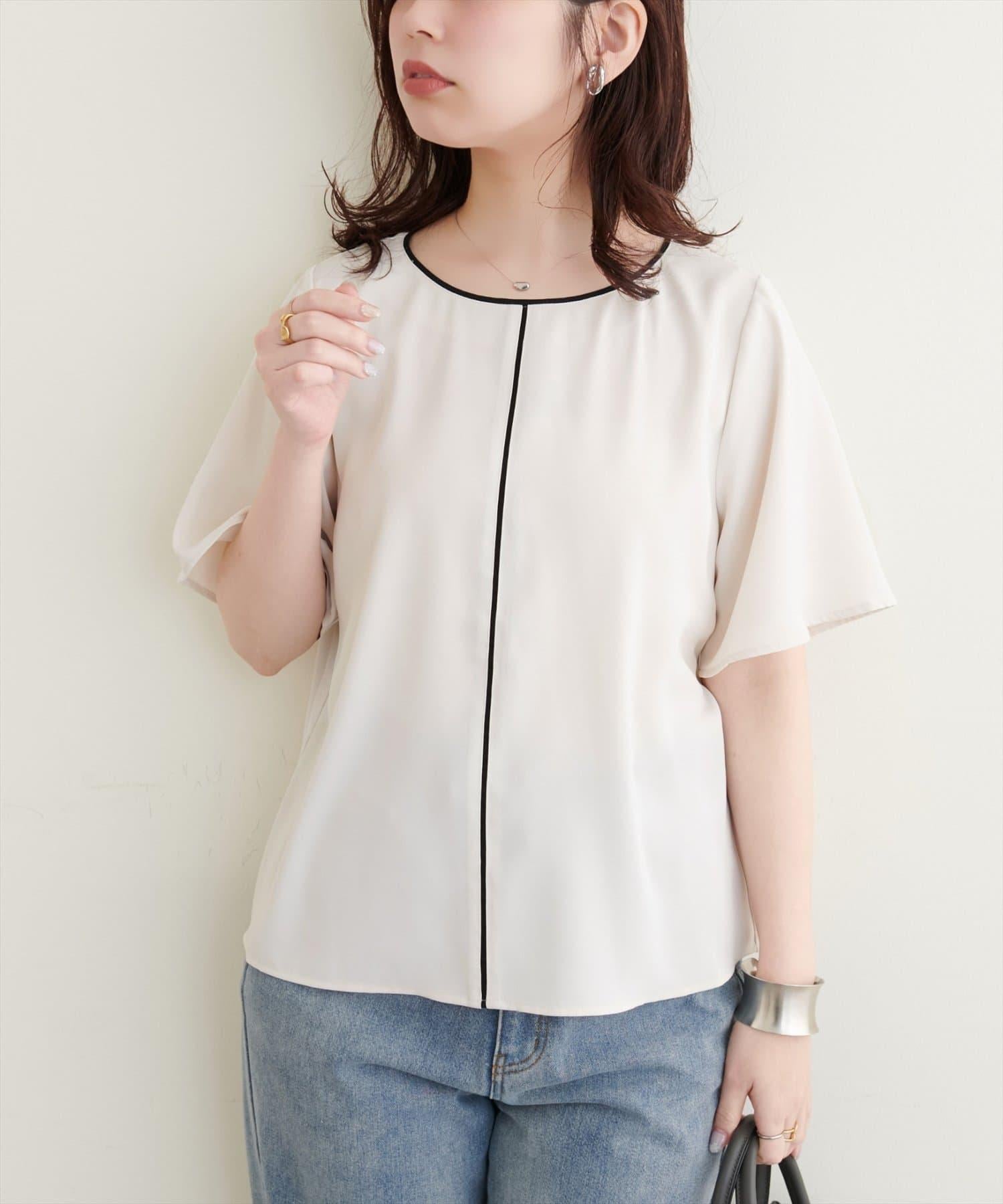 雙色領口和前襟的華麗上衣。