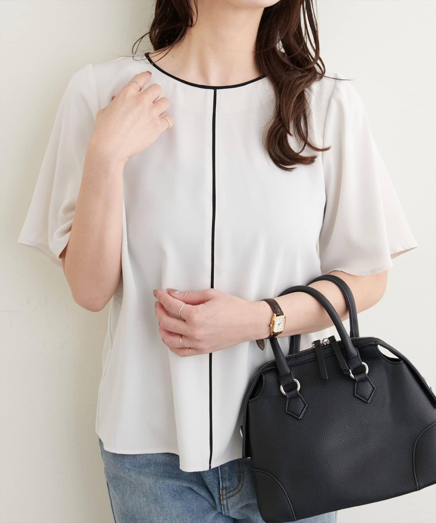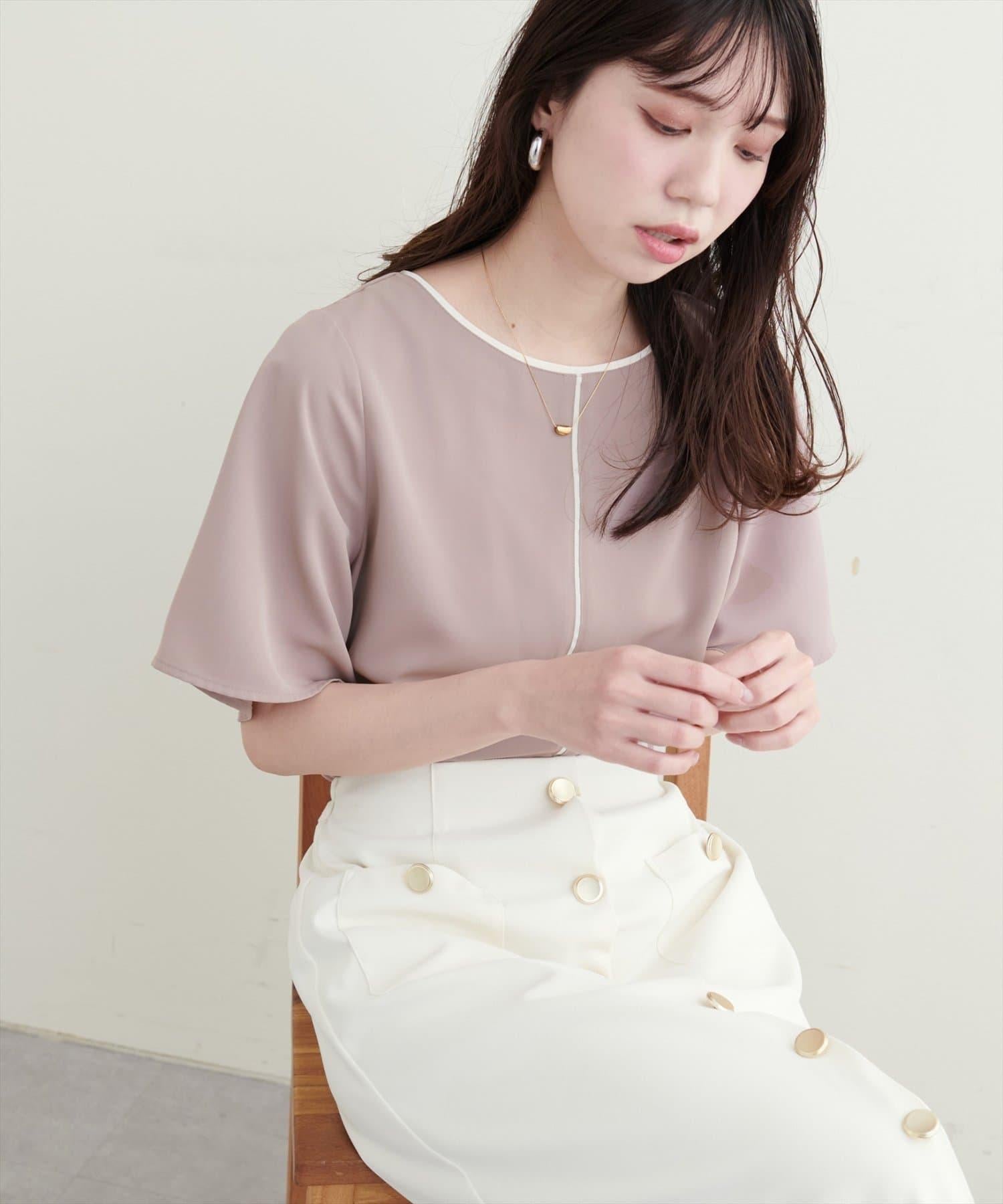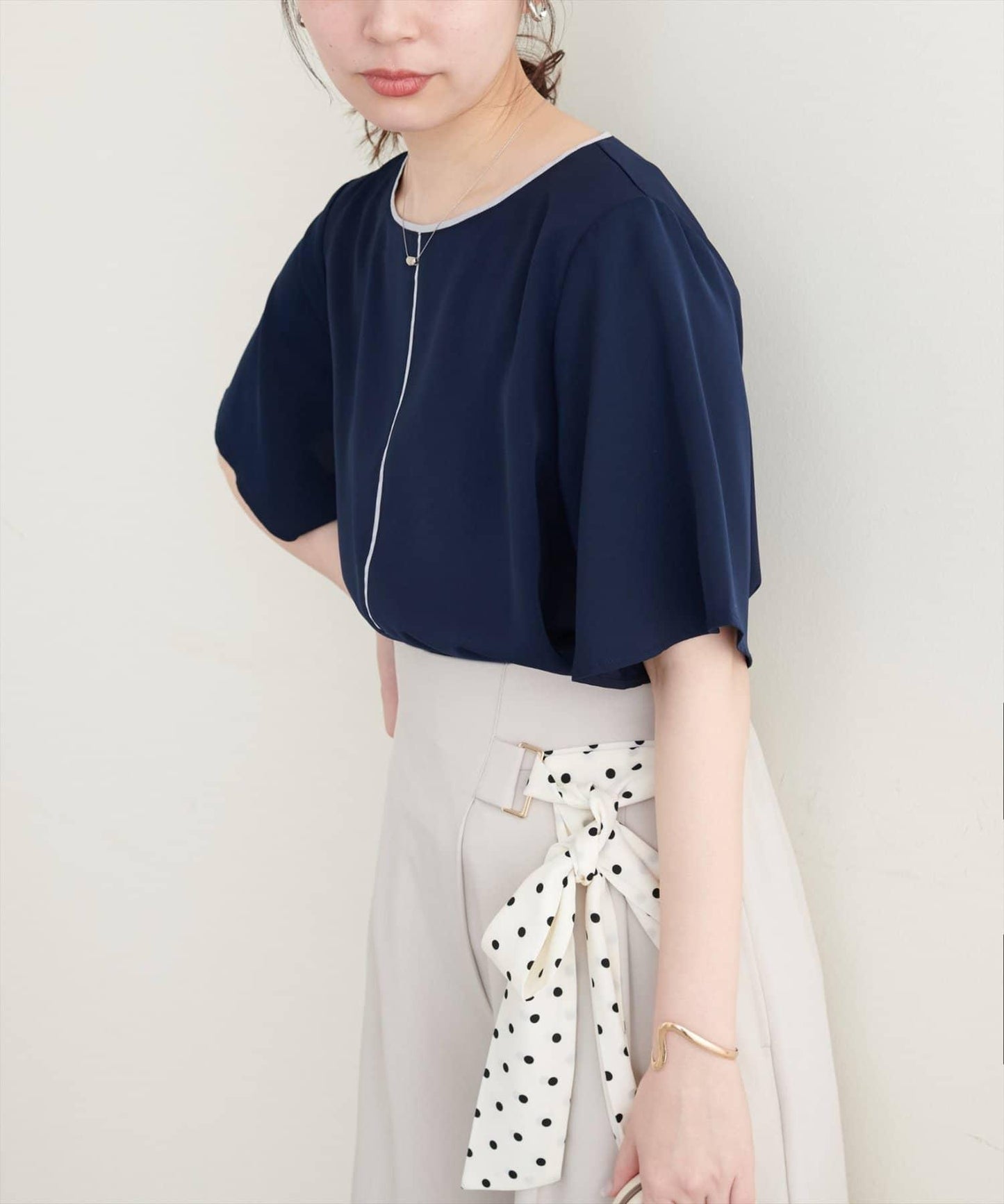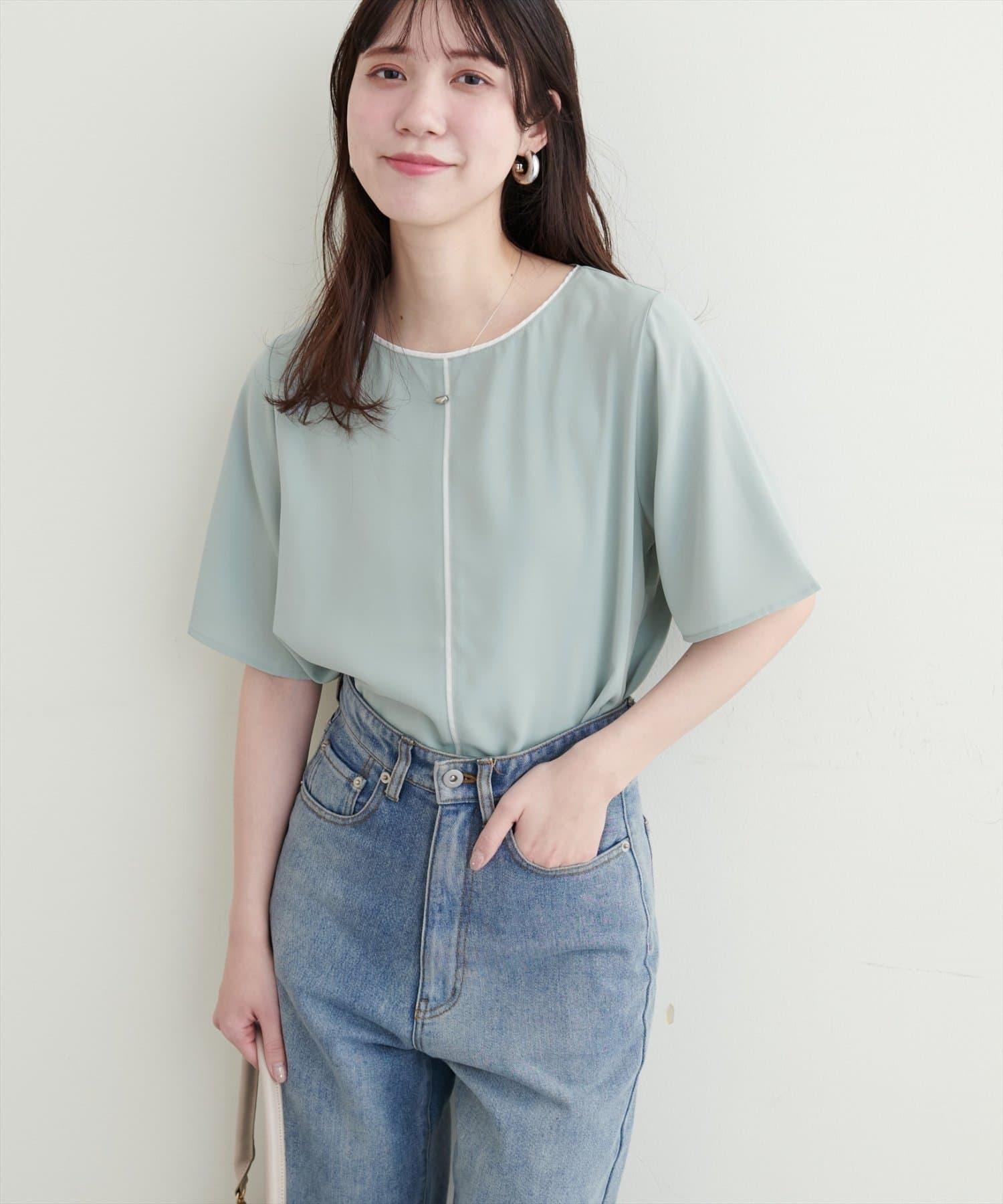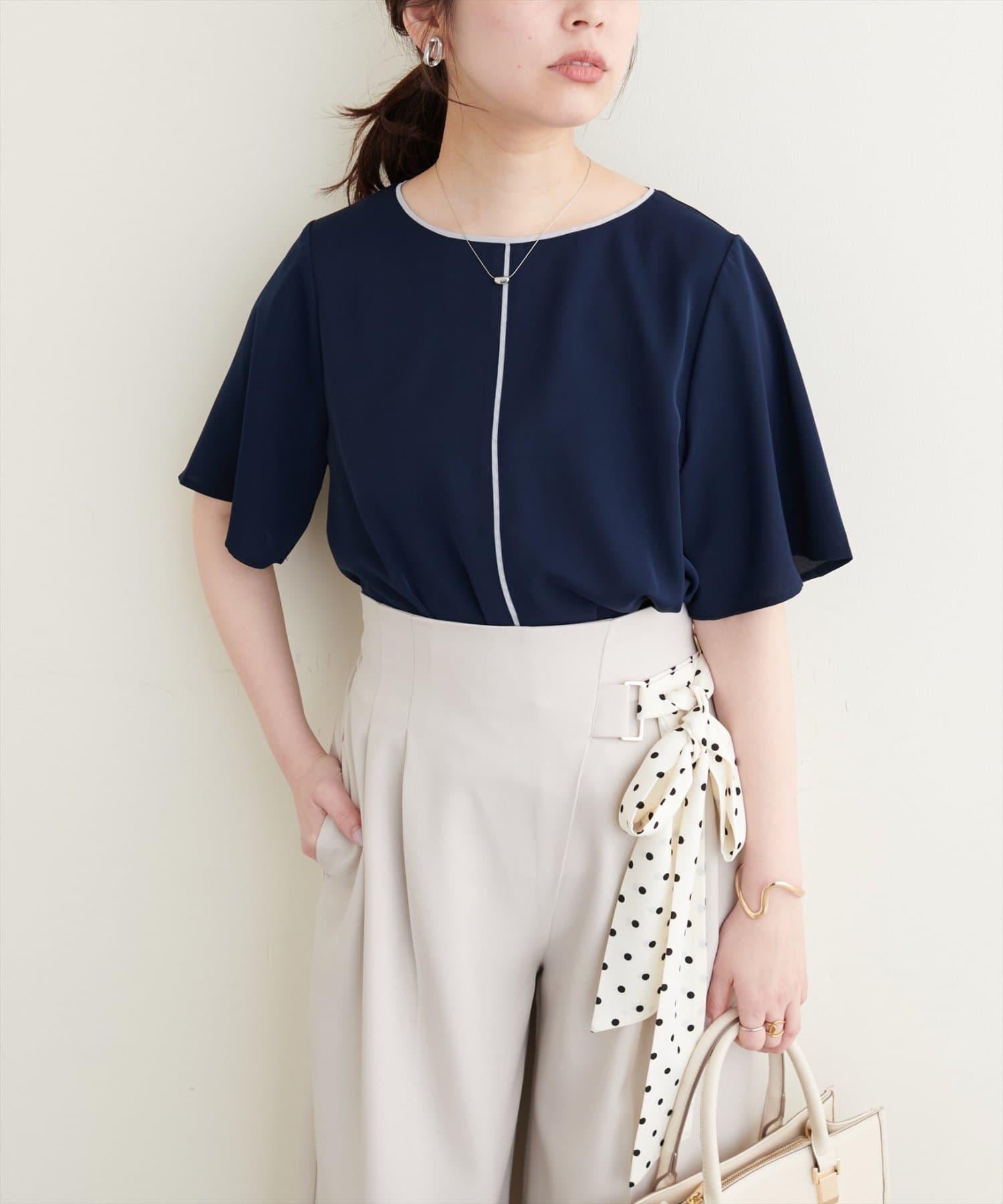 雙色領口和前襟的華麗上衣。