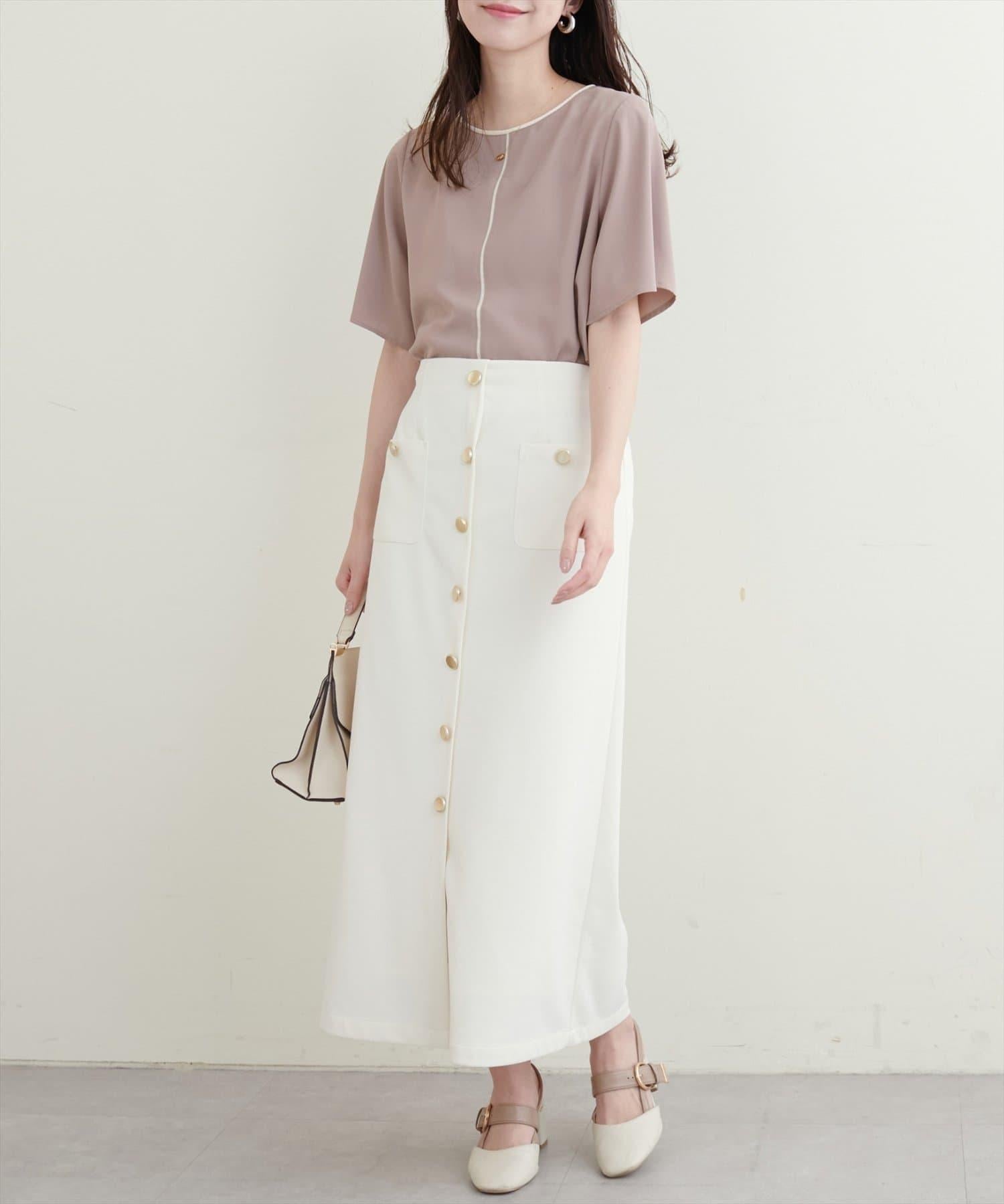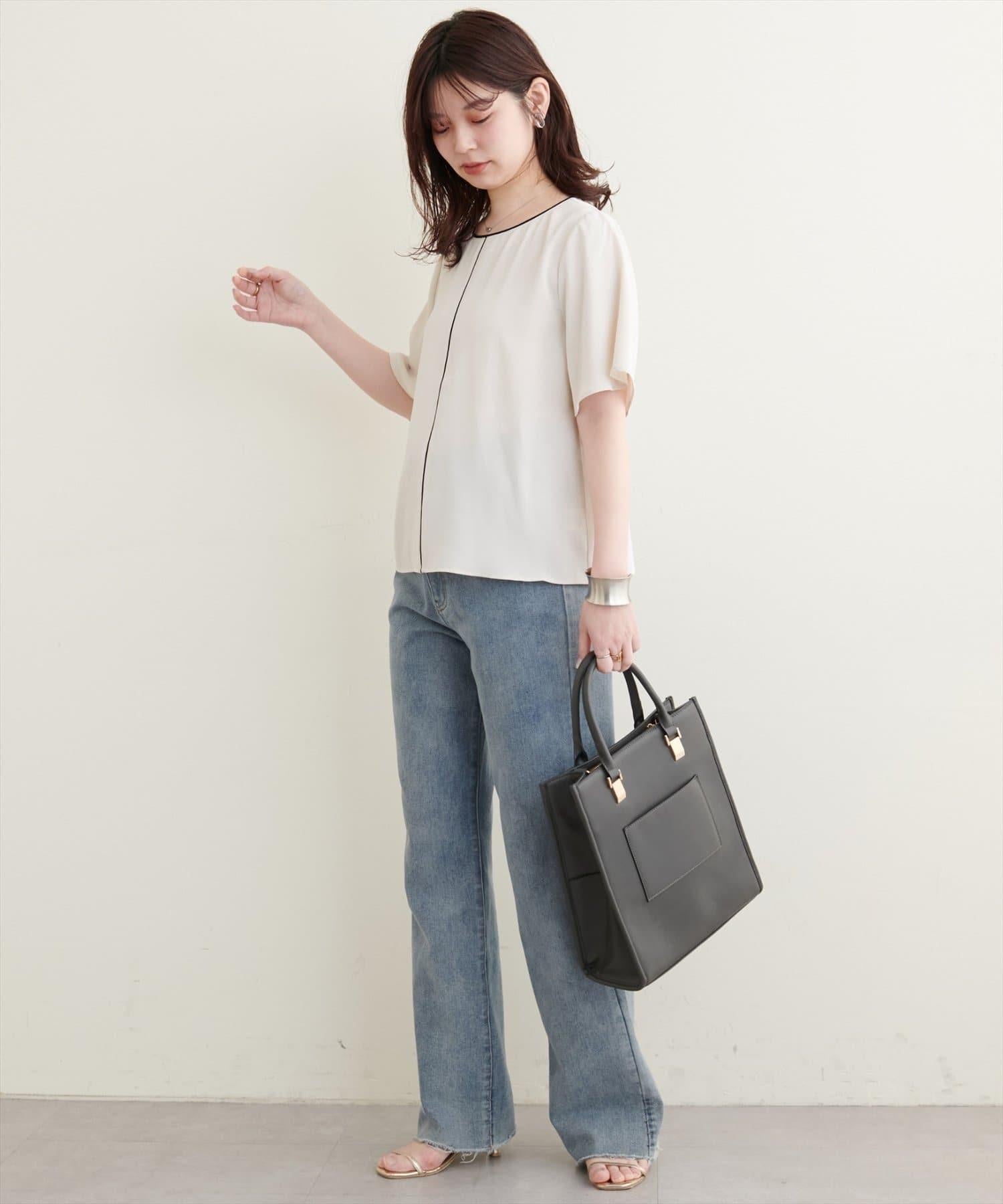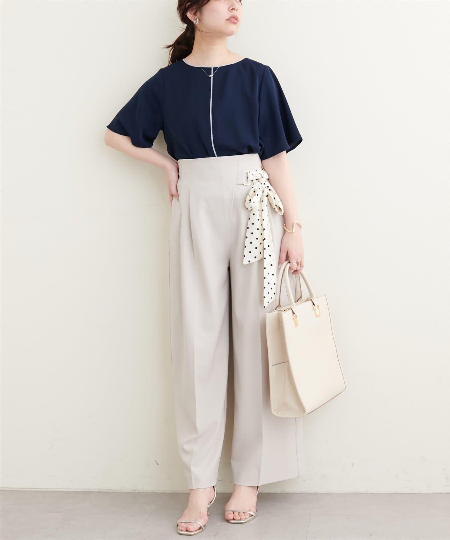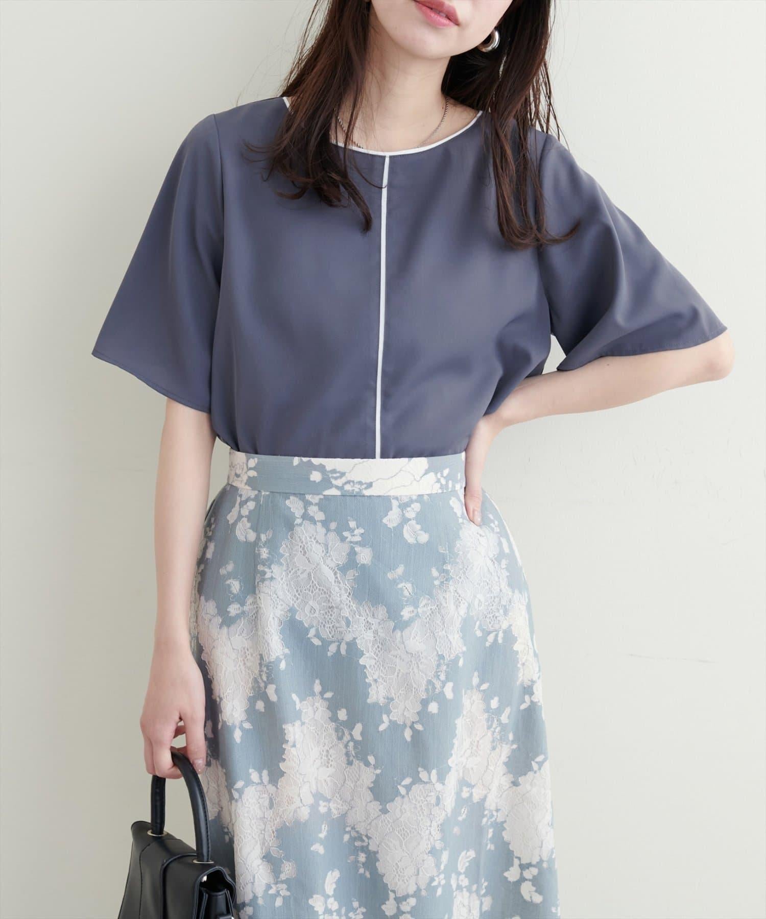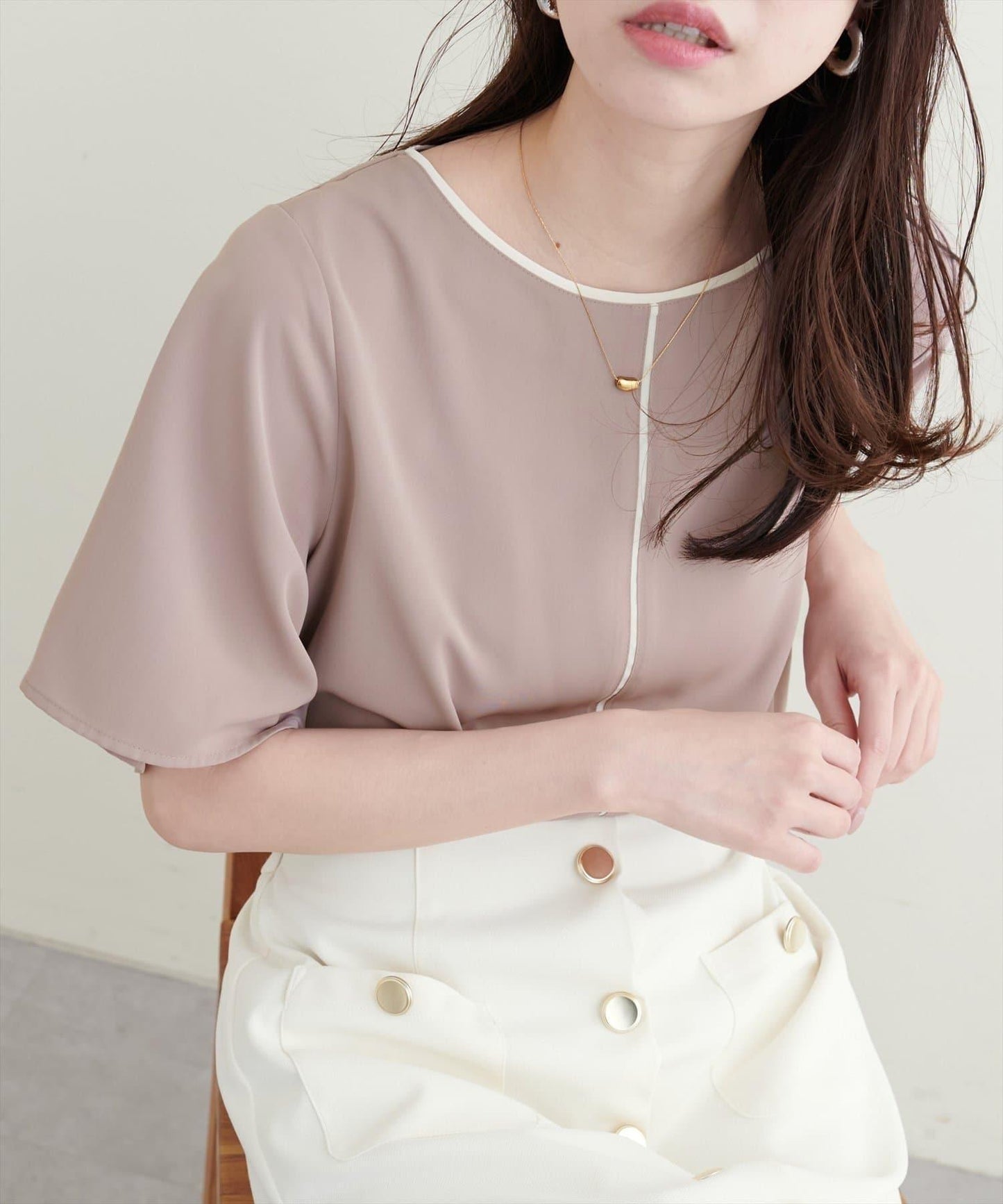 雙色領口和前襟的華麗上衣。