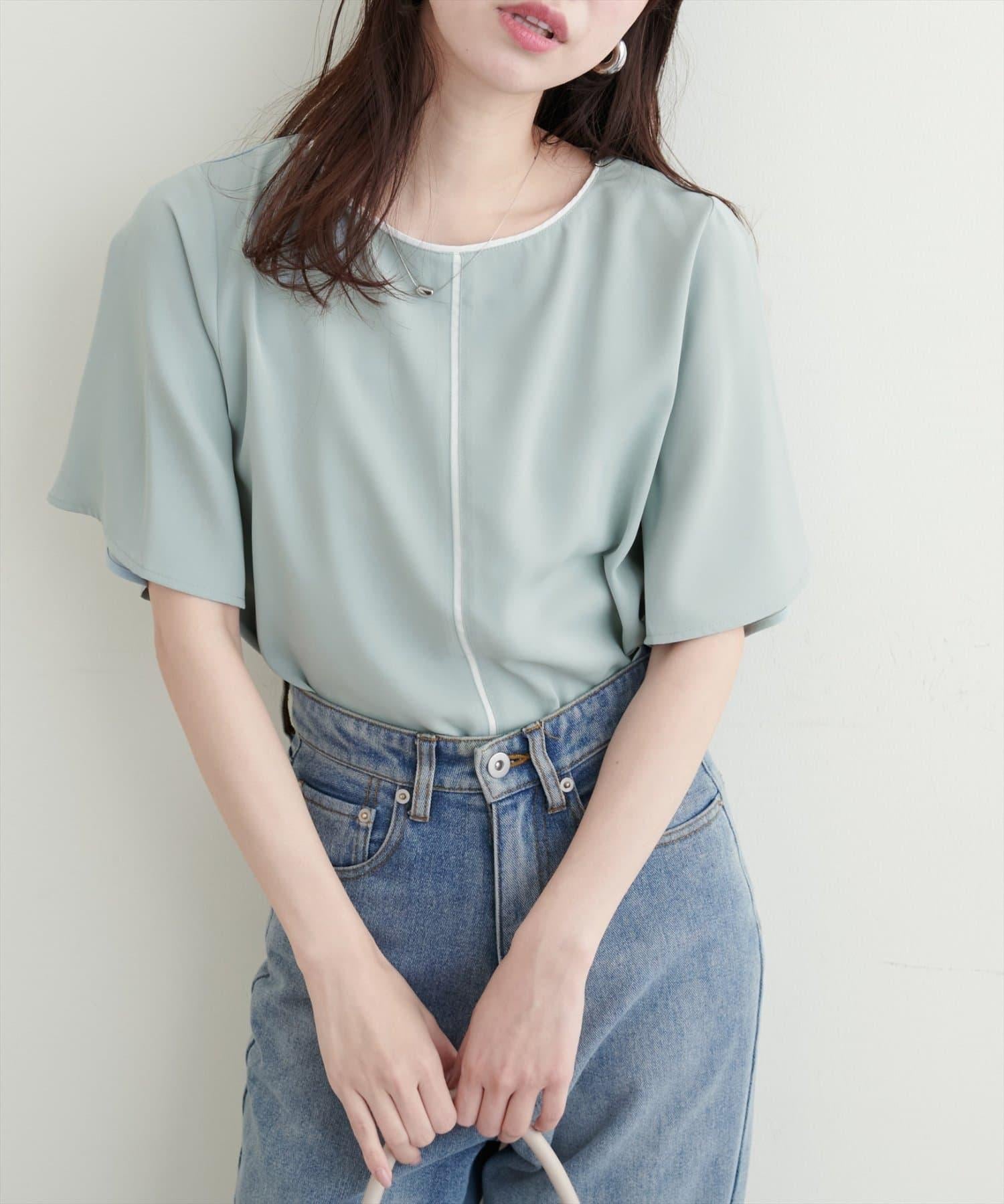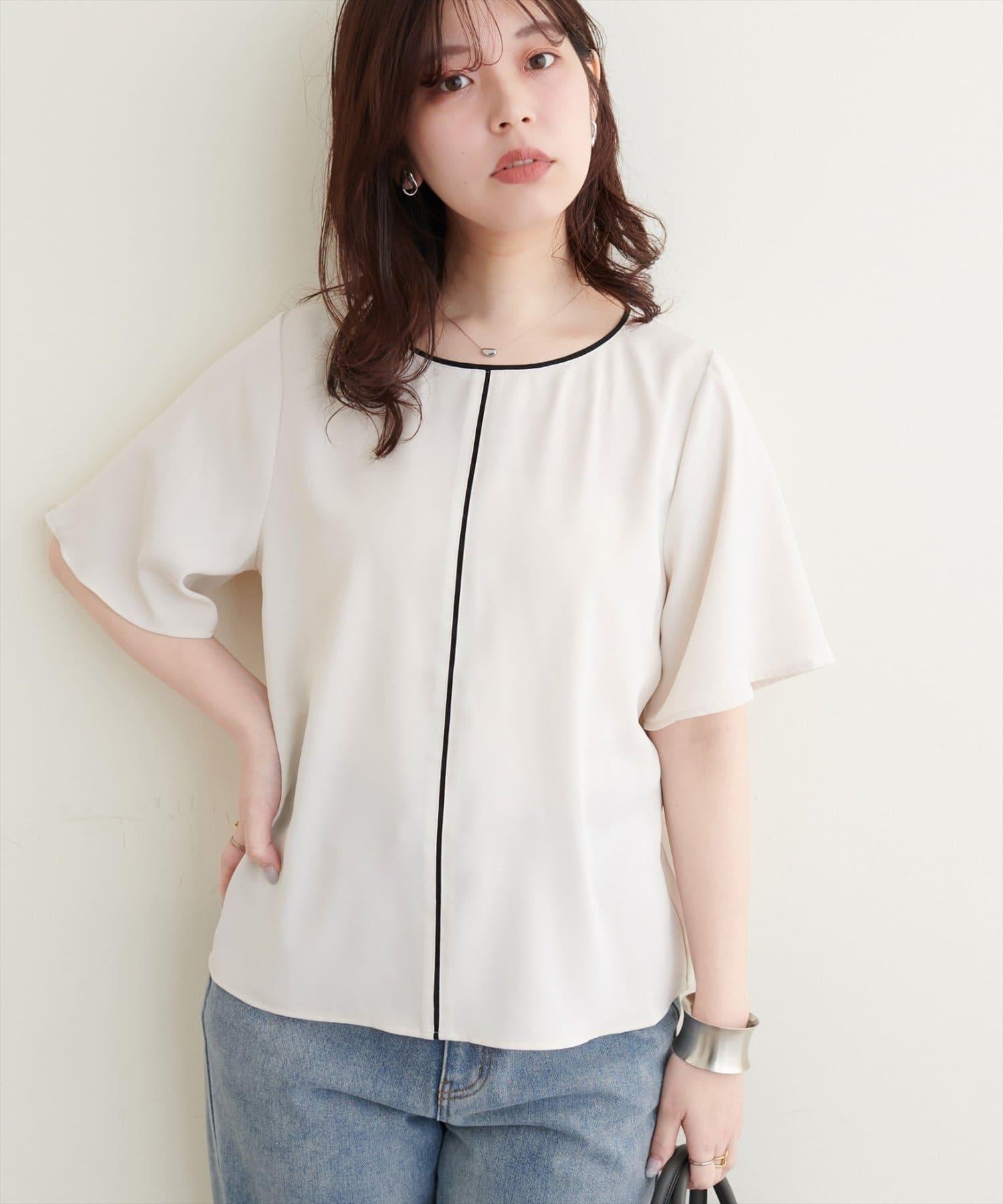 雙色荷葉邊袖襯衫