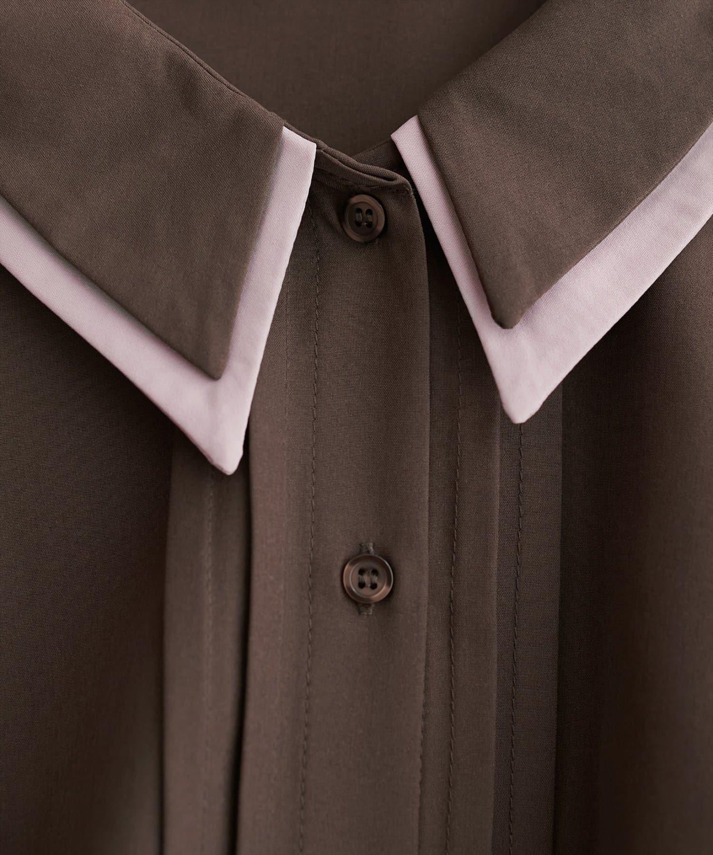 亮點在於醒目的兩片領設計。它營造出層次感和立體效果,使面部看起來更加華麗。
