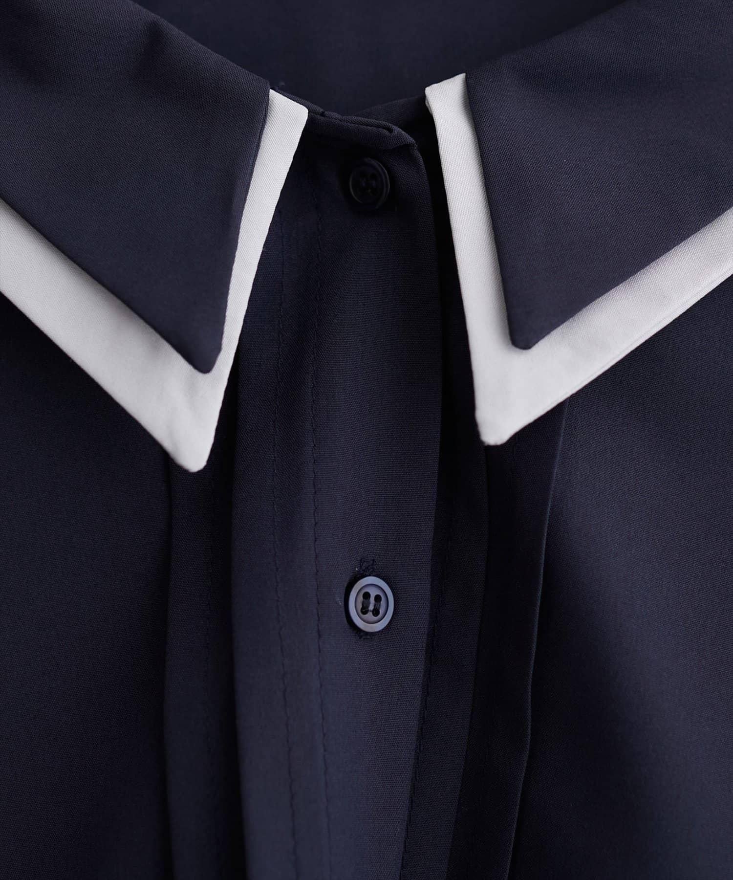 袖口的顏色也與衣領相同,形成了統一的設計。這款單品非常適合注重細節的成熟女性。