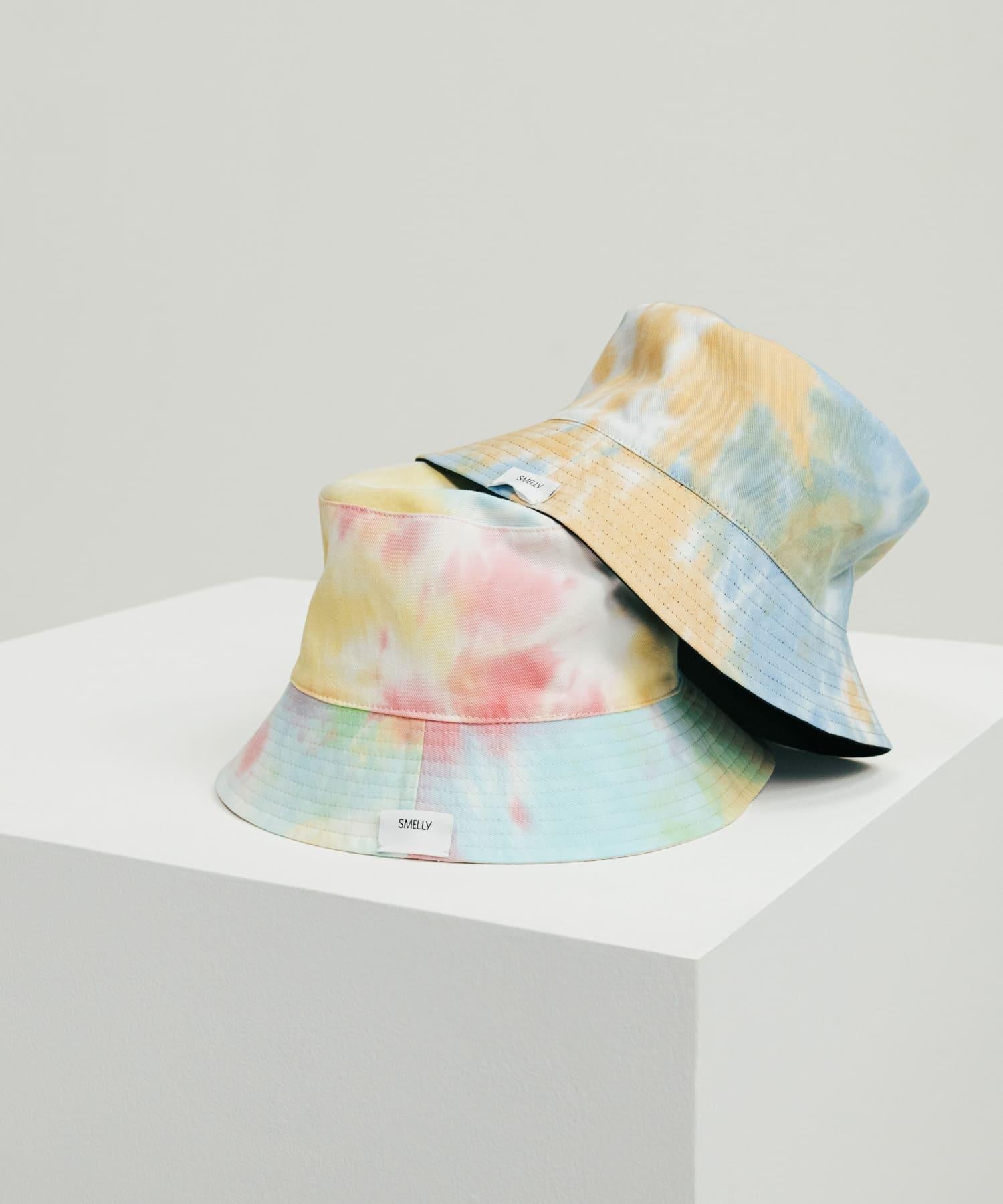 這款可雙面使用的水桶帽有兩種設計可供選擇:一種是扎染圖案,SMELLY般的細微色彩漸變十分搶眼;另一種是單色啞光純色。