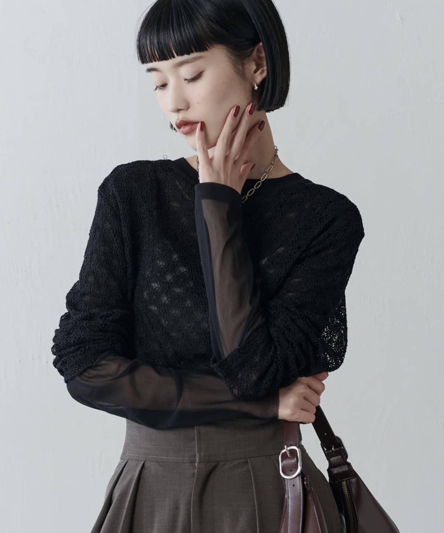 精緻蕾絲的透明感讓這款套頭衫充滿了女人味。