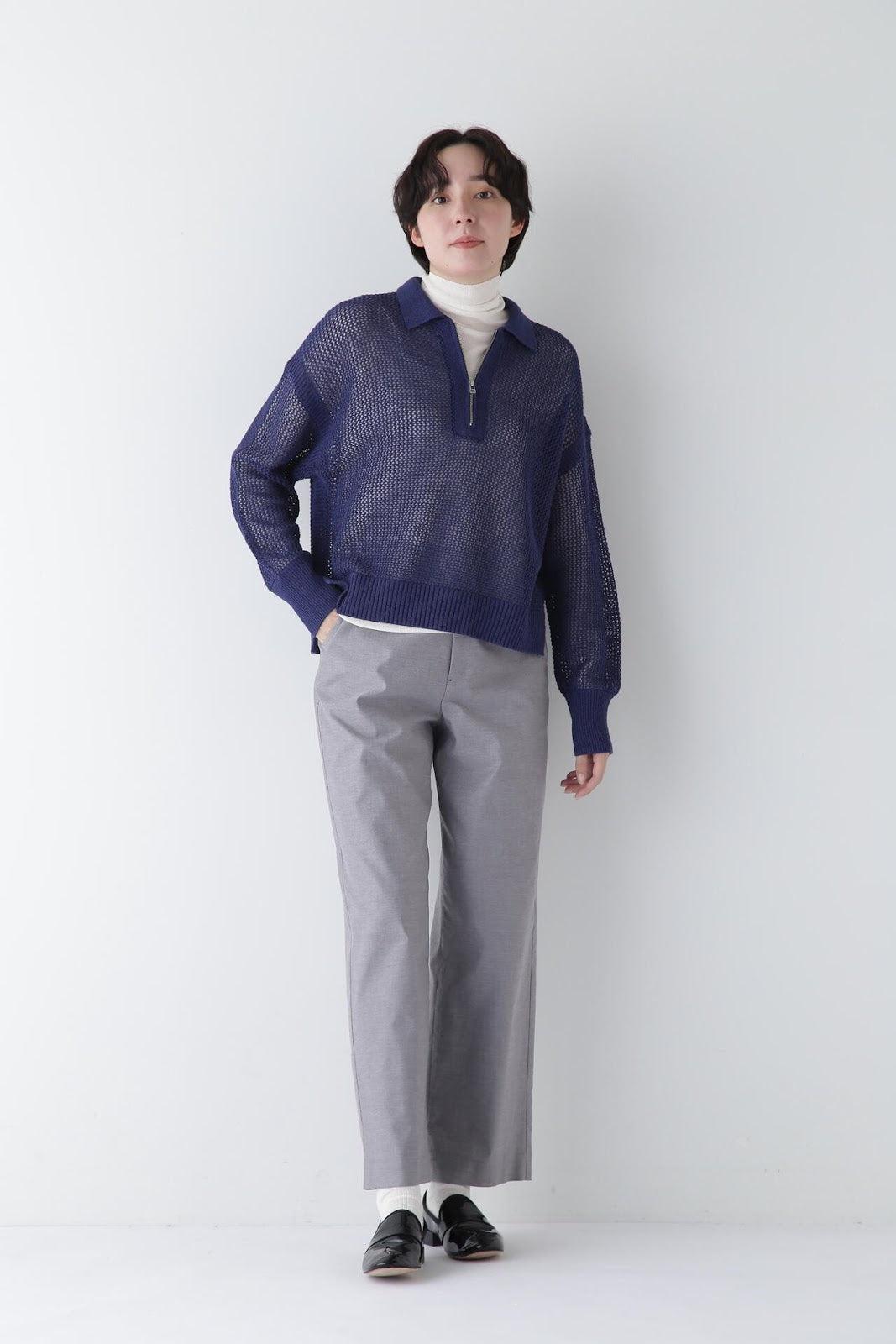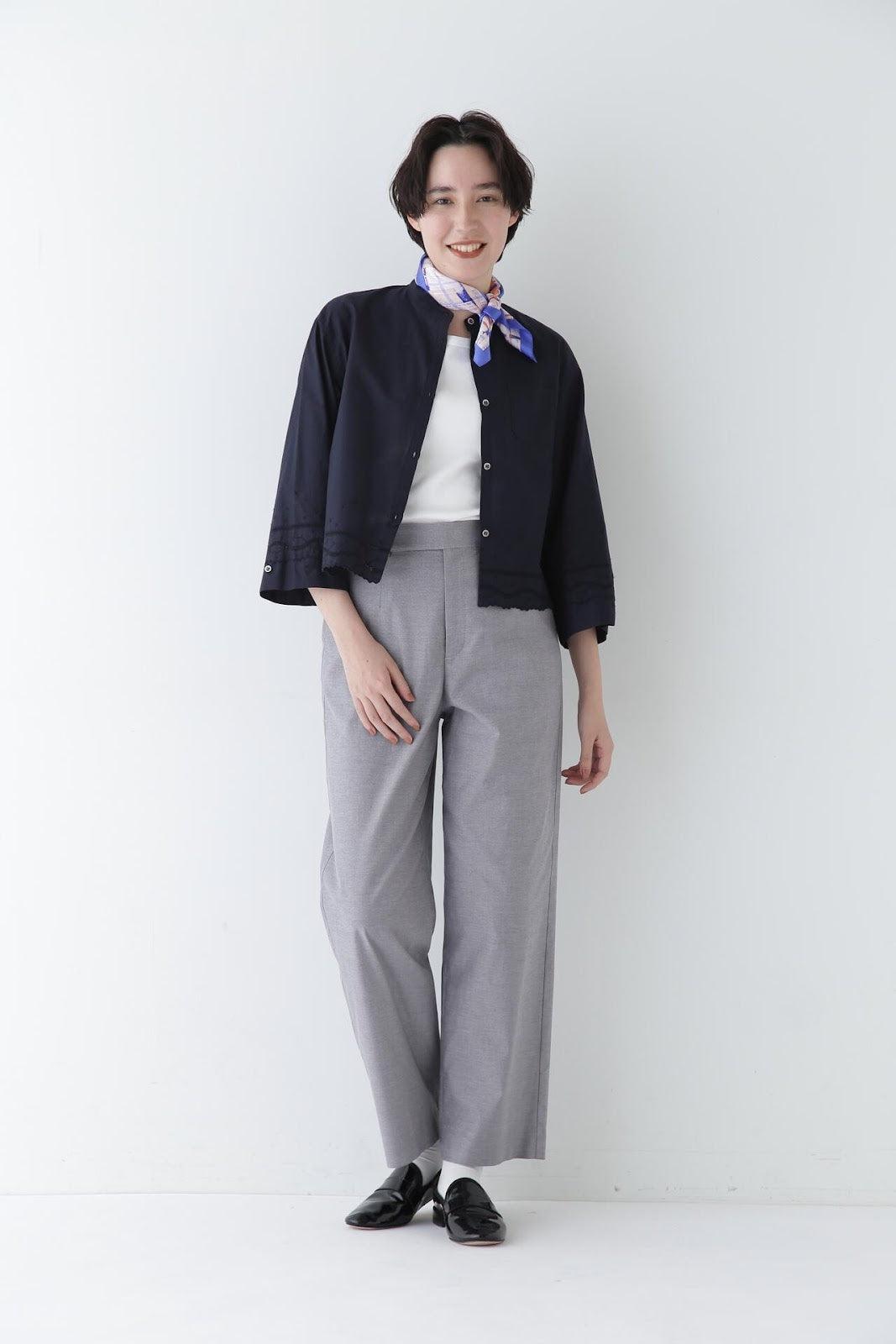 帥氣、人性化的女性經典直筒褲 [設計要點] 這款長褲採用寬鬆的直筒剪裁。廓爾喀風格的腰部細節是一大特色。後腰採用鬆緊設計,與面料結合穿著舒適無壓力。多臂彈力面料具有精細的花紋。紗線的顏色在經紗和緯紗中不斷變化,形成深邃的色調。該面料還具有良好的伸縮性,穿著舒適。推薦座標:這款成人直筒褲款式簡單,適合在任何場合穿著。面料顏色的深淺變化使其成為春季的百搭單品,無論美觀還是休閒都能輕鬆駕馭。
