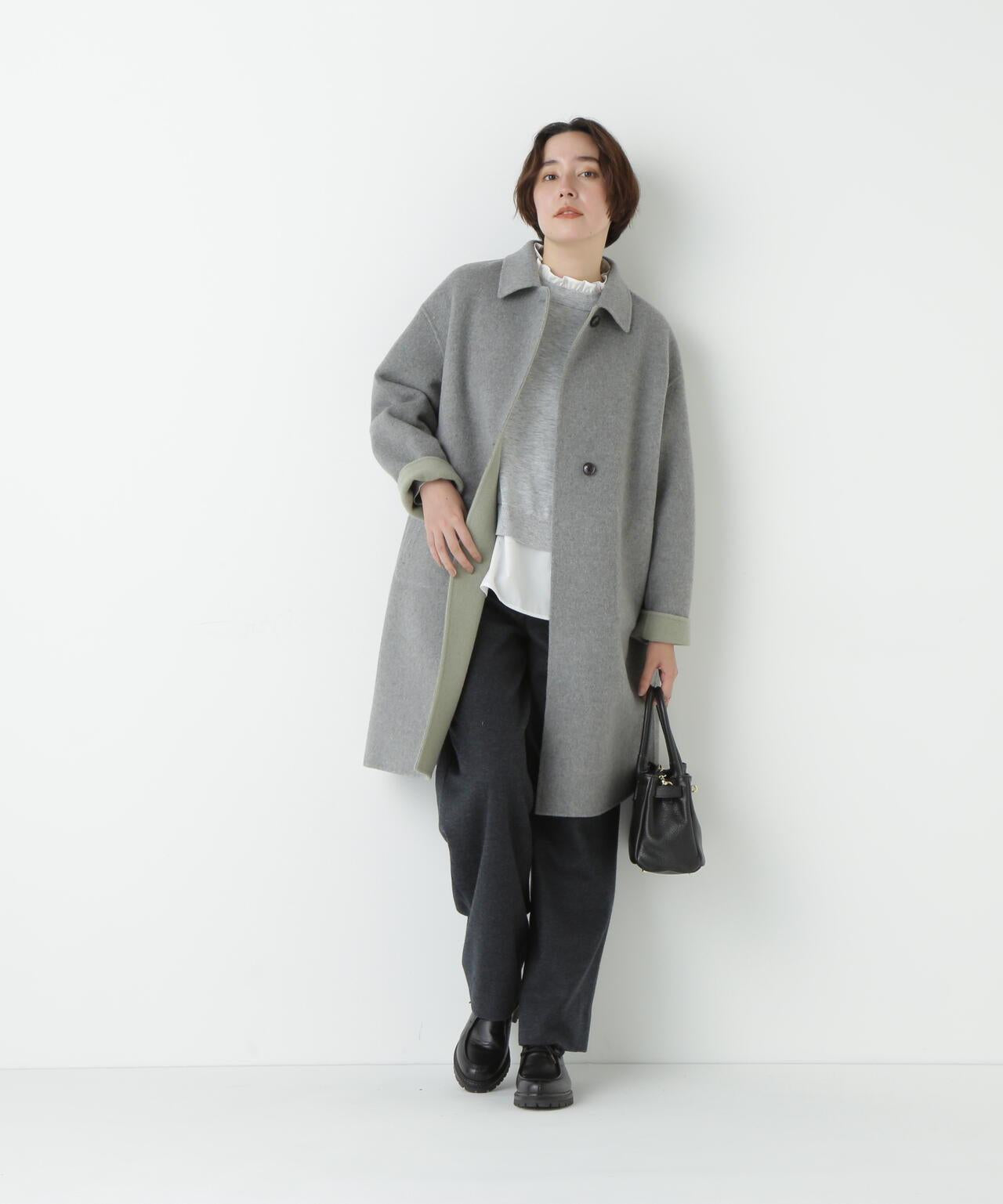 標準優質面料量身定製的河衣 [設計特點] 這是一款人類女性標準優質河衣。本季採用不鏽鋼領型,前端打孔較深。由於採用了完全可翻轉的縫製方式和可翻轉的規格,因此大衣的任何一面都可以朝外穿著。面料採用雙面凸起的梅爾頓面料,配以優雅的毛皮。今年,它採用平紋 x 平紋雙面設計,有兩種顏色可供選擇:TOP 灰色 x 淺卡其色和 TOP 棕色 x 米色。反面縫製的剪裁,奢華感十足,只需快速穿上,就能彰顯高貴氣質。無論在線上還是線下,它都非常活躍。雙面設計可讓您根據心情享受不同的感覺。